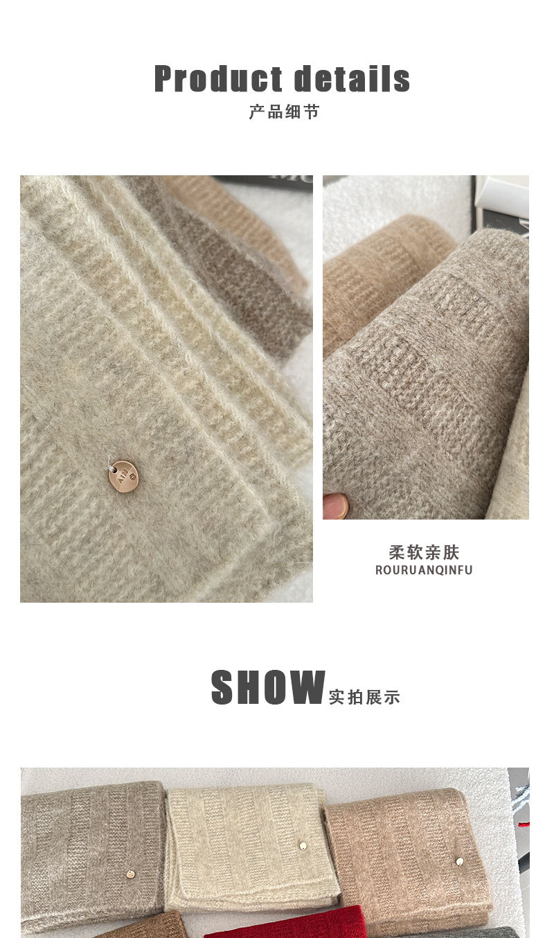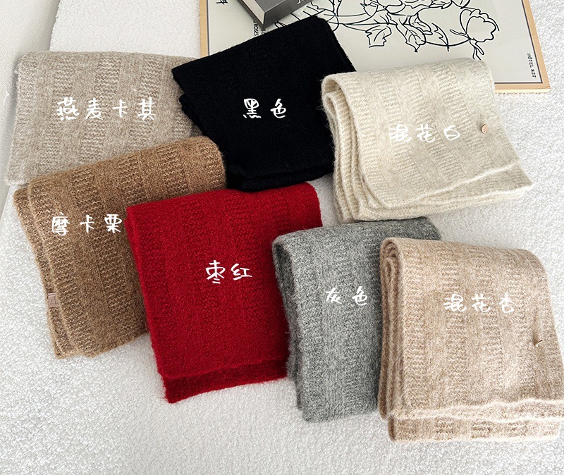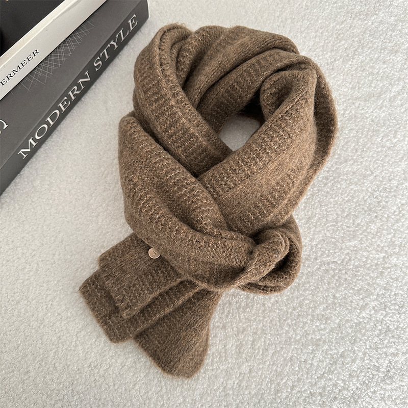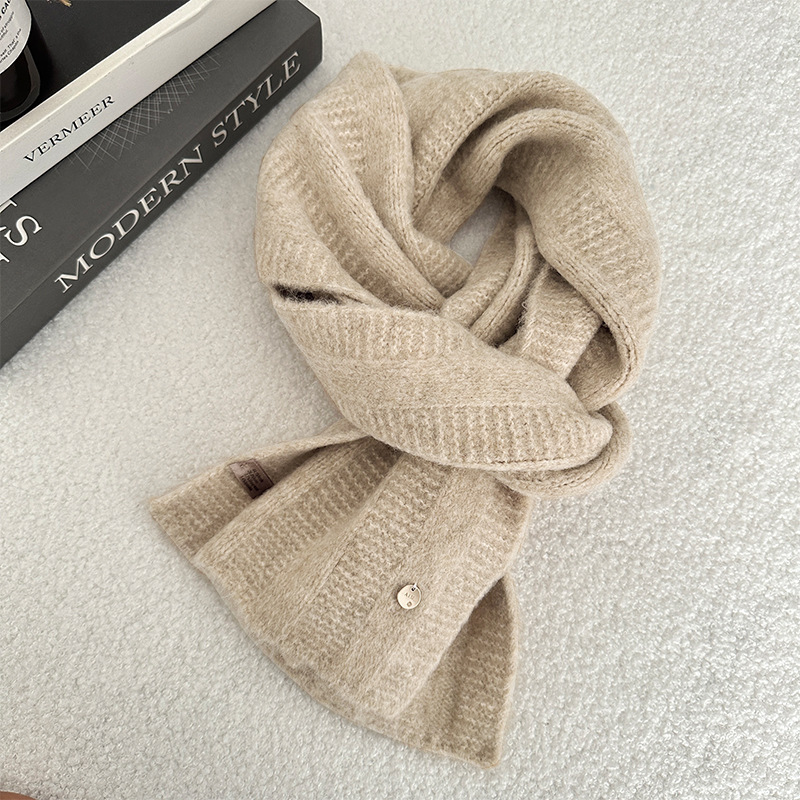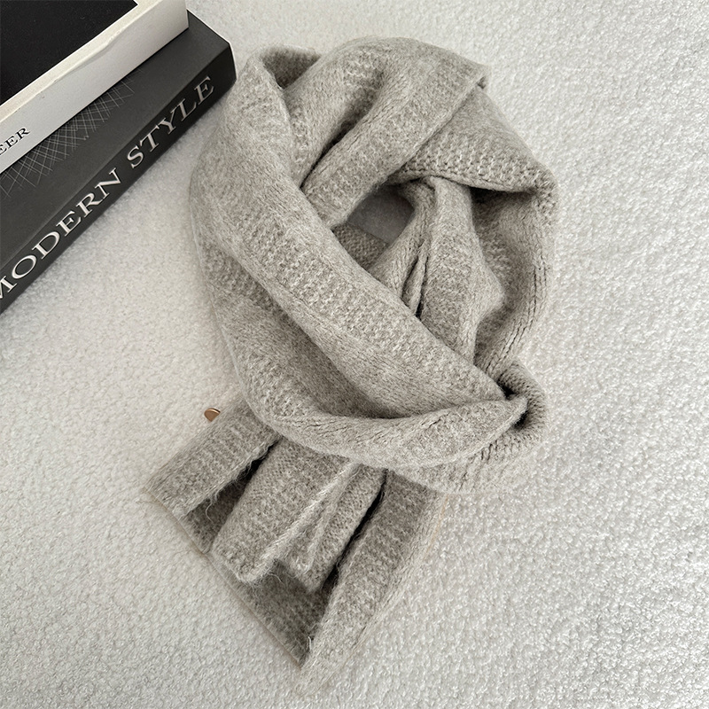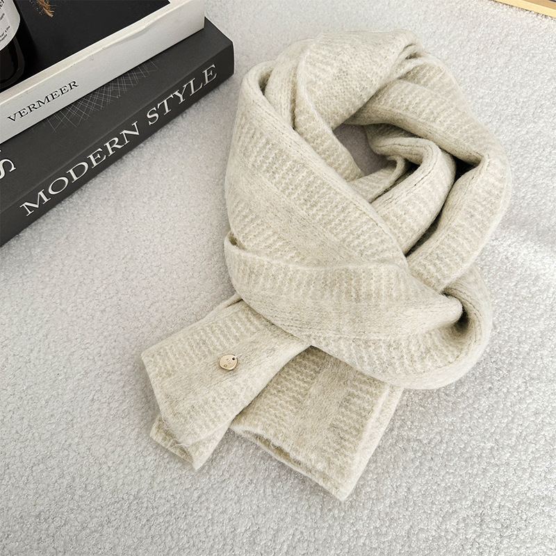 한국 스타일 겨울 2024 새로운 니트 스카프 단색 일본 스타일 두꺼운 캐주얼 Ins 스타일 따뜻한 감기 보호 여학생을위한스토어 가기
