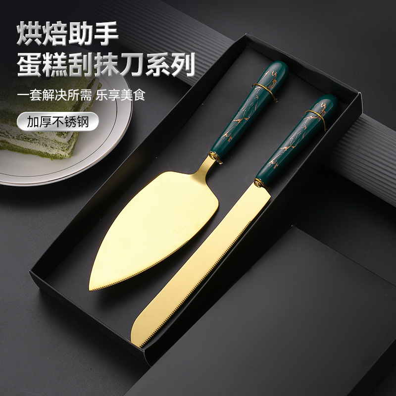 아마존 세라믹 핸들 케이크 나이프 하이 엔드 호텔 가구 빛 럭셔리 대리석 스테인레스 스틸 피자 칼 삽 선물