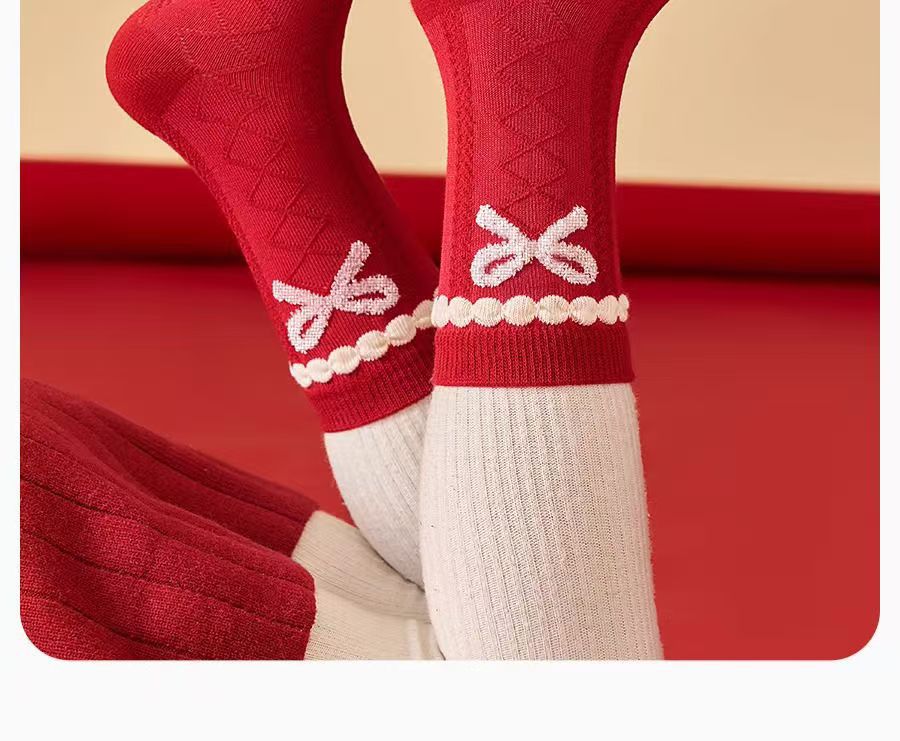 봄 신년 여자아이 면양말 어린이 양말 빨간색 행운의 설날 양말 축복 양말 아동 양말 아기 양말