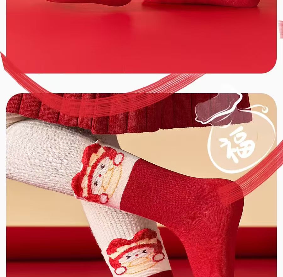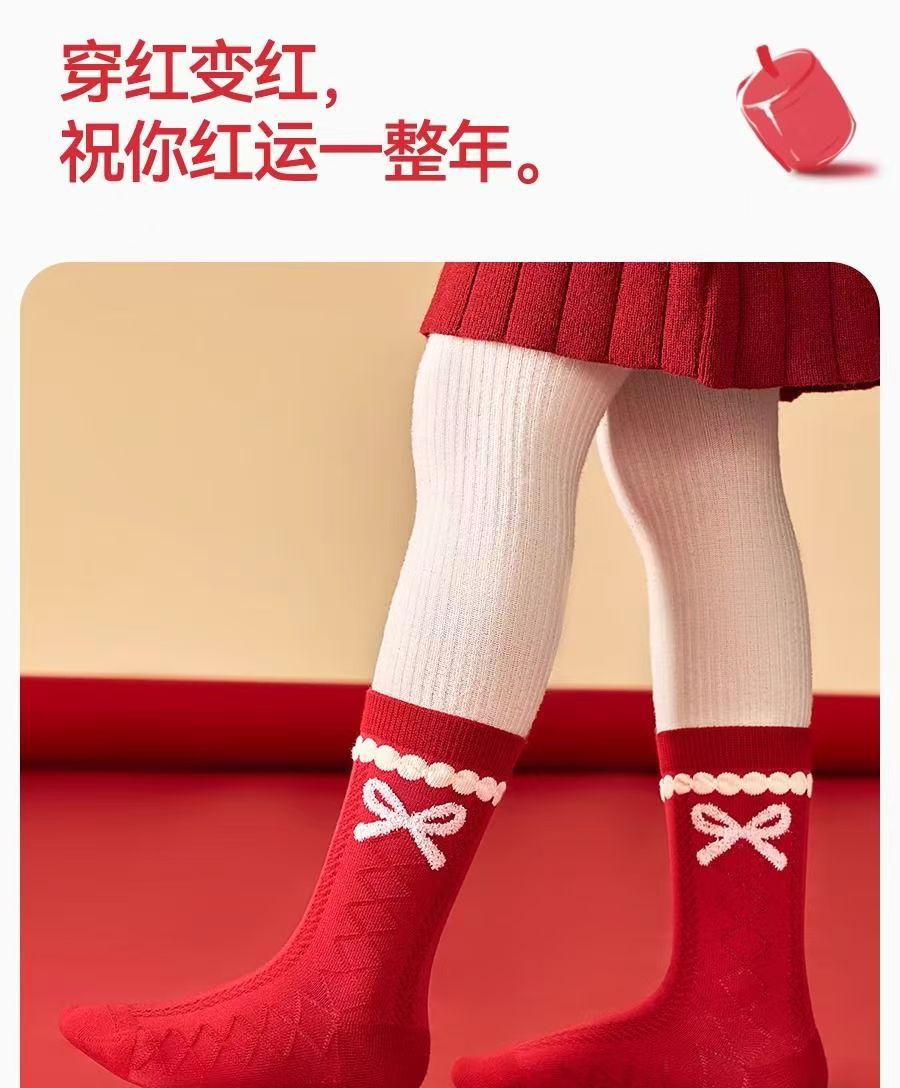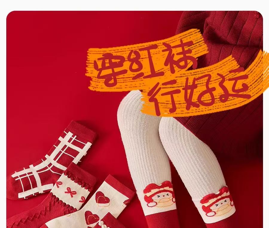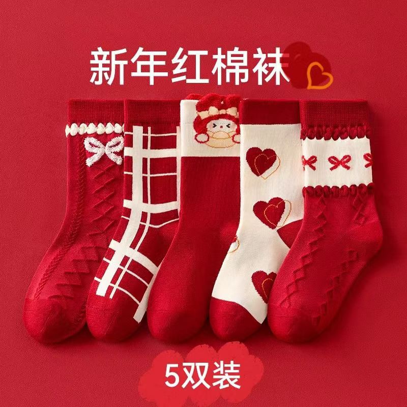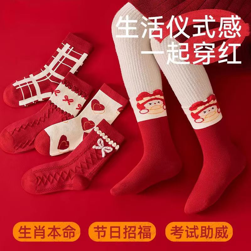 봄 신년 여자아이 면양말 어린이 양말 빨간색 행운의 설날 양말 축복 양말 아동 양말 아기 양말스토어 가기