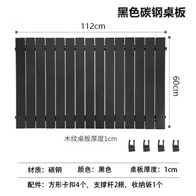 • 112*60cm 나뭇결 아연 철 합금 테이블 U자형 버클(수납 가방 포함) + 구멍이 없는 두꺼운 112CM 수평 막대 2개