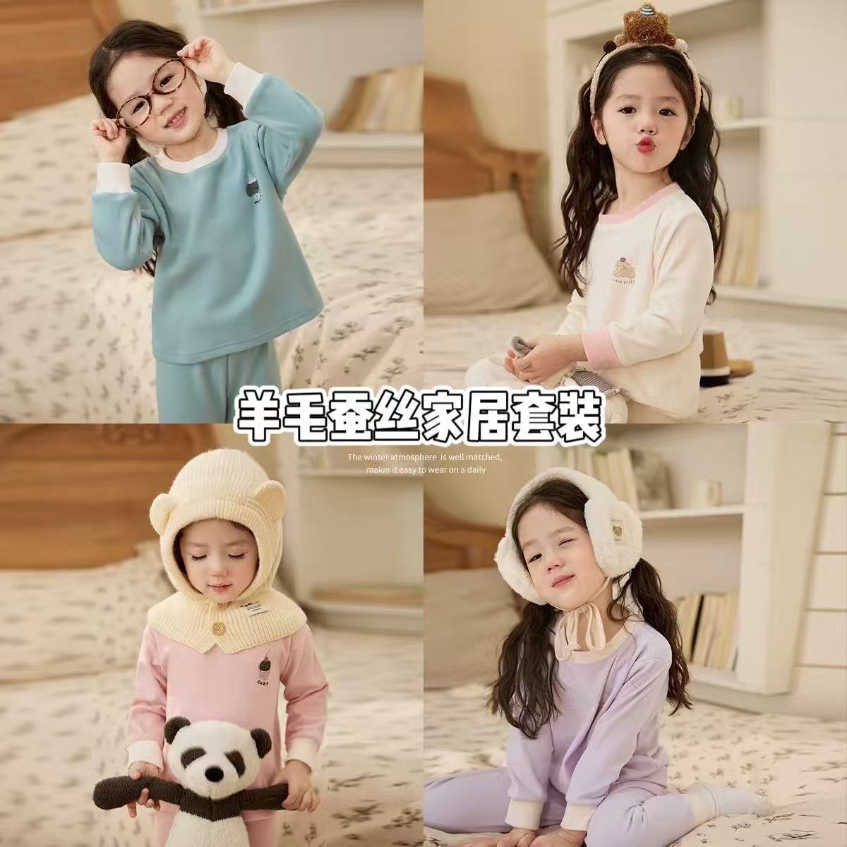 어린이 울 실크 홈 의류 가을 겨울 아기 잠옷 어린이 가을 바지 소녀 열 속옷 세트스토어 가기