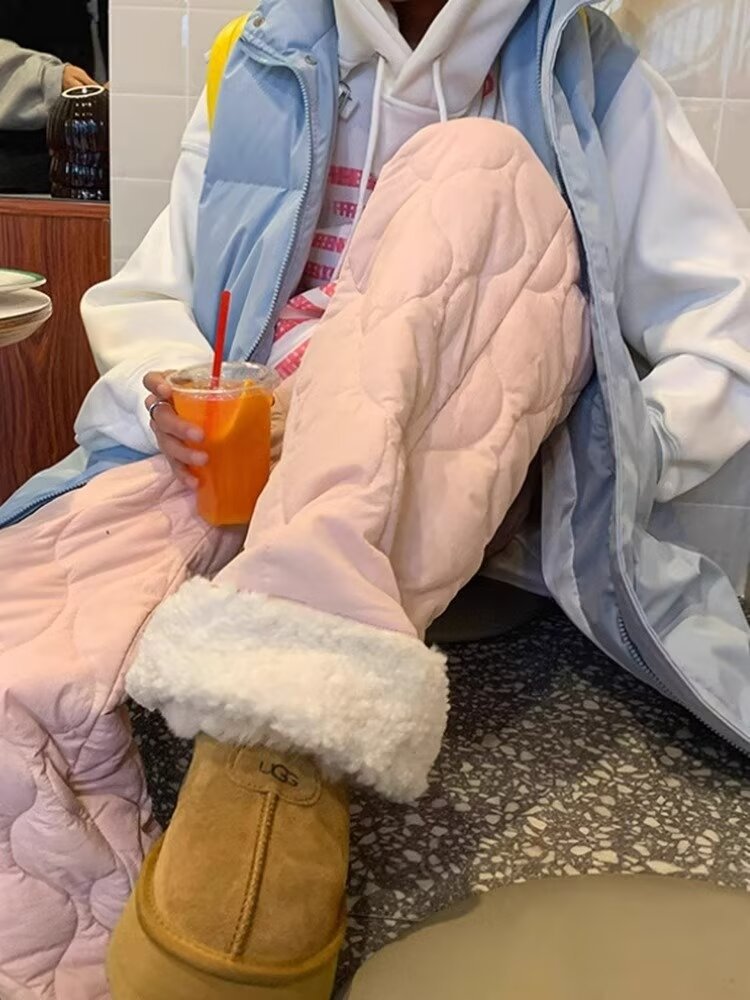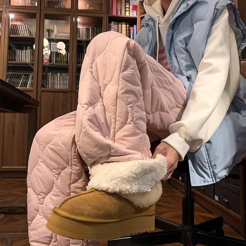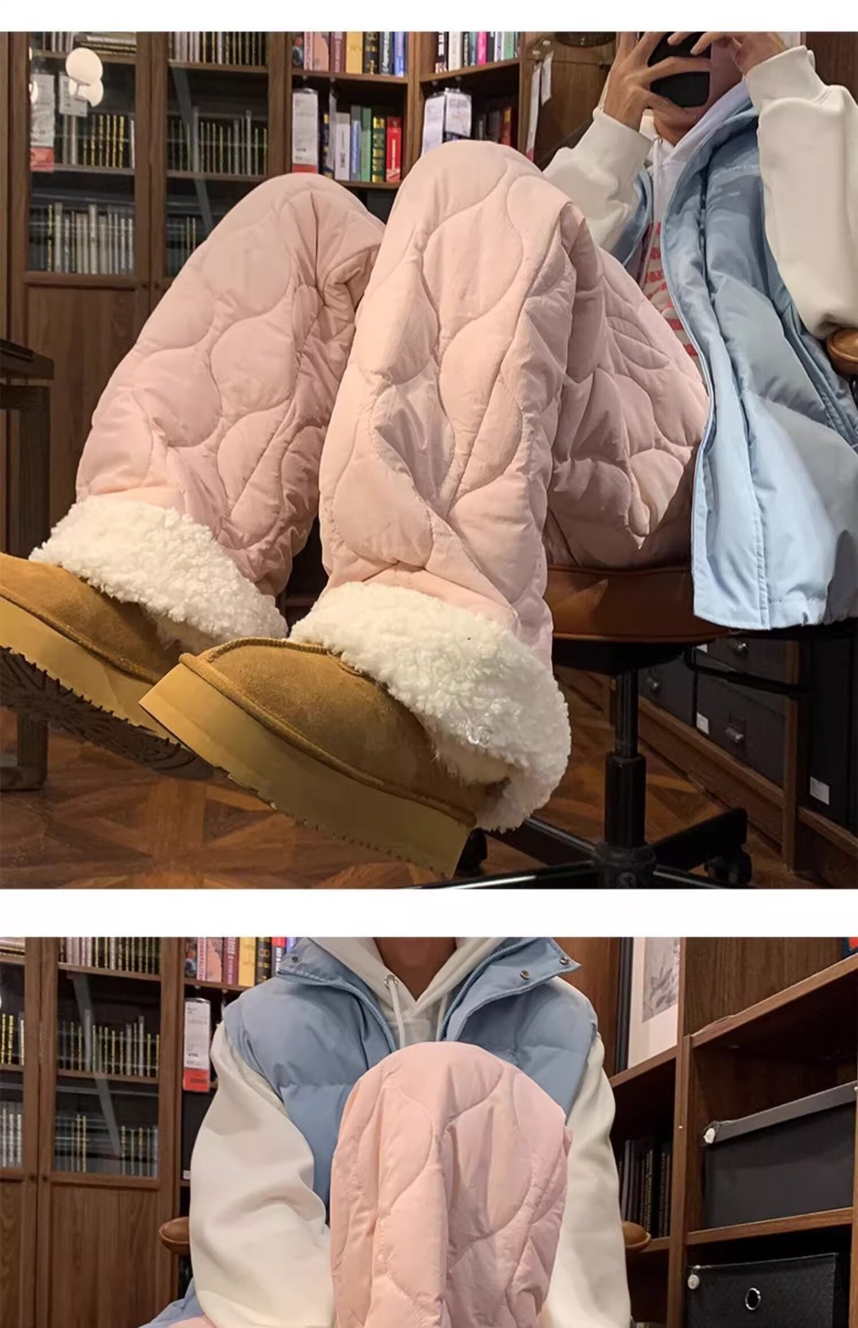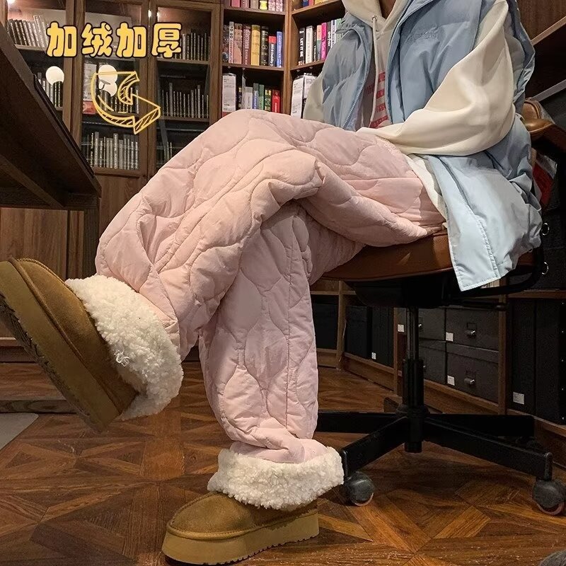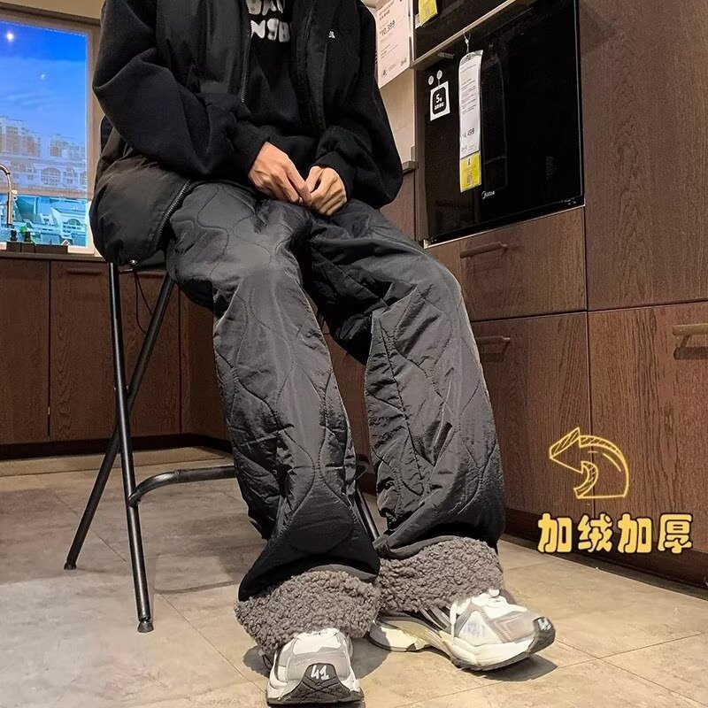 차가운 바지를 기모 남성과 여성을위한 냉장 캐주얼 양고기 따뜻한 바지 겨울 유행 느슨한 양고기 양털 격자 직선 바지스토어 가기