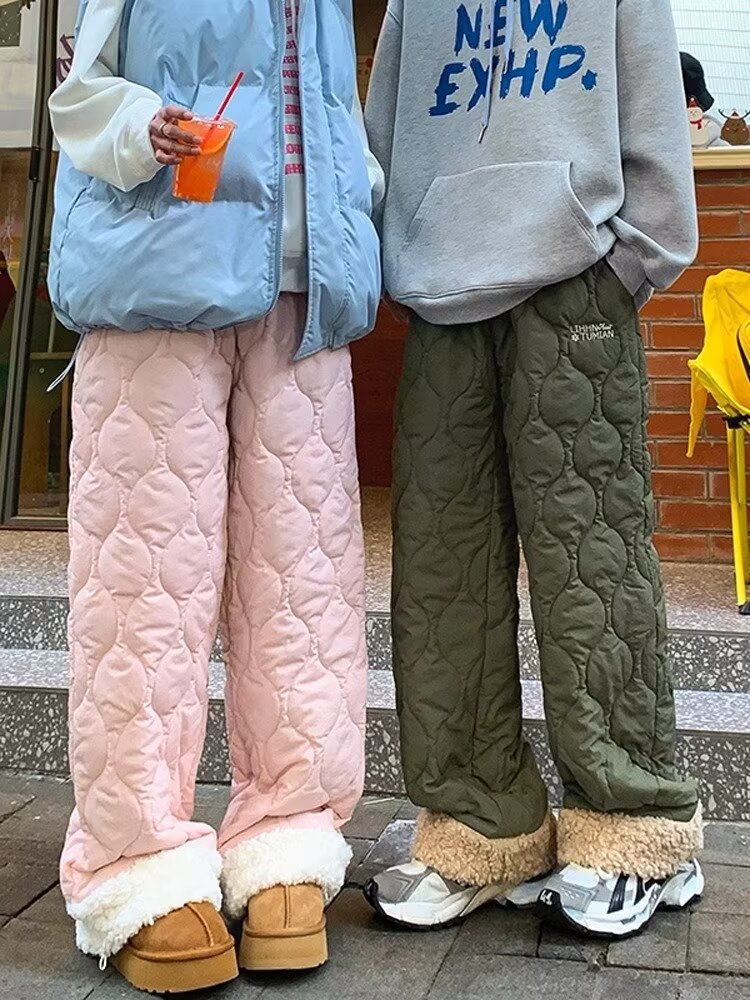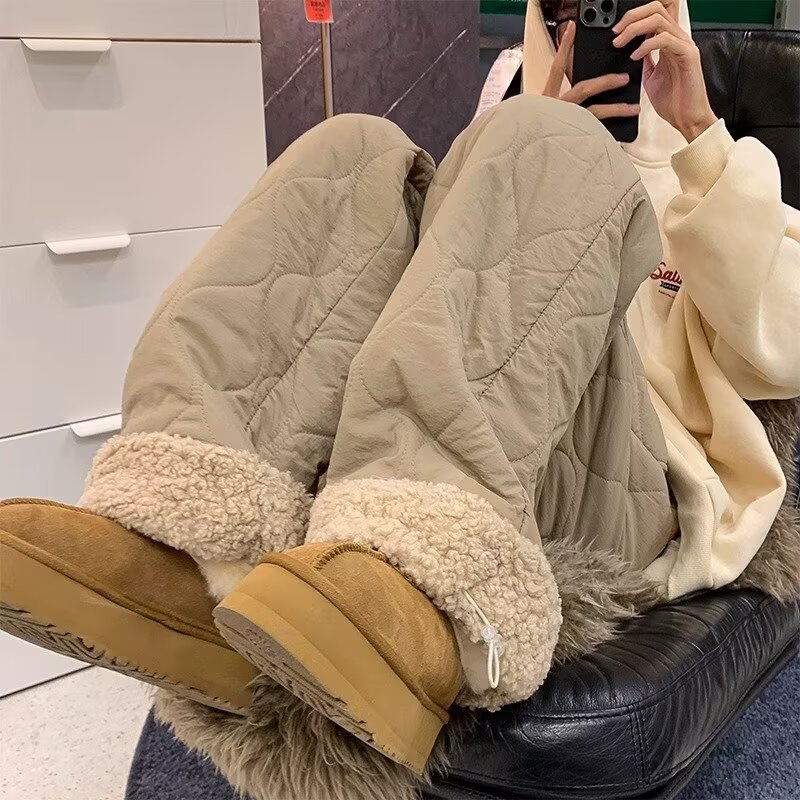 차가운 바지를 기모 남성과 여성을위한 냉장 캐주얼 양고기 따뜻한 바지 겨울 유행 느슨한 양고기 양털 격자 직선 바지