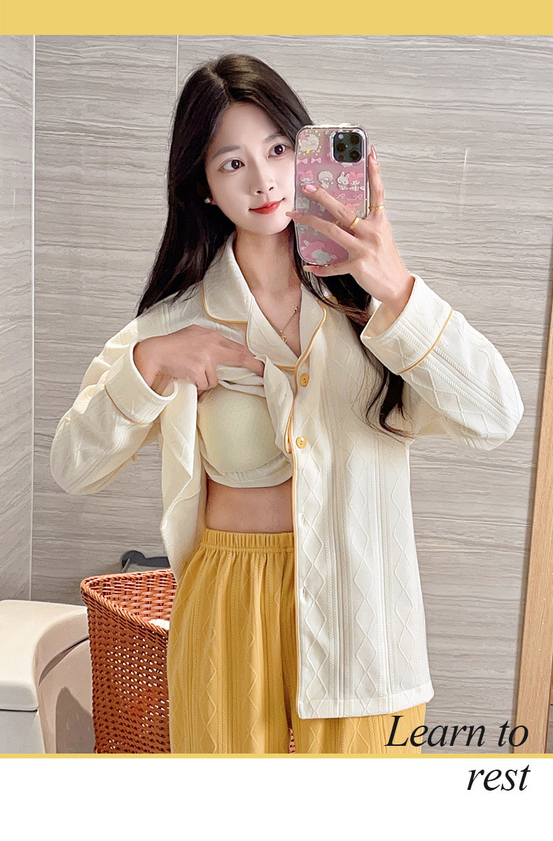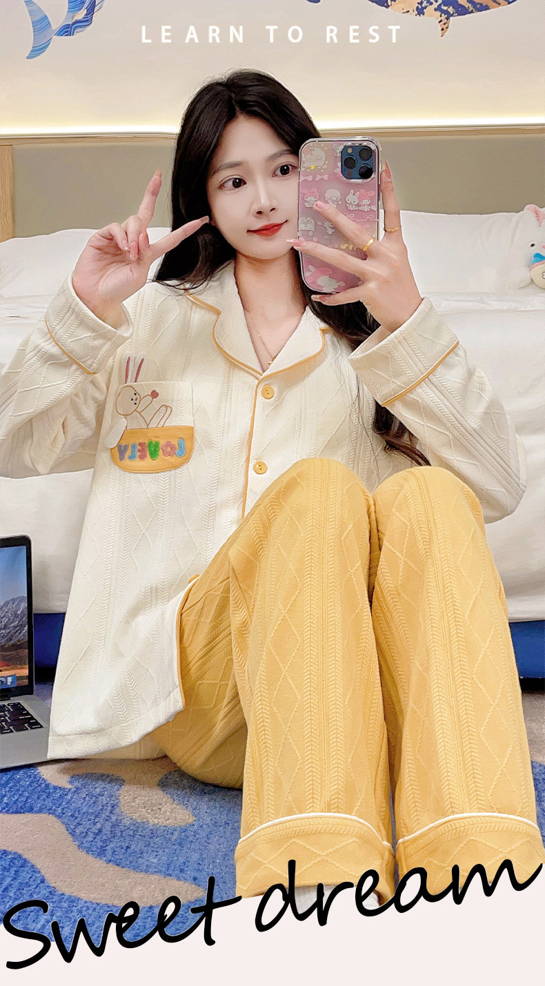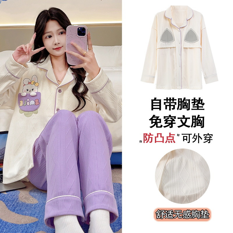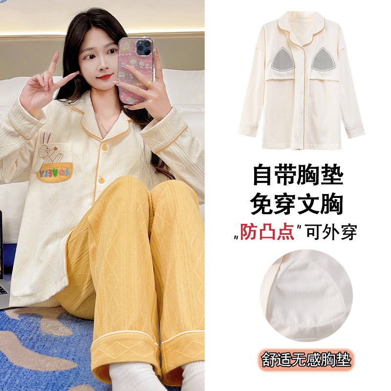2025년 신상 봄, 가을 여성용 가슴 패드가 있는 잠옷, 가슴 패드가 있는 가을 가디건, 만화 귀여운 여성용 홈웨어스토어 가기