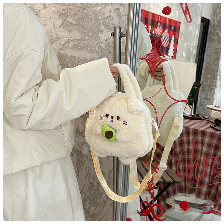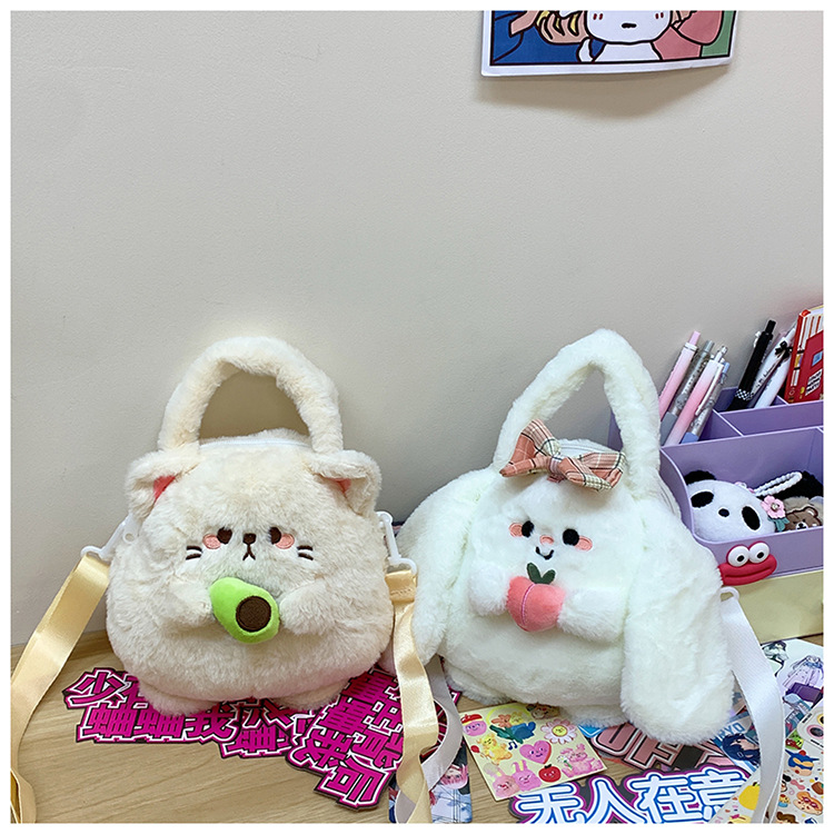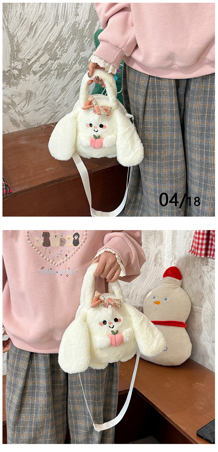2024 새로운 만화 봉제 어깨 크로스 바디 백 부드러운 귀여운 소녀 Ins 귀여운 긴 귀 토끼 핸드백 여성용스토어 가기