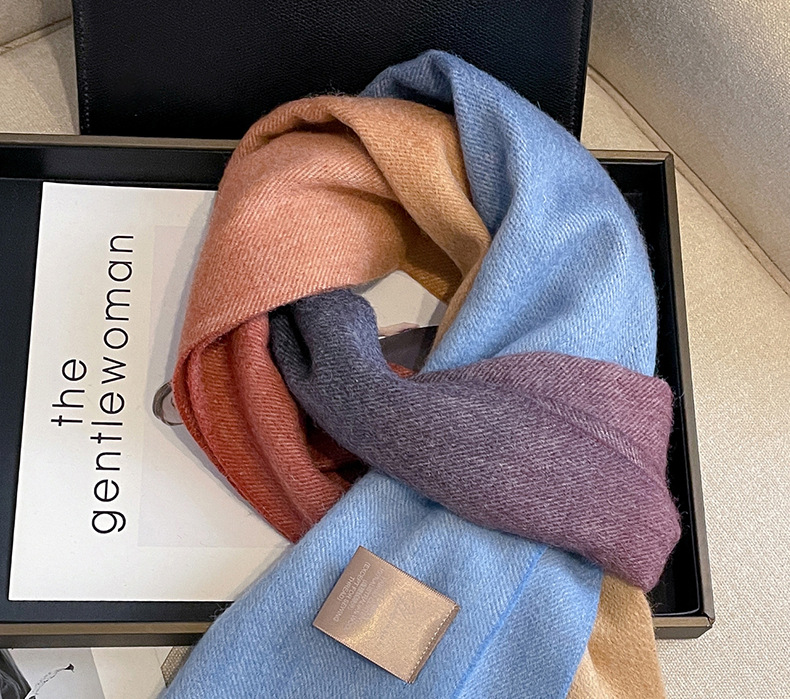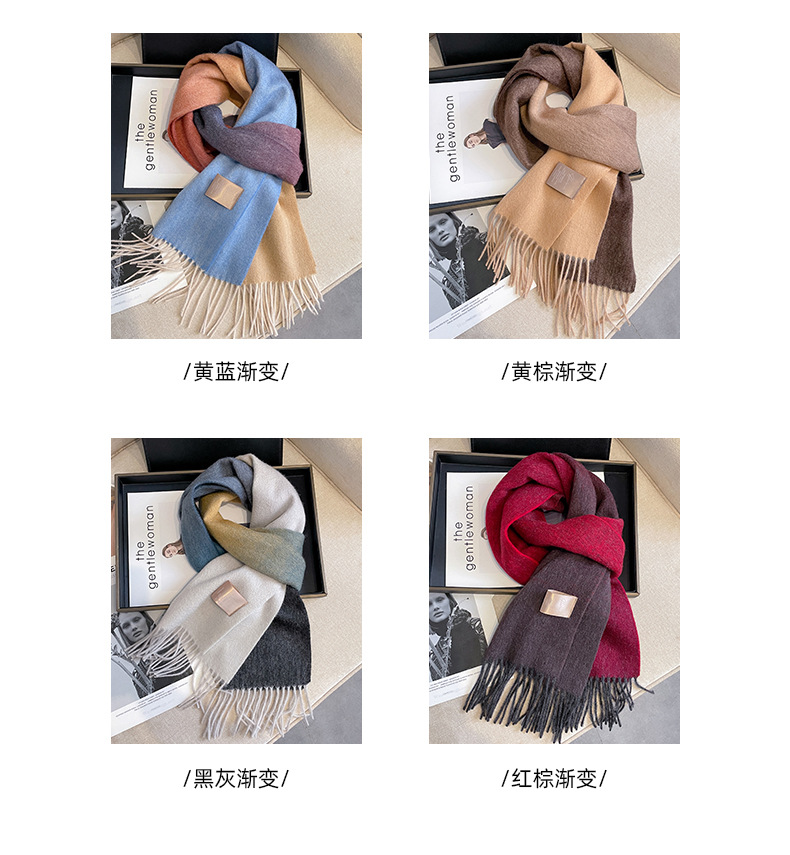 새로운 솔리드 컬러 그라디언트 양모 술 스카프 여성 겨울 패션 간단한 올 매치 목도리 하이 엔드 호주 울 스카프