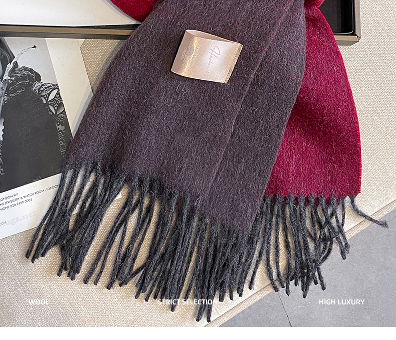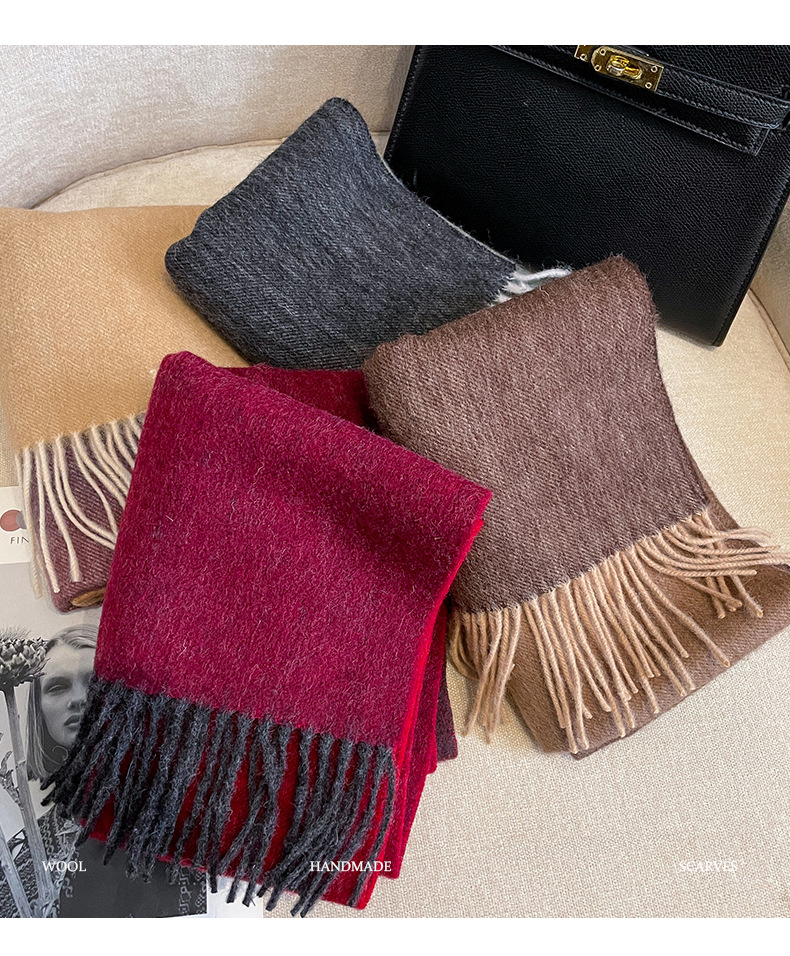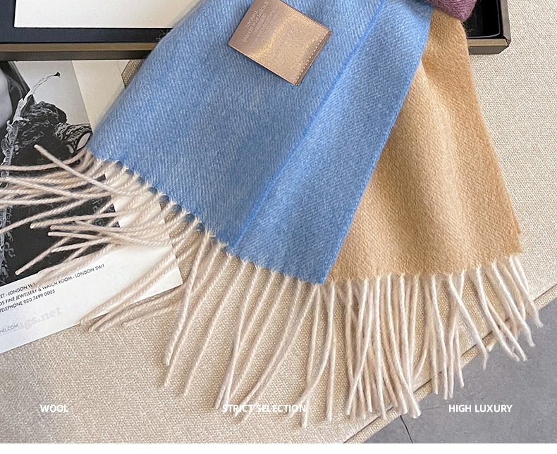 새로운 솔리드 컬러 그라디언트 양모 술 스카프 여성 겨울 패션 간단한 올 매치 목도리 하이 엔드 호주 울 스카프스토어 가기