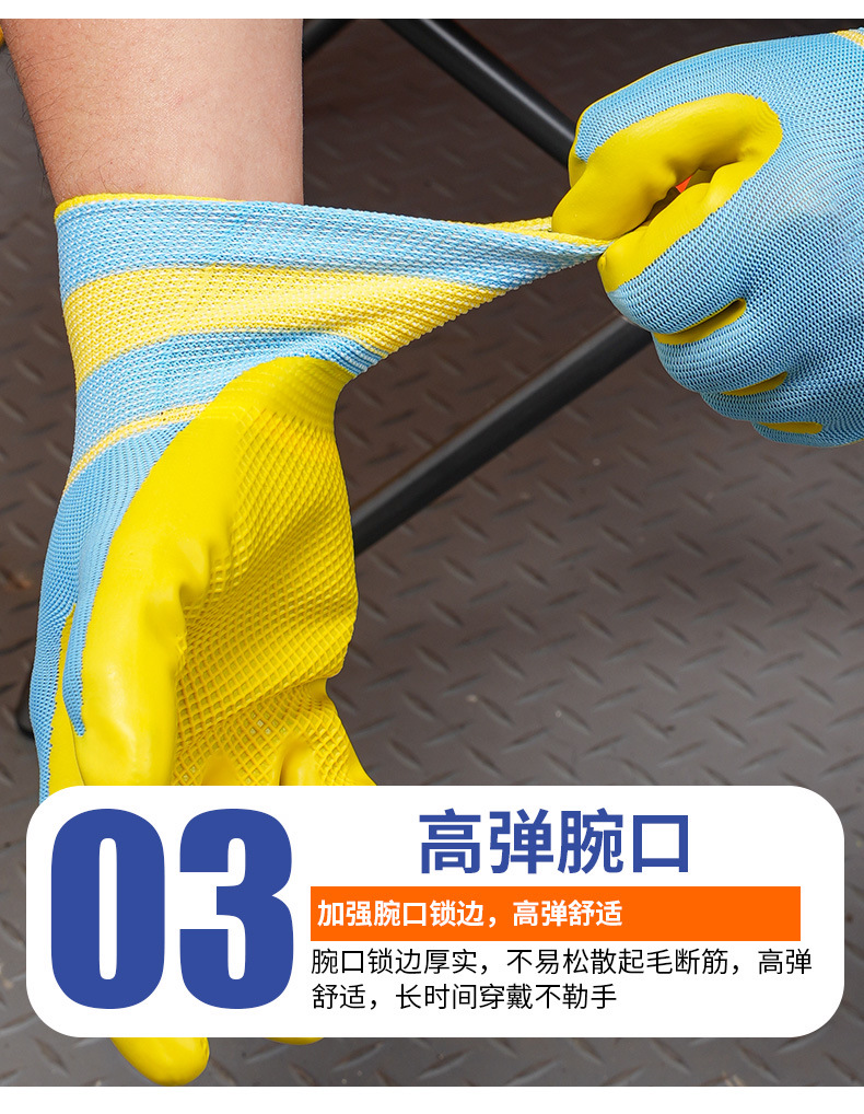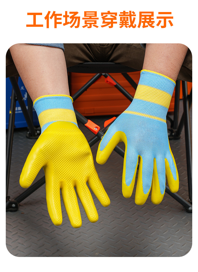 작업 보호 장갑을 두껍게 한 고무 담근 내마모성 장갑을 운반하는 작업자를위한 통기성 미끄럼 방지 라텍스 엠보싱 노동 보호 장갑스토어 가기