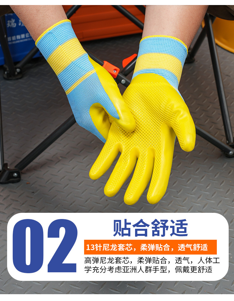 작업 보호 장갑을 두껍게 한 고무 담근 내마모성 장갑을 운반하는 작업자를위한 통기성 미끄럼 방지 라텍스 엠보싱 노동 보호 장갑