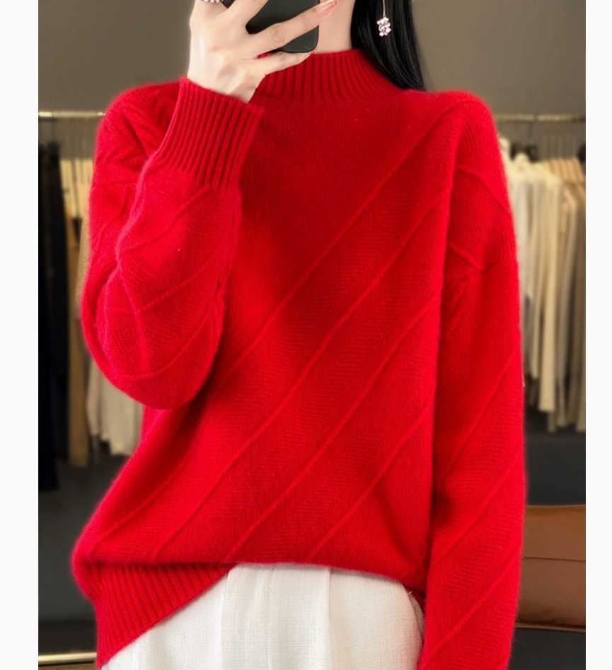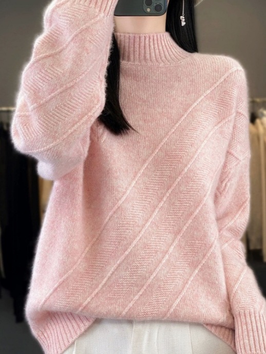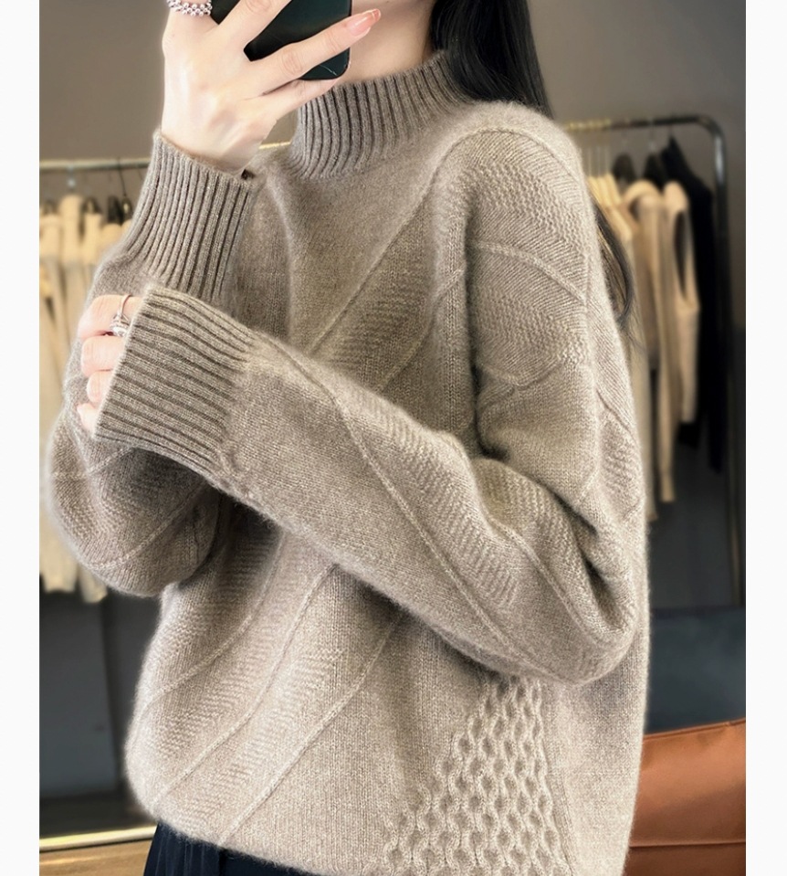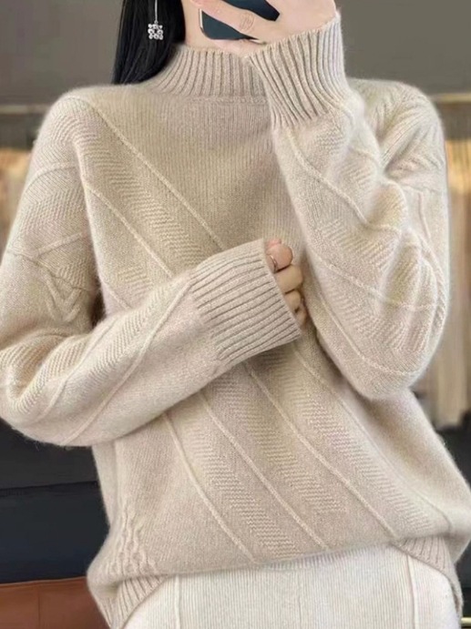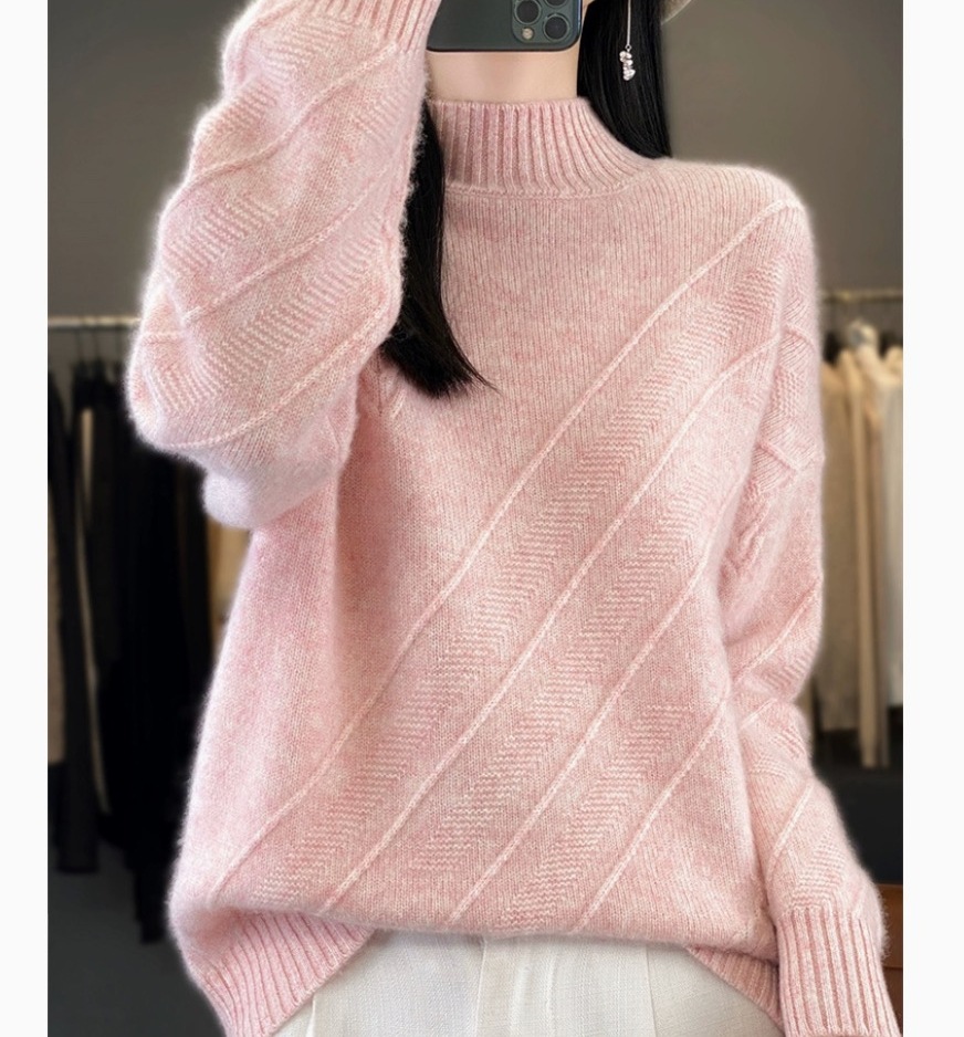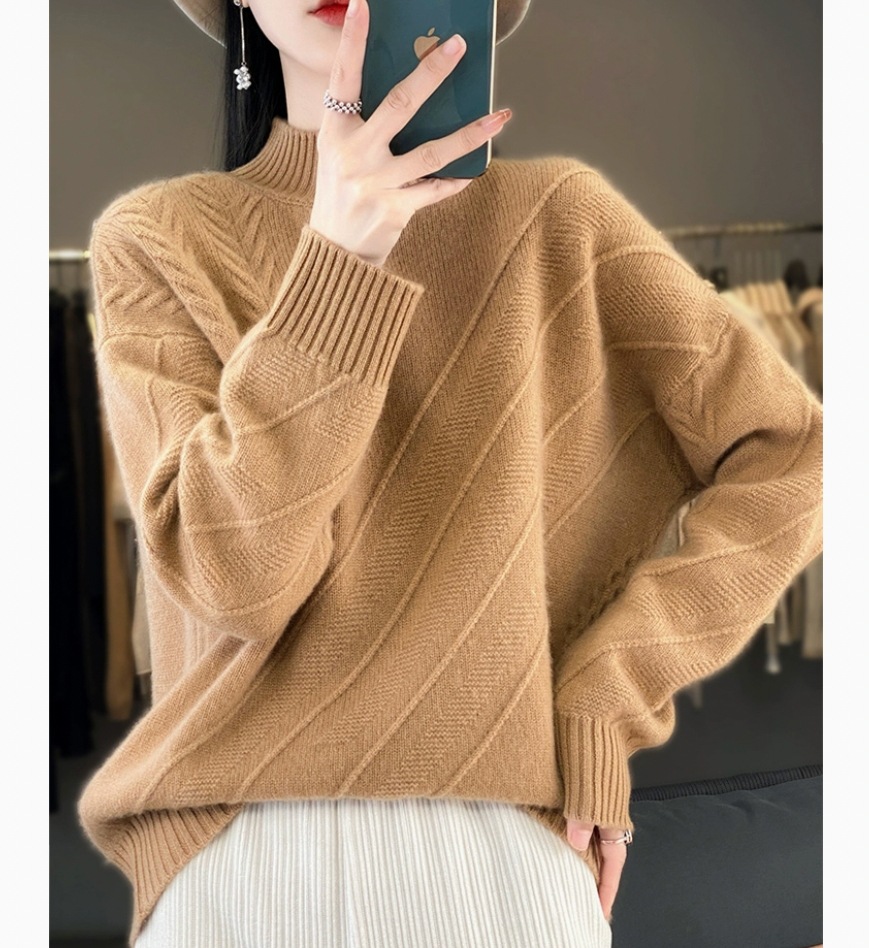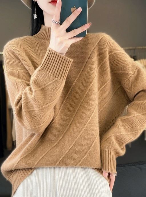 2024 가을과 겨울을위한 여성 하프 터틀넥 스웨터 새로운 패션 간단한 게으른 두꺼운 내부 루즈베이스 셔츠 트렌디