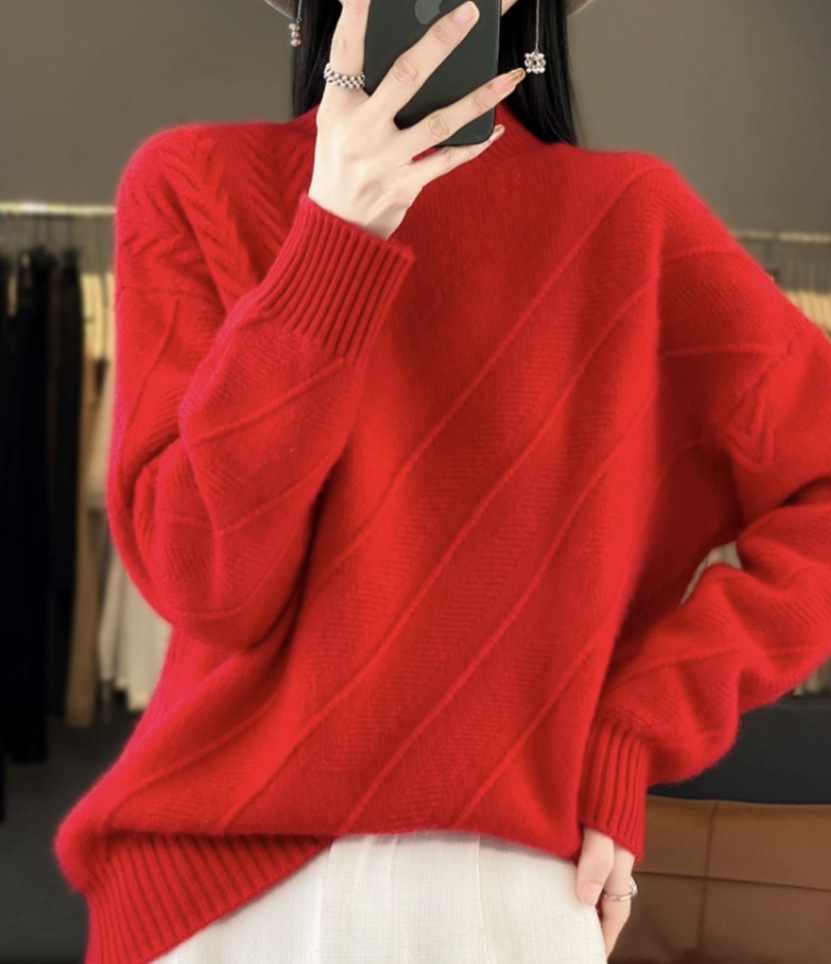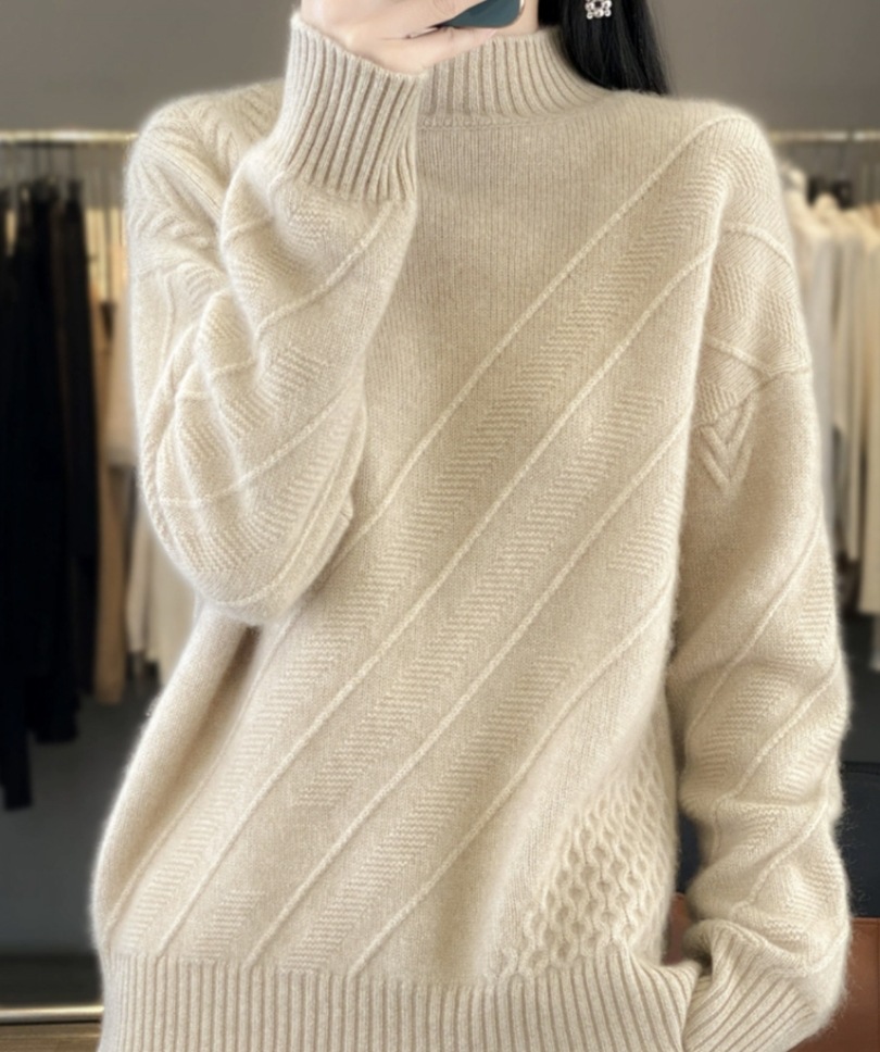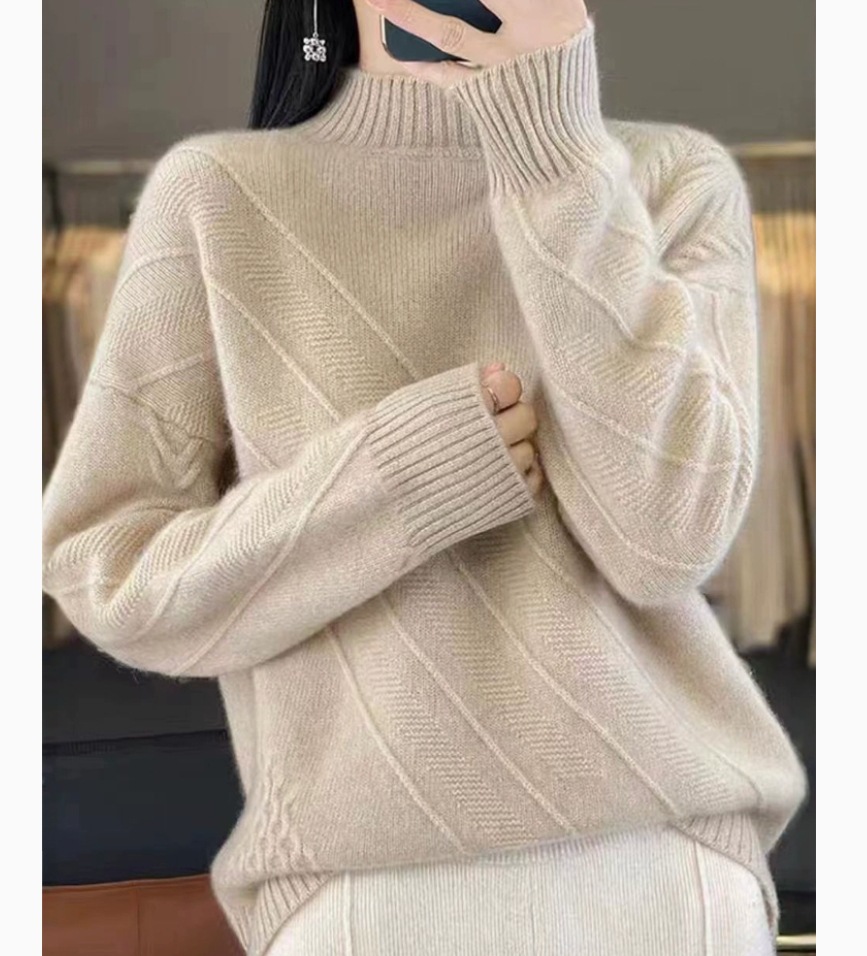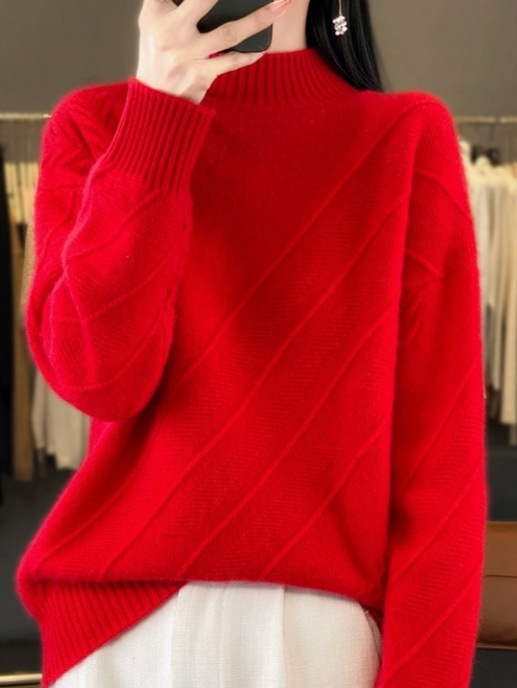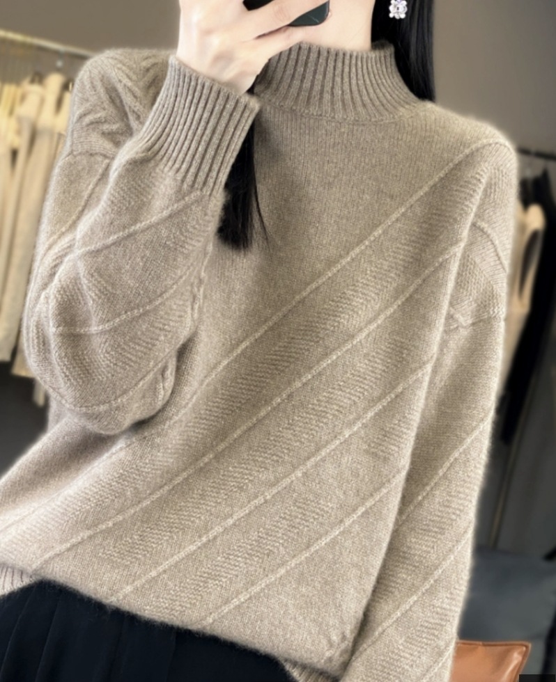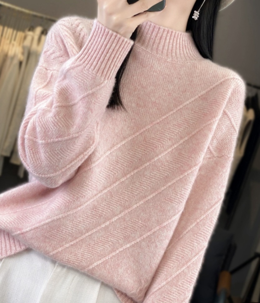 2024 가을과 겨울을위한 여성 하프 터틀넥 스웨터 새로운 패션 간단한 게으른 두꺼운 내부 루즈베이스 셔츠 트렌디