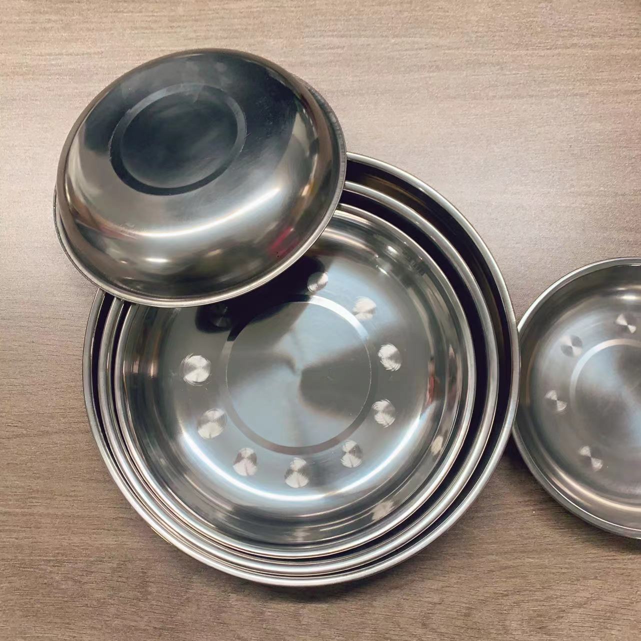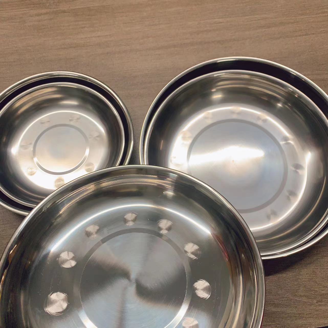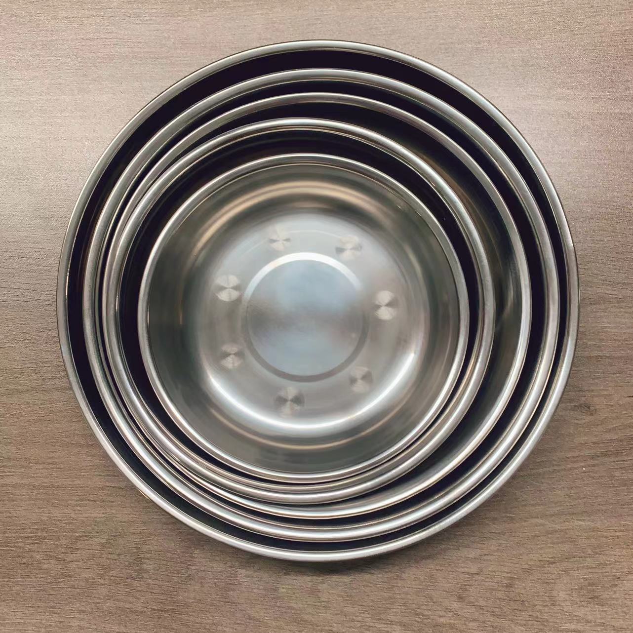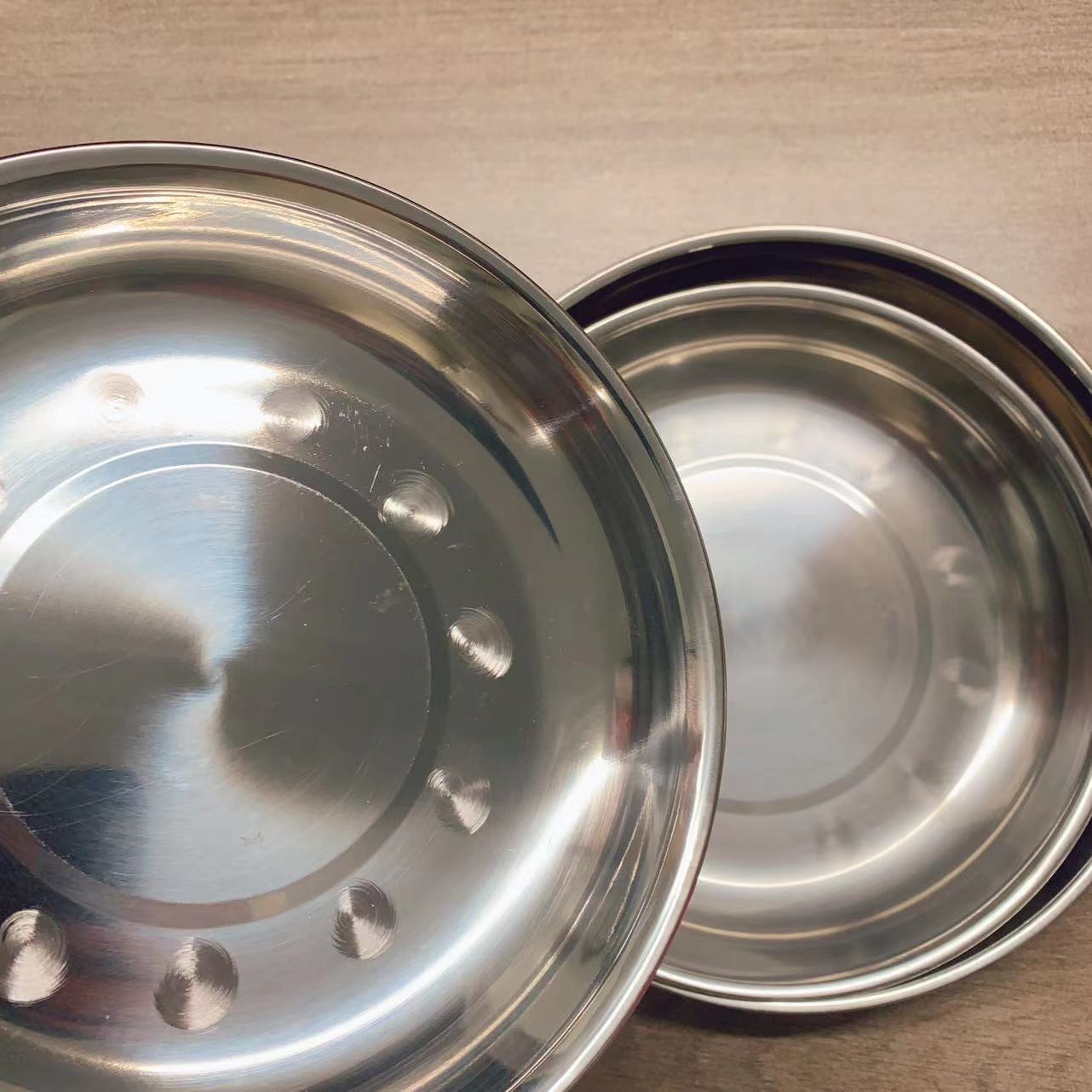 스테인레스 스틸 플레이트 마그네틱 디스크 접시 가구 얕은 라운드 플랫 플레이트 다이닝 룸 식기 플레이트 다이닝 룸스토어 가기