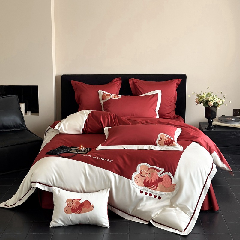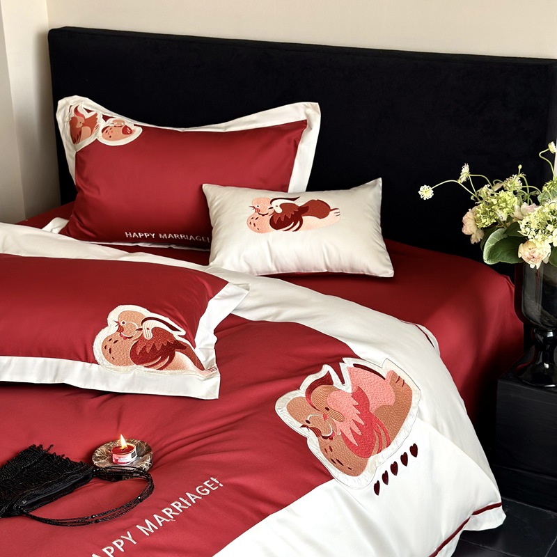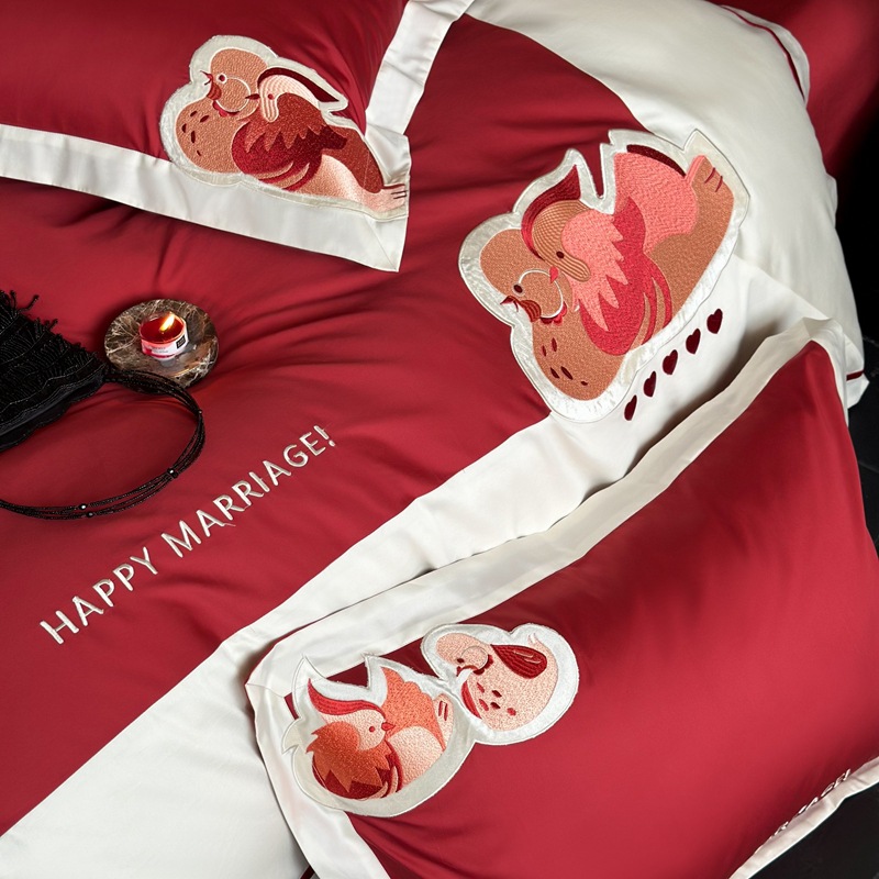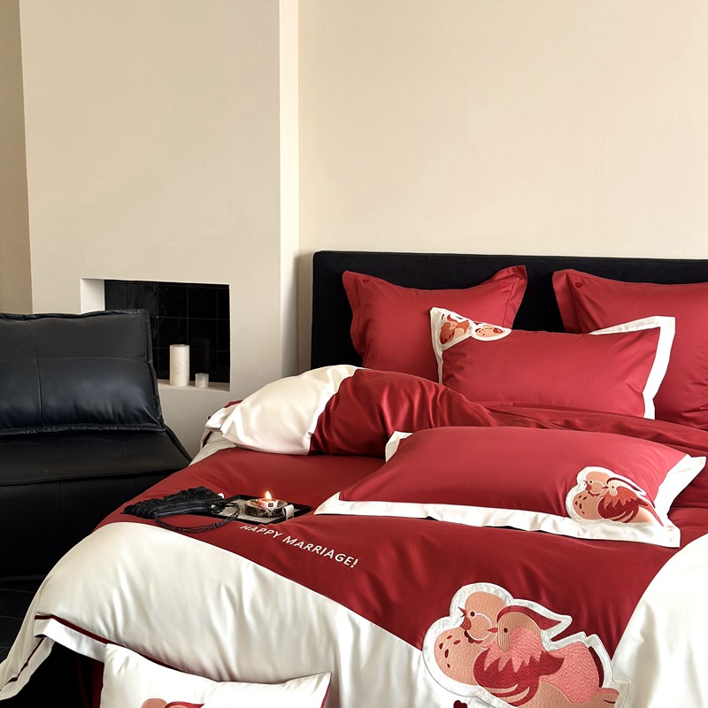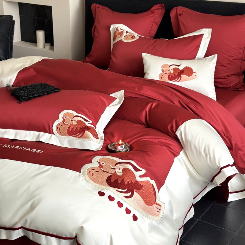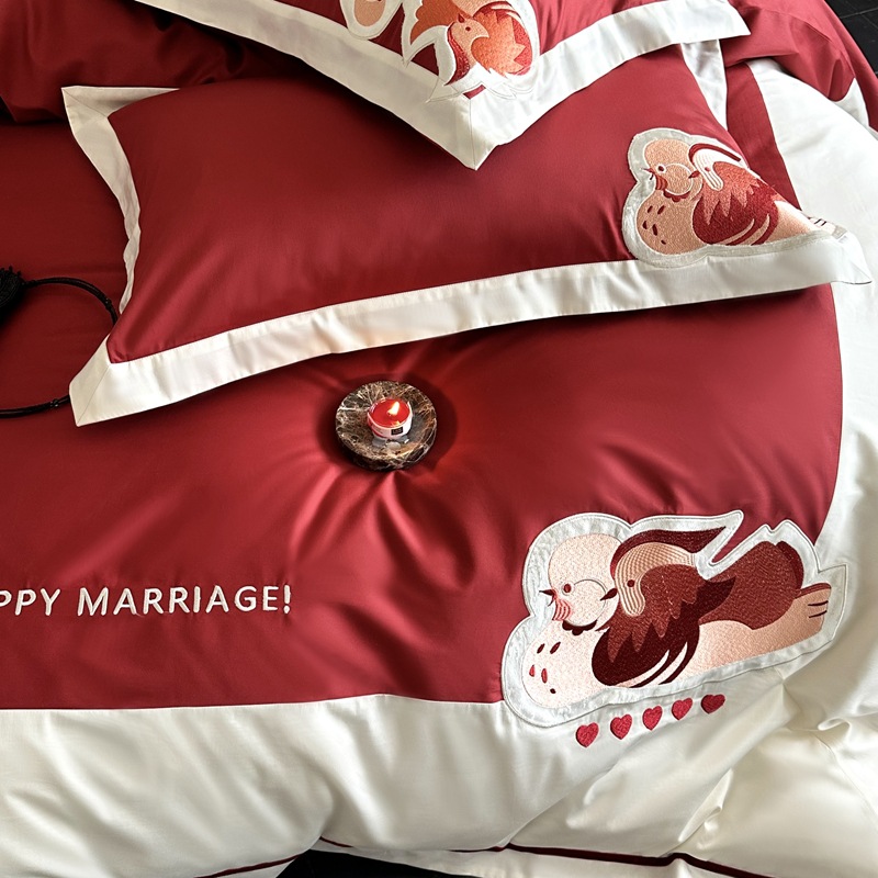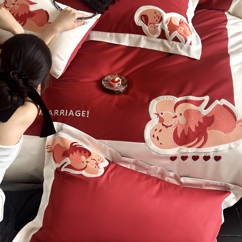 2025 새로운 100 롱 스테이플 코튼 자수 웨딩 4 피스 세트 7 만다린 오리