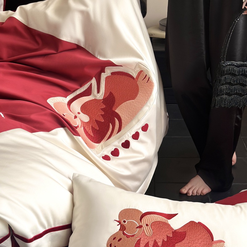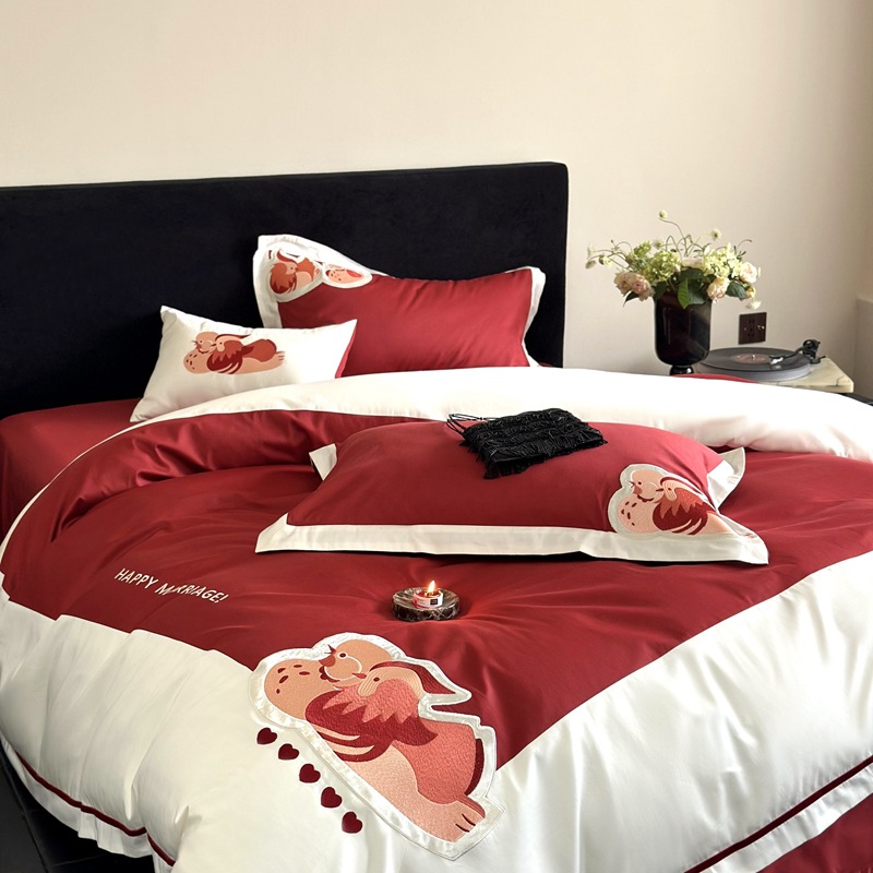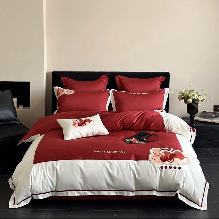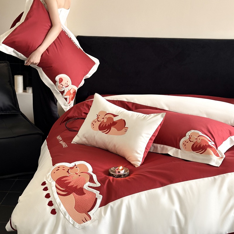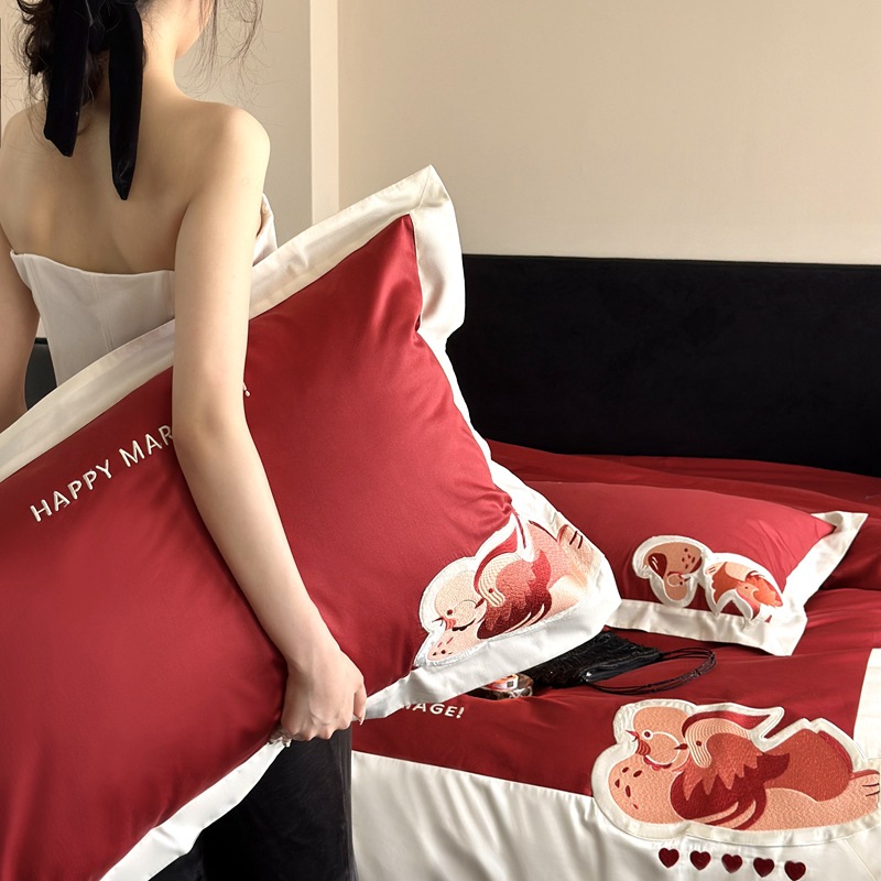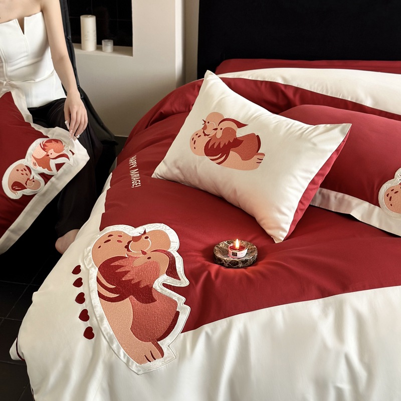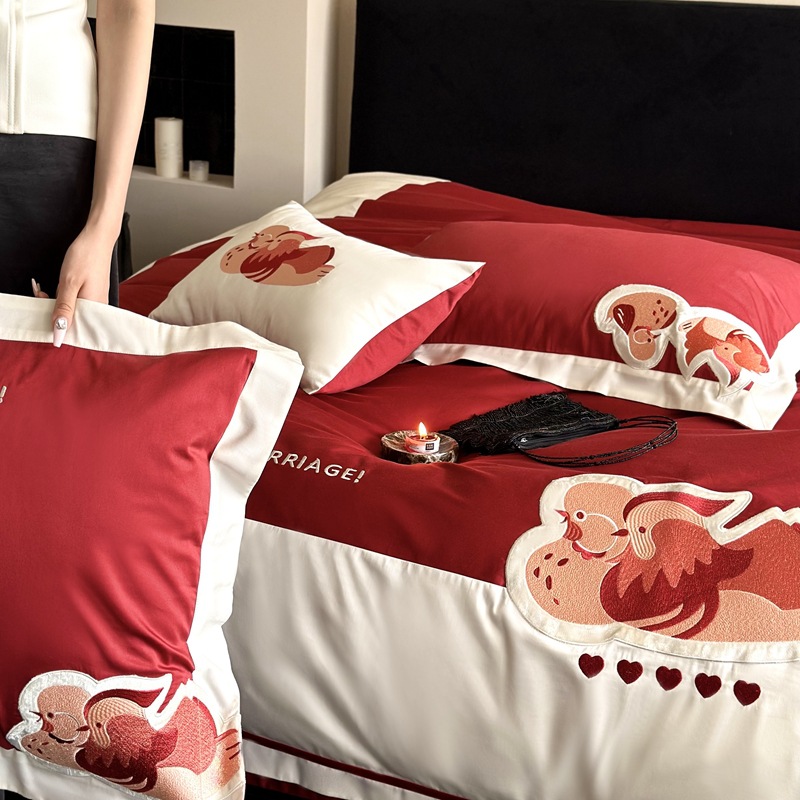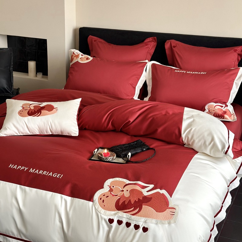 2025 새로운 100 롱 스테이플 코튼 자수 웨딩 4 피스 세트 7 만다린 오리
