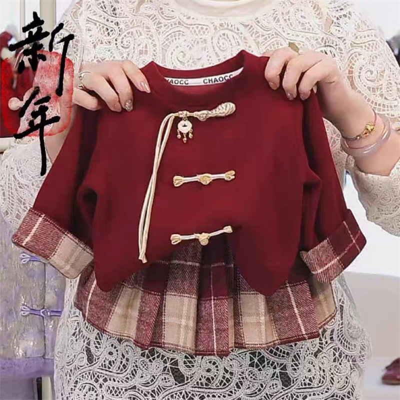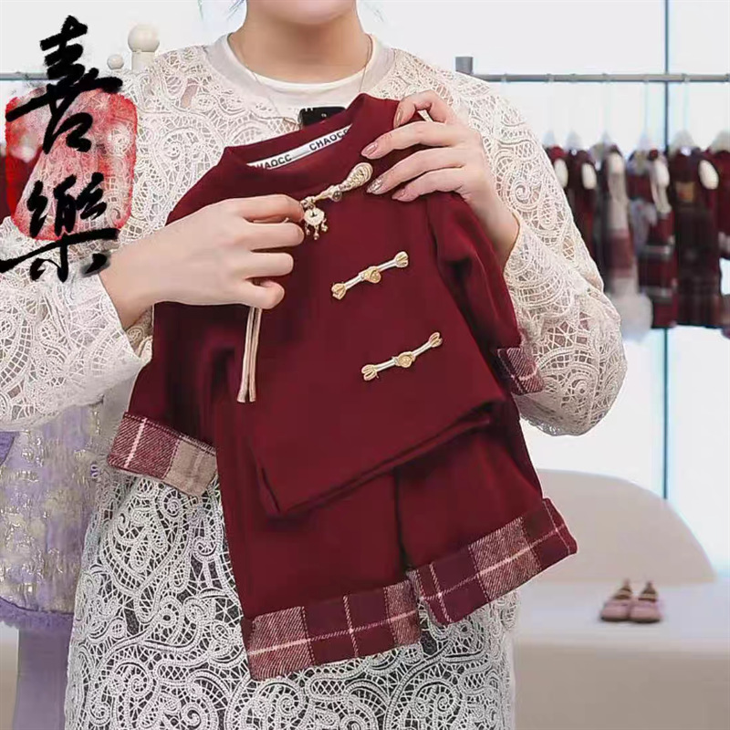 라임 소녀의 가을과 겨울 새로운 중국 스타일 세트 크리스마스 설날 아기 소녀 Guofeng 어린이 복고풍 가을 투피스 세트스토어 가기