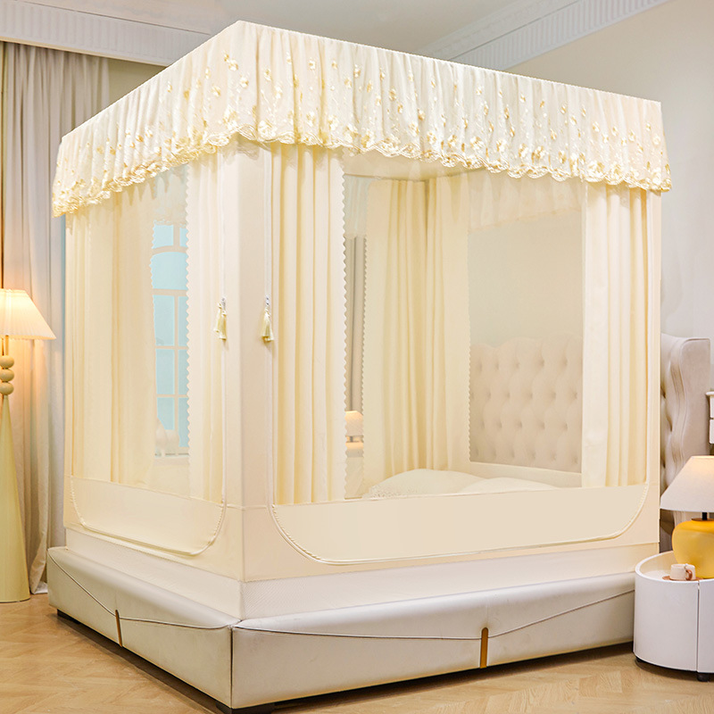 새로운 앉아있는 침대 커튼 모기장 가구 통합 음영 침대 맨틀 따뜻한 암호화 두꺼운 3 도어 좌석 침대 모기장