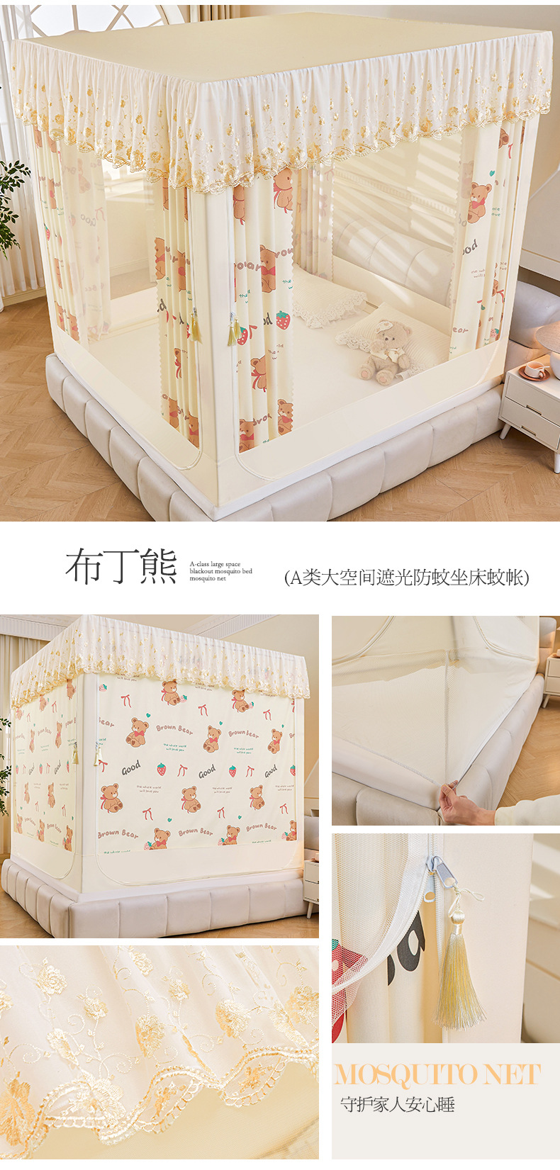 • 베이지색 모기장과 브래킷
