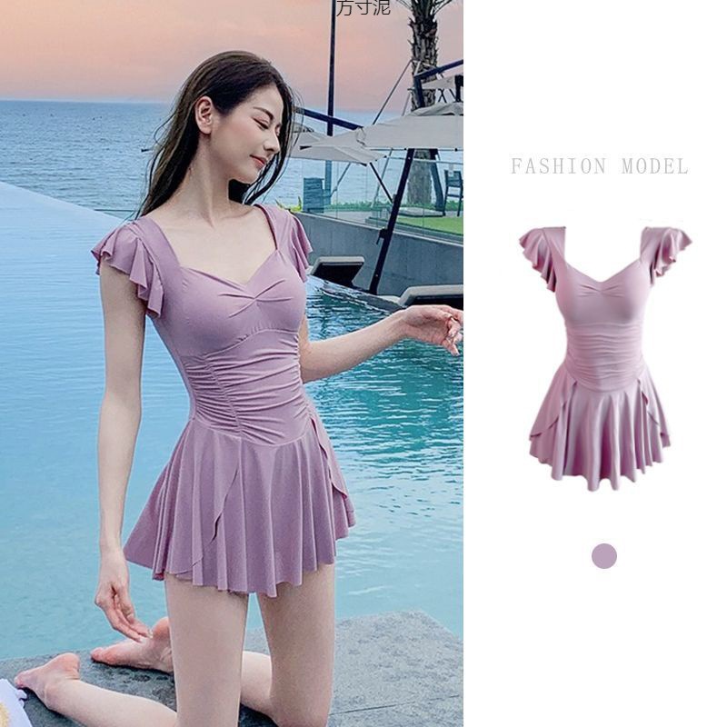 원피스 스커트 수영복 여성스러운 섹시한 수영복 귀여운 가슴 패드 주름진 플랫 코너 고기스토어 가기