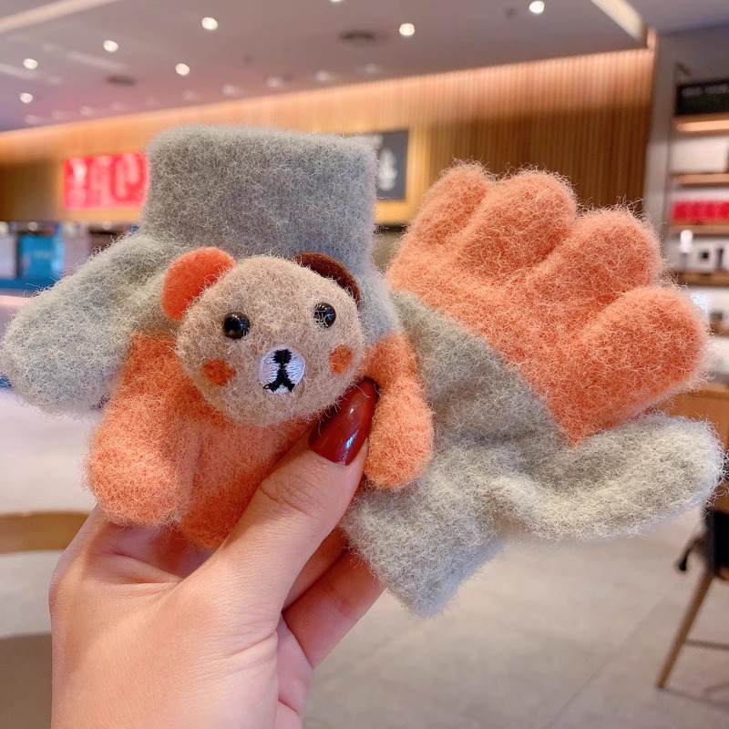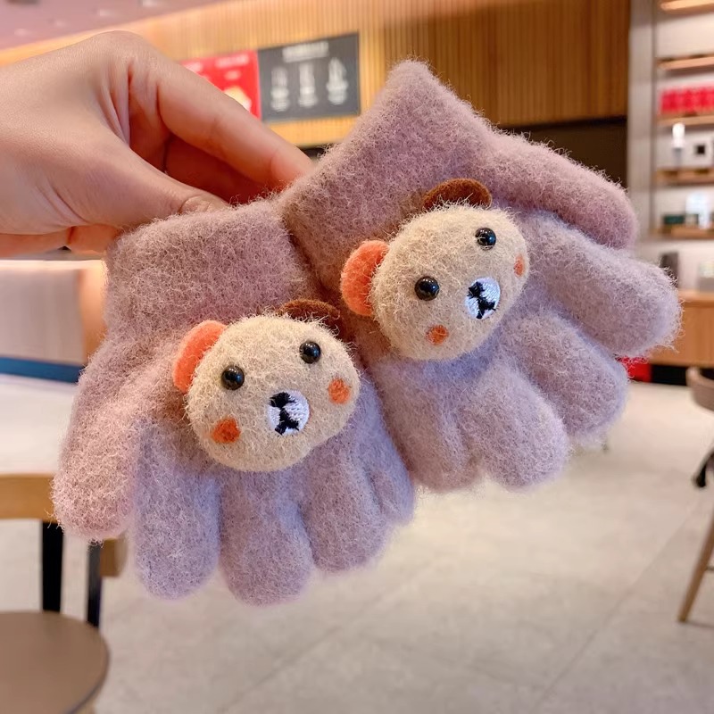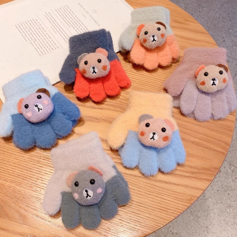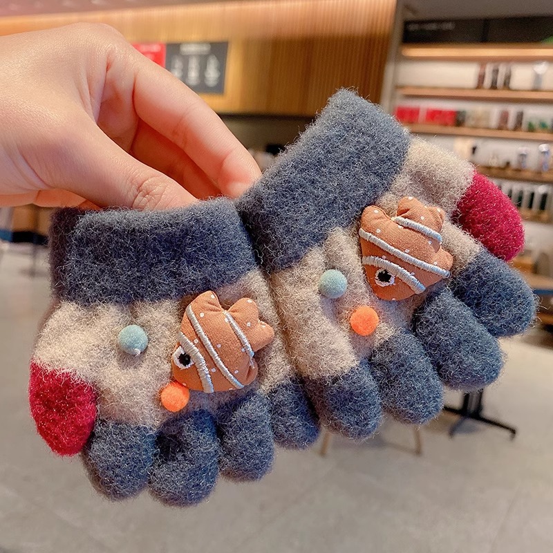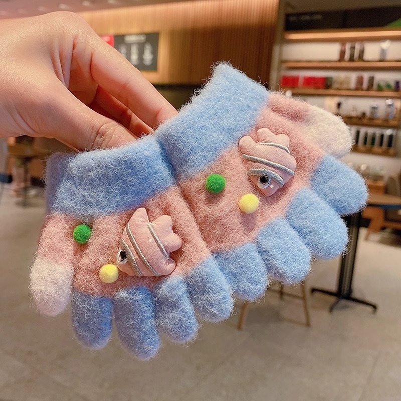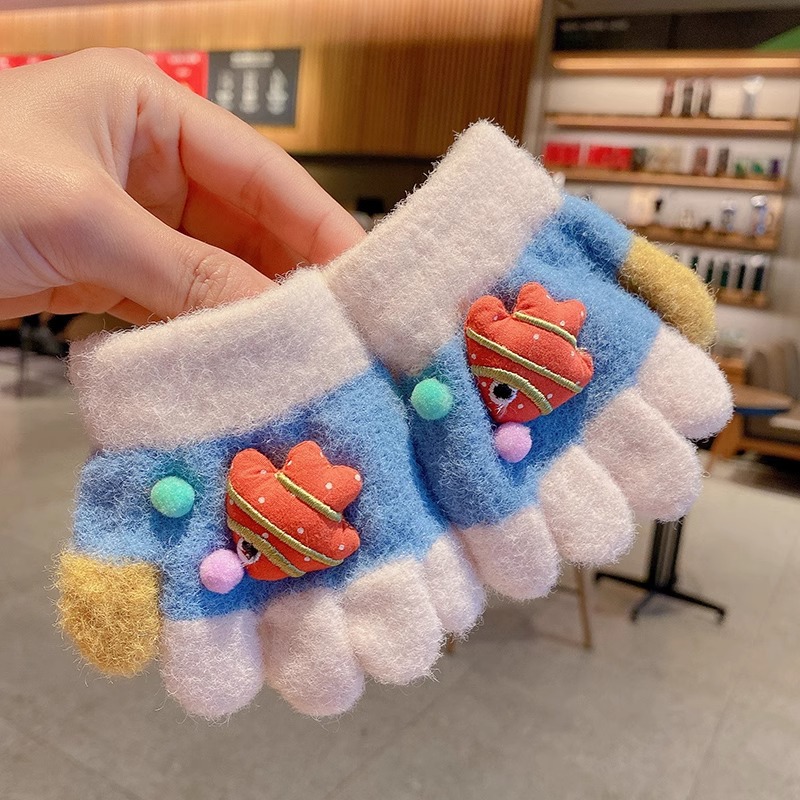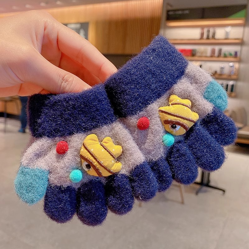 귀여운 만화 아기 장갑 겨울 겨울 0-3 세 소년 소녀 겨울 어린이를위한 다섯 손가락 분할 손가락 따뜻한스토어 가기