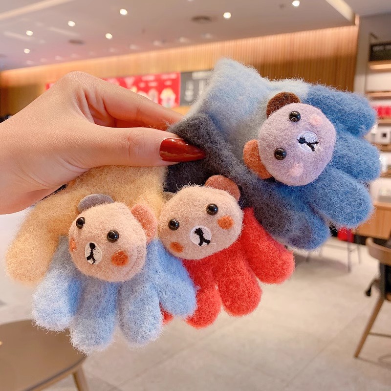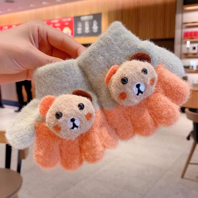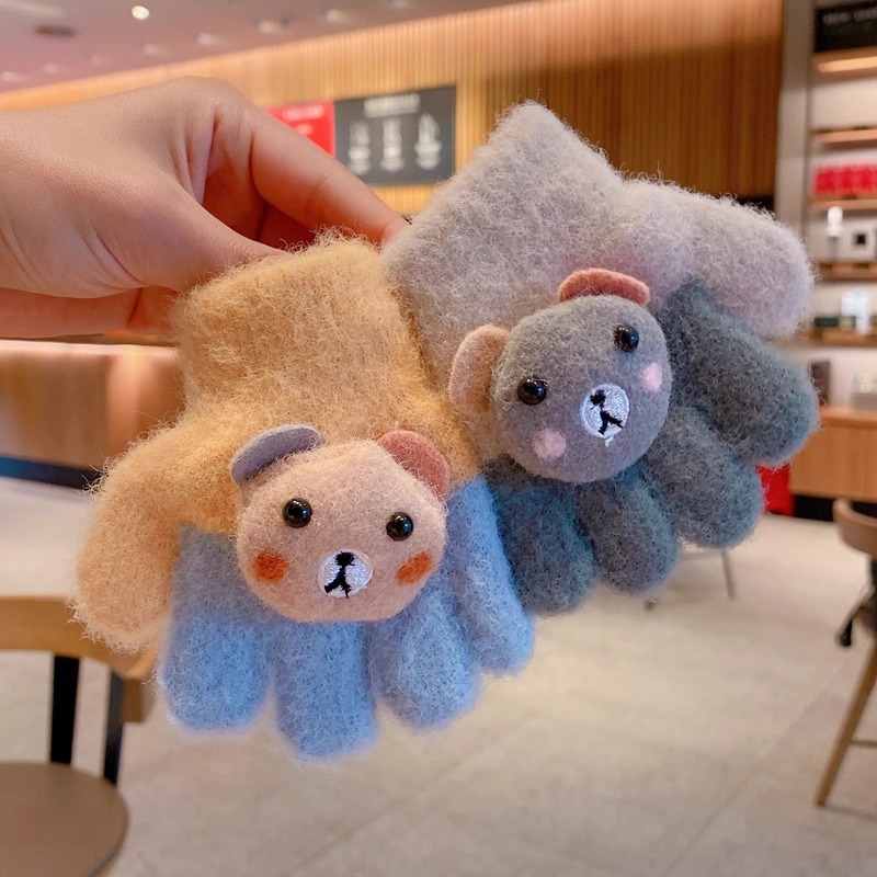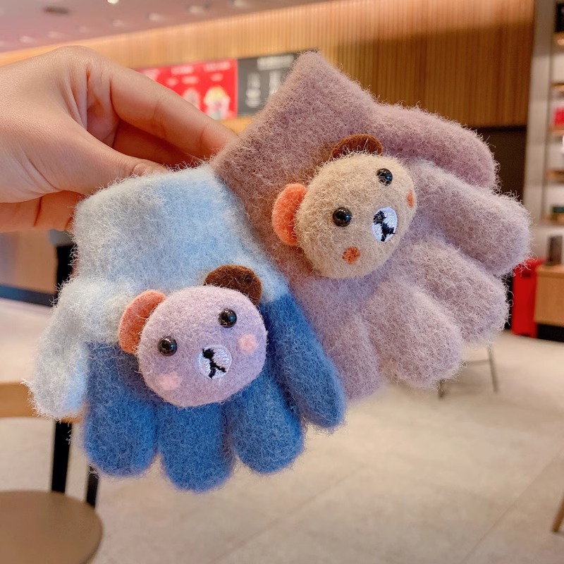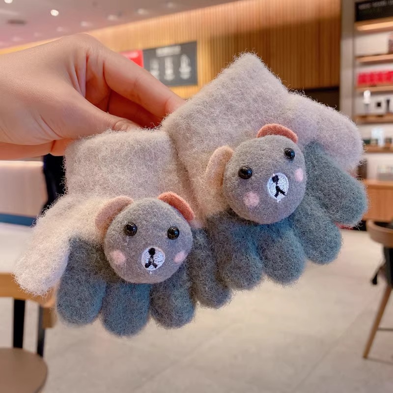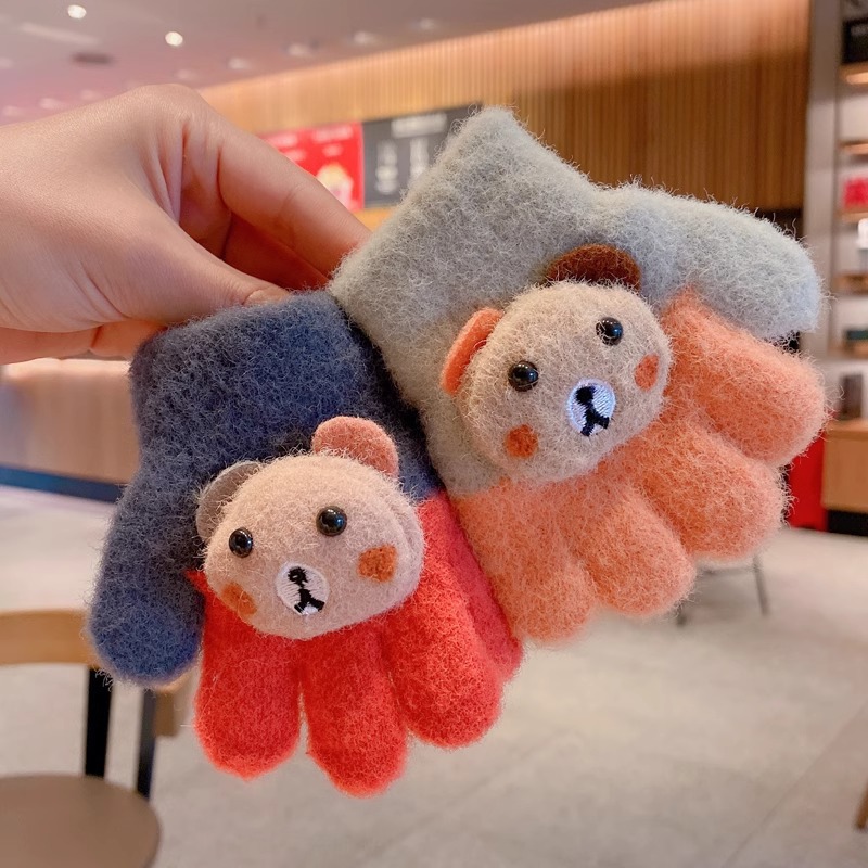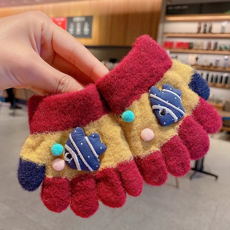 귀여운 만화 아기 장갑 겨울 겨울 0-3 세 소년 소녀 겨울 어린이를위한 다섯 손가락 분할 손가락 따뜻한스토어 가기