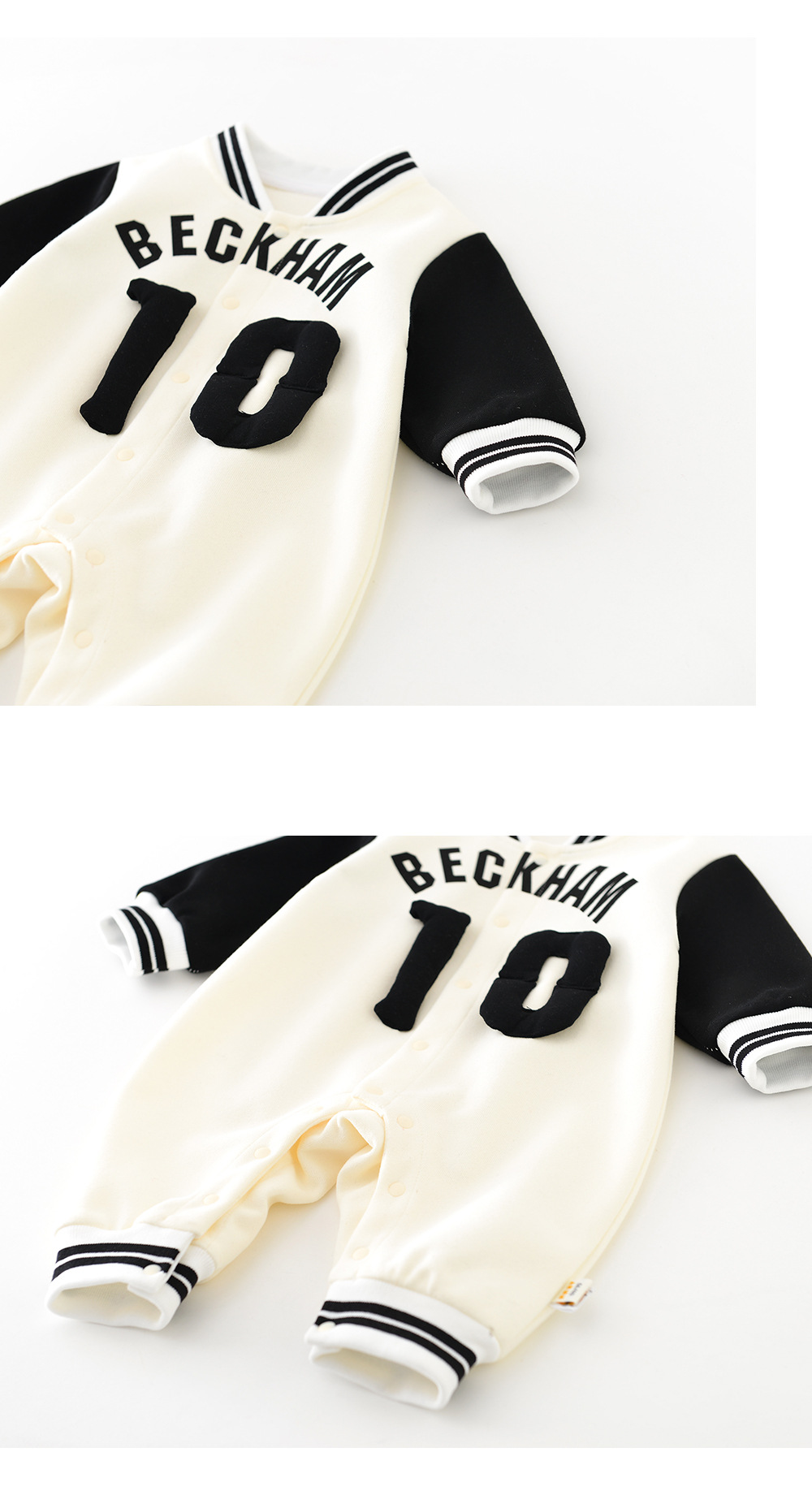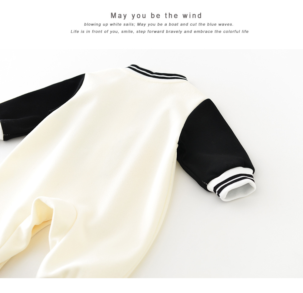 2025秋季新款儿童卡通连身衣 新生儿条纹脱卸领长袖爬服53566