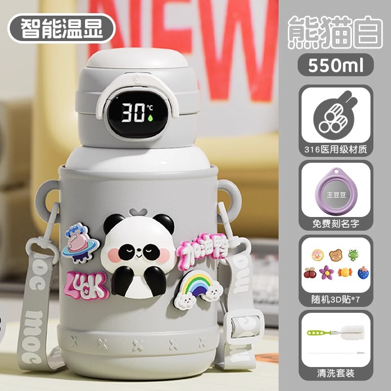 • [지능형 온도표시] 판다화이트 550ml - 입체스티커 + 오리지널 컵슬리브 + 클리닝세트