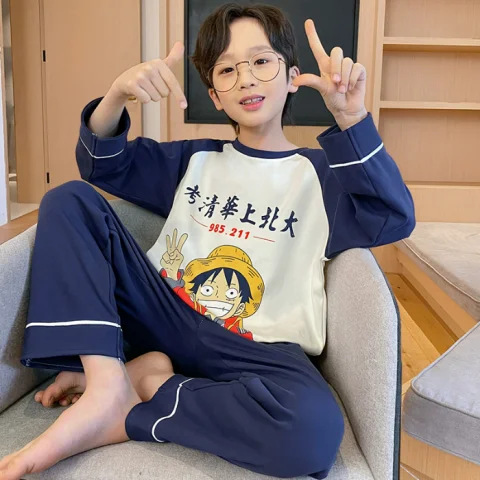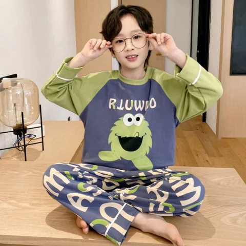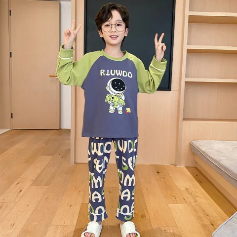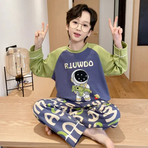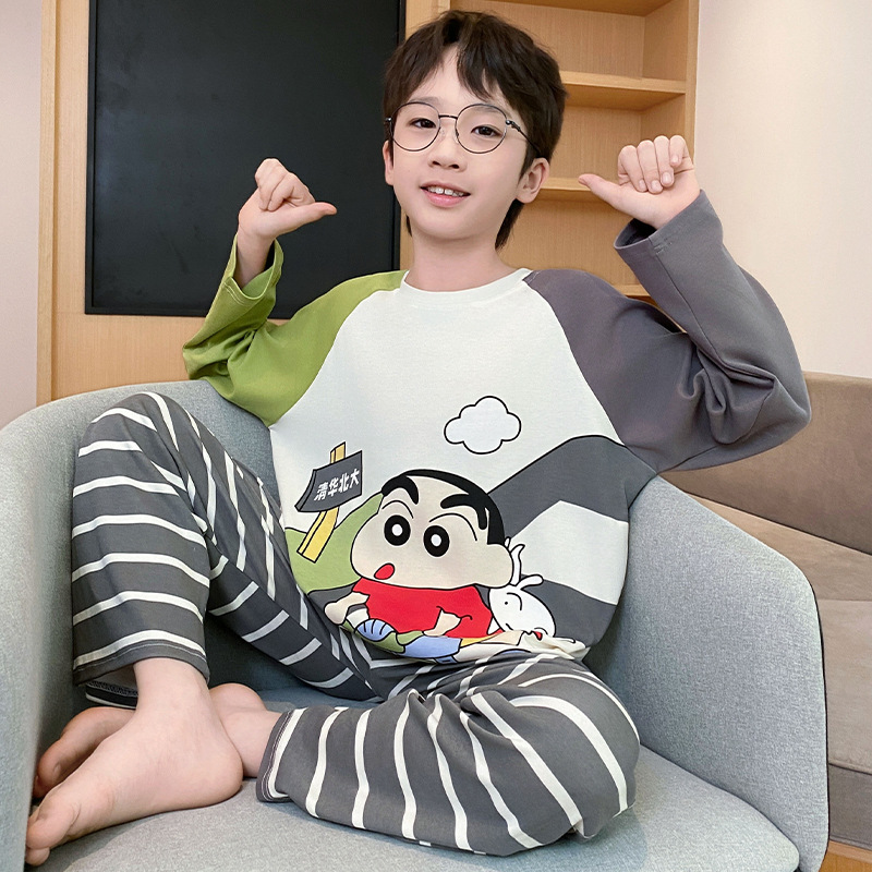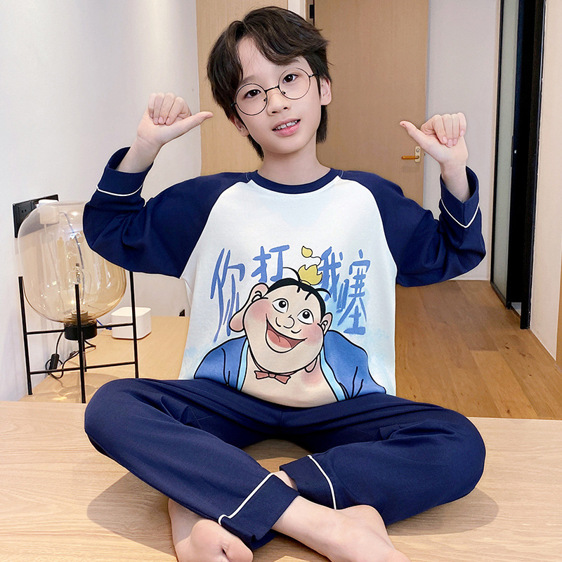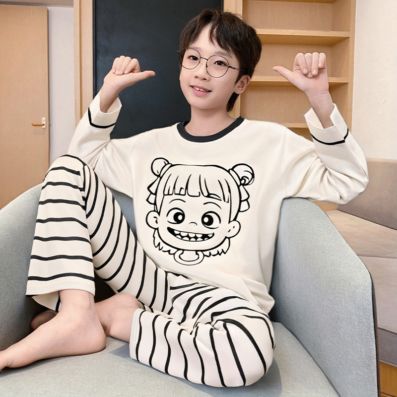 봄과 가을 소년용 잠옷 순면 긴팔 만화 네자2 중대형 어린이 소년용 순면 홈웨어 세트