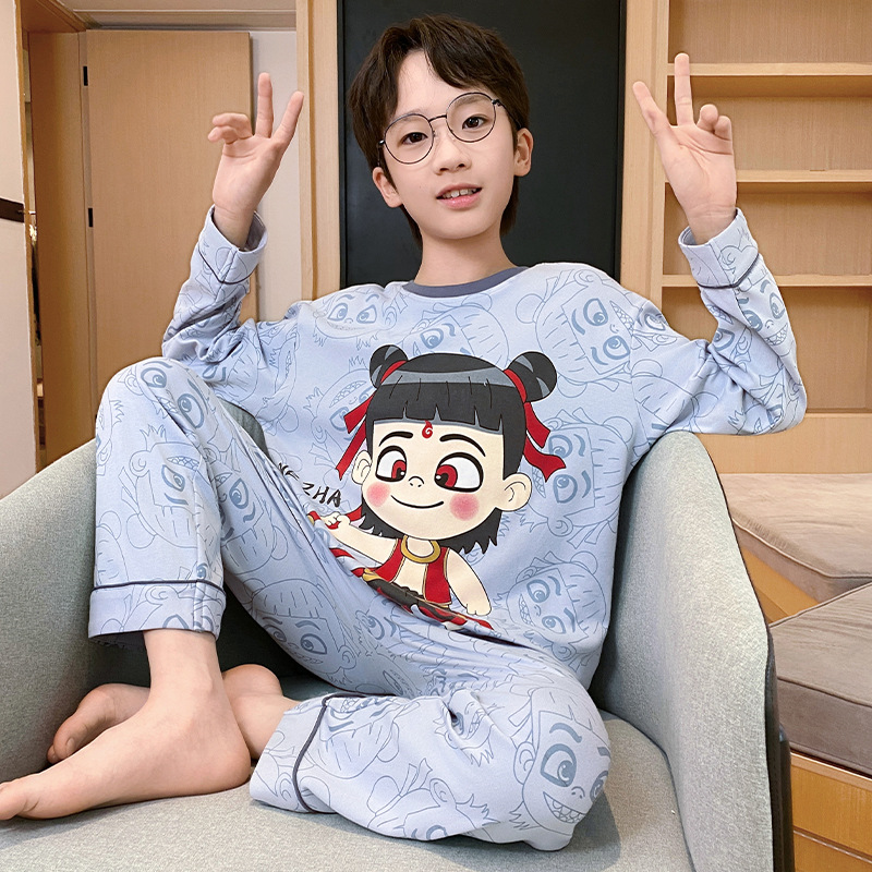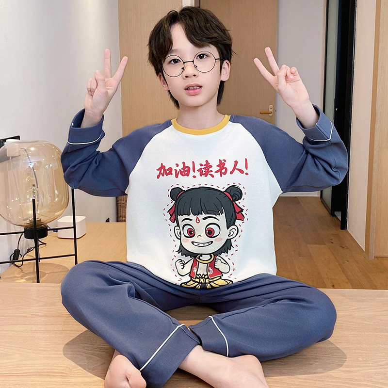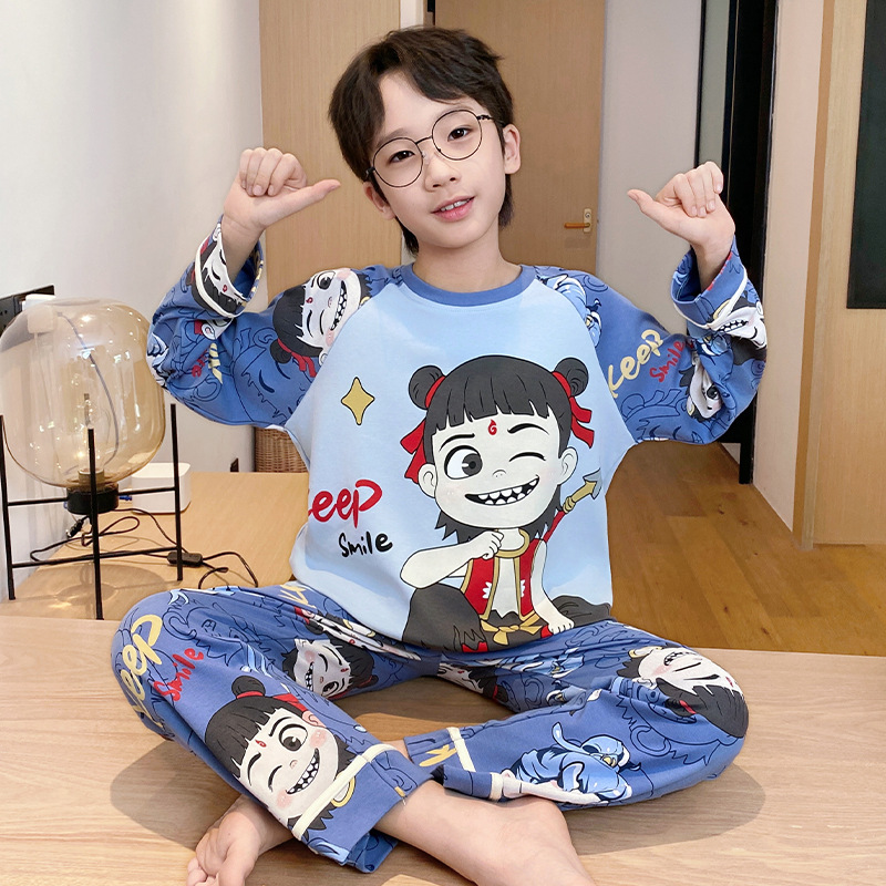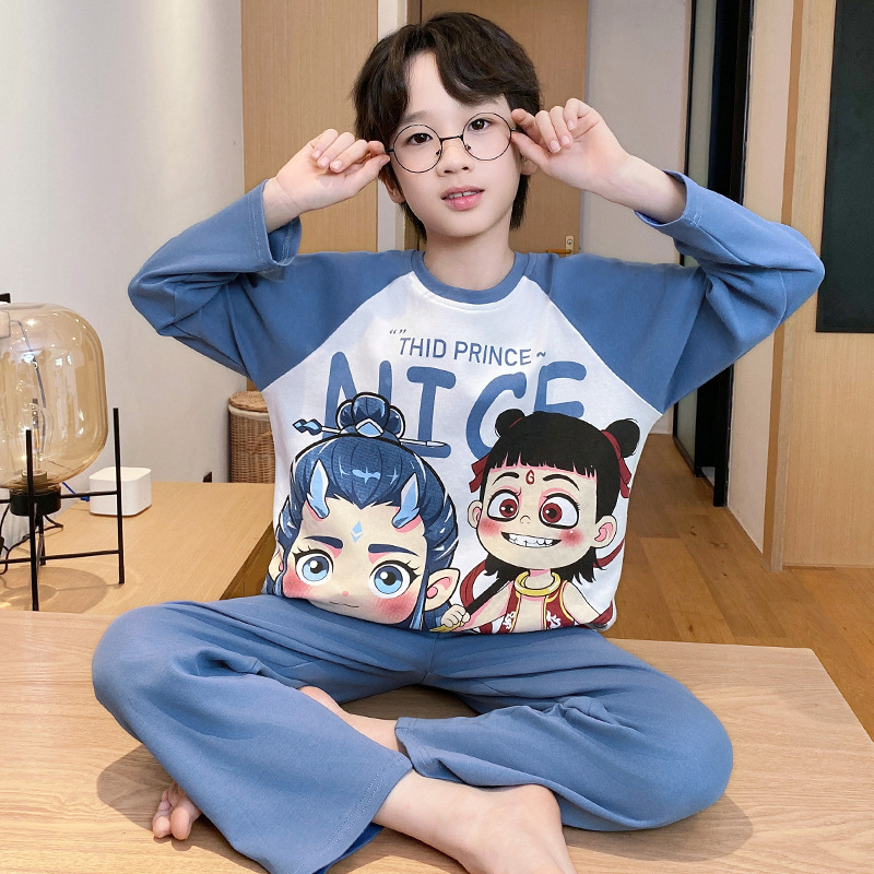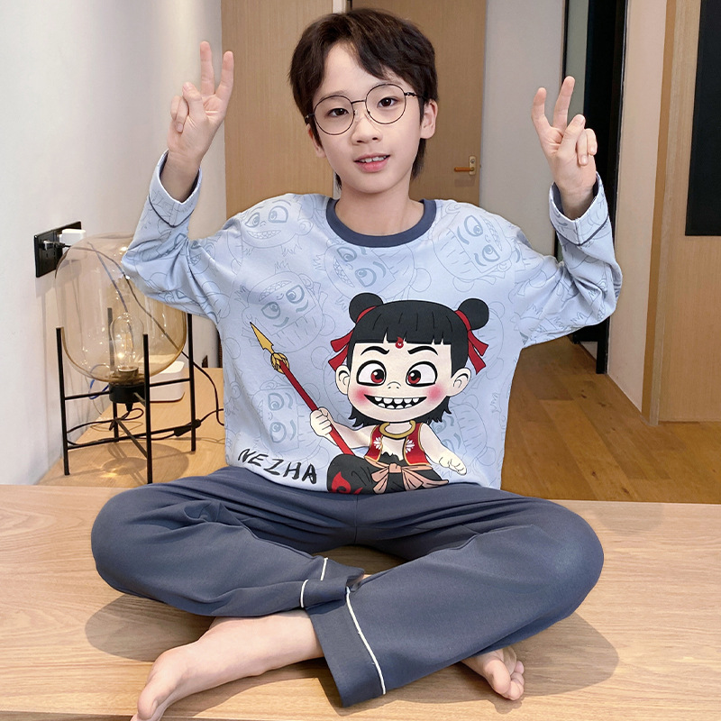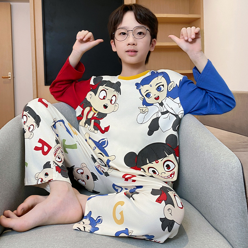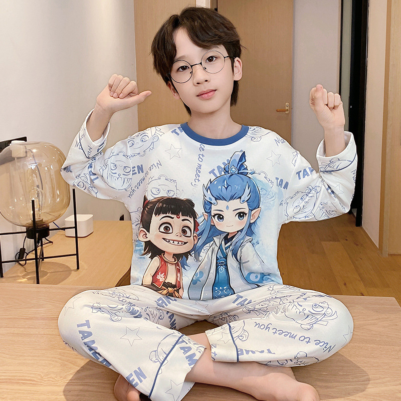 봄과 가을 소년용 잠옷 순면 긴팔 만화 네자2 중대형 어린이 소년용 순면 홈웨어 세트스토어 가기