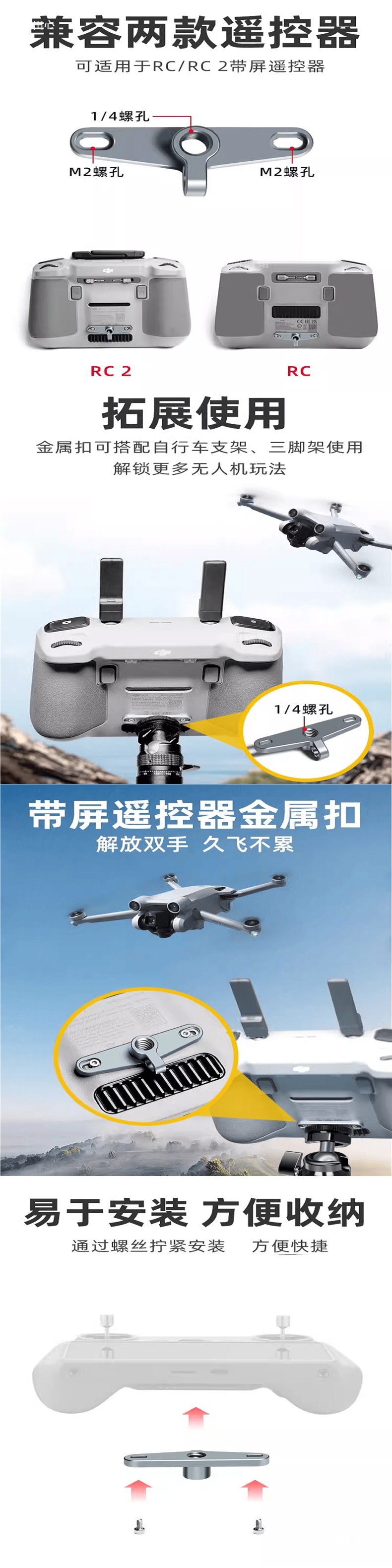 화면 원격 제어 금속 버클 브래킷 RC2 RC 삼각대 액세서리 DJI Yu 3/Air3/Mini3/4Pro