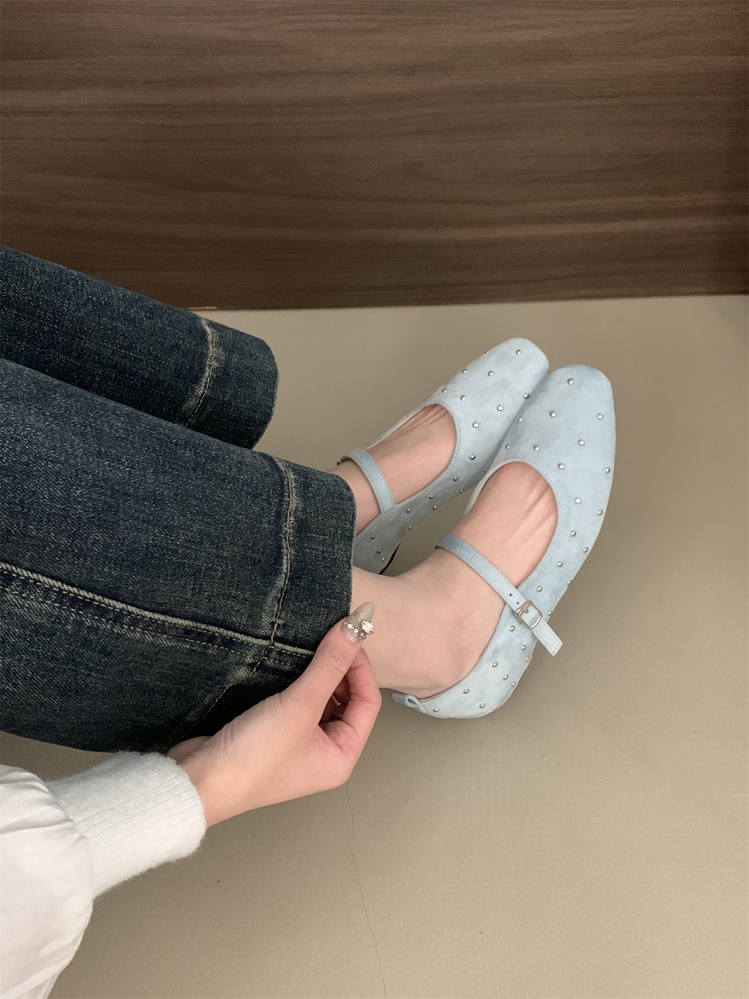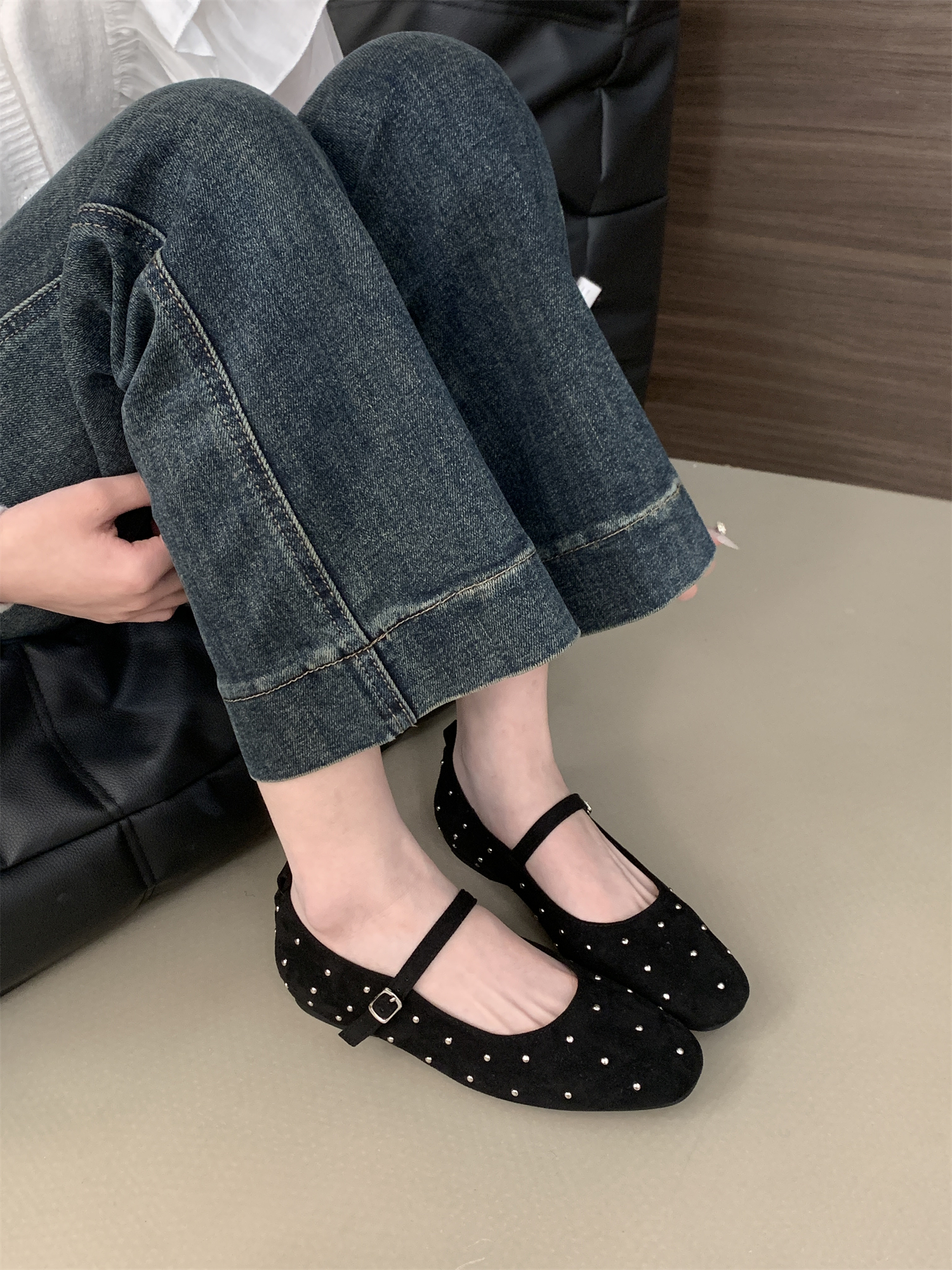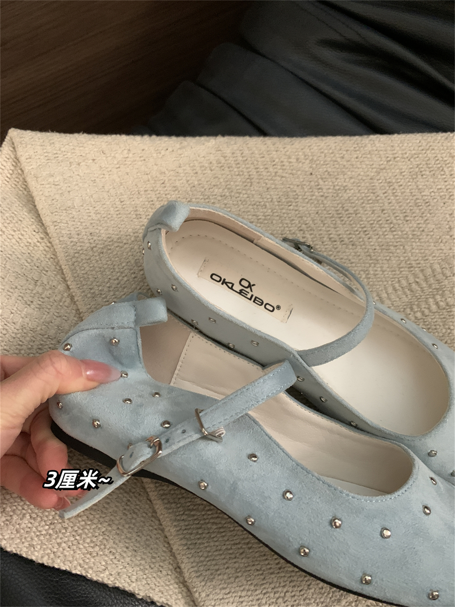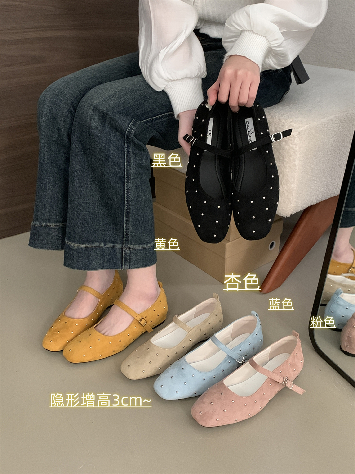 한국식 레트로 벨벳 리벳 올스타 메리 제인 여자 2025 년 초봄 새 한 단어 버클 스트랩 높이 증가 단층 신발스토어 가기