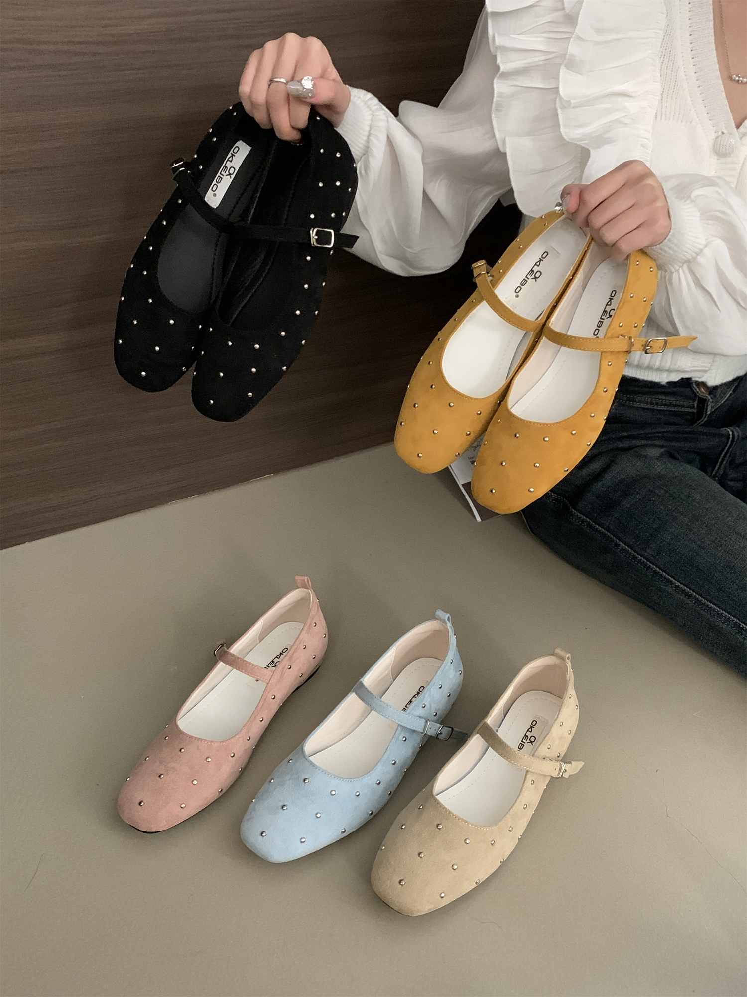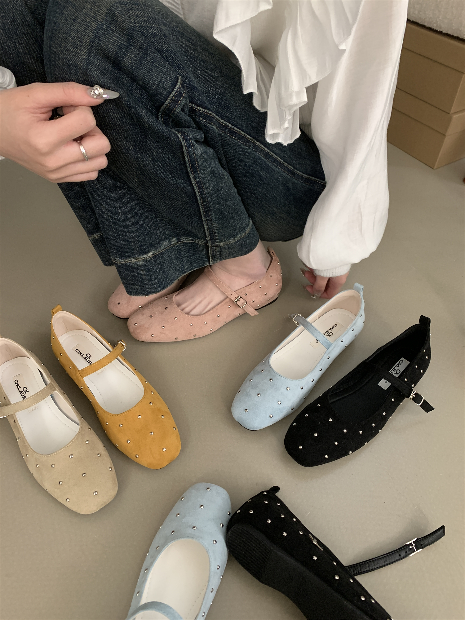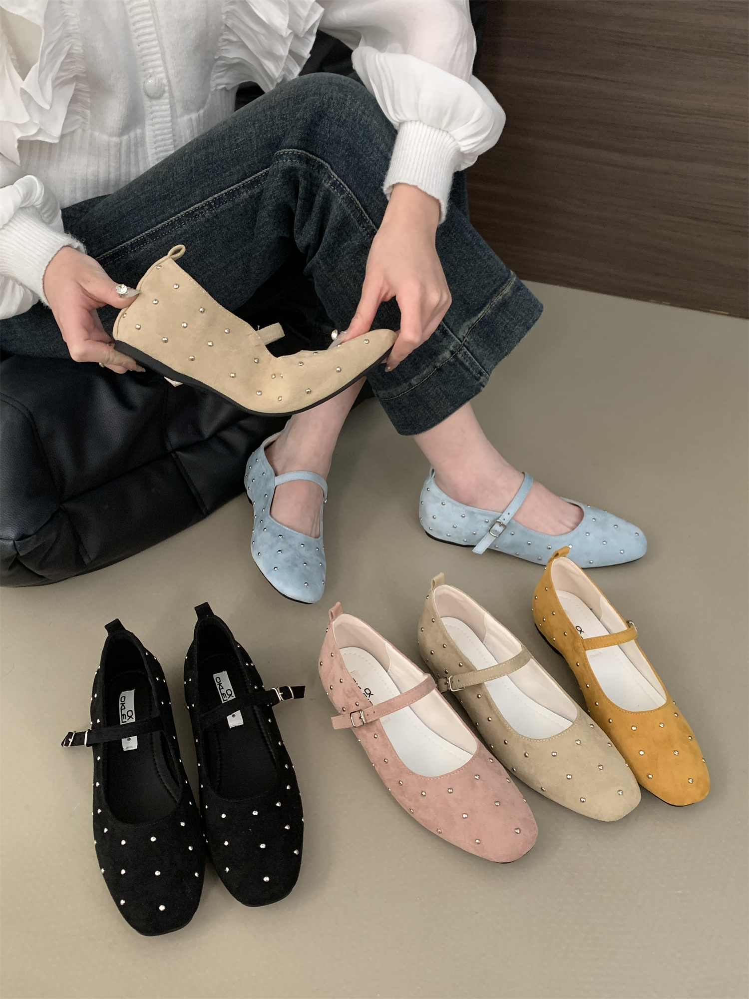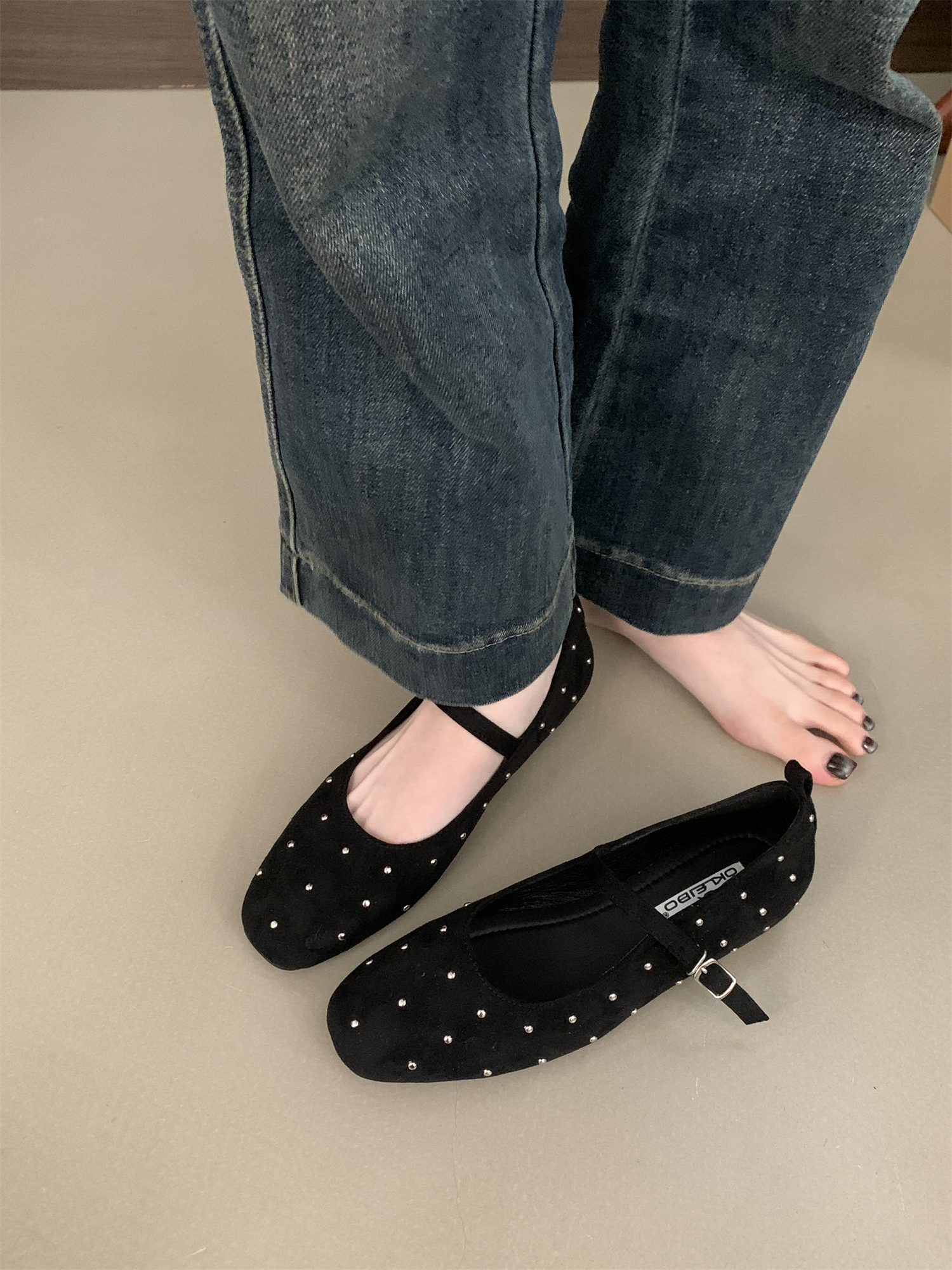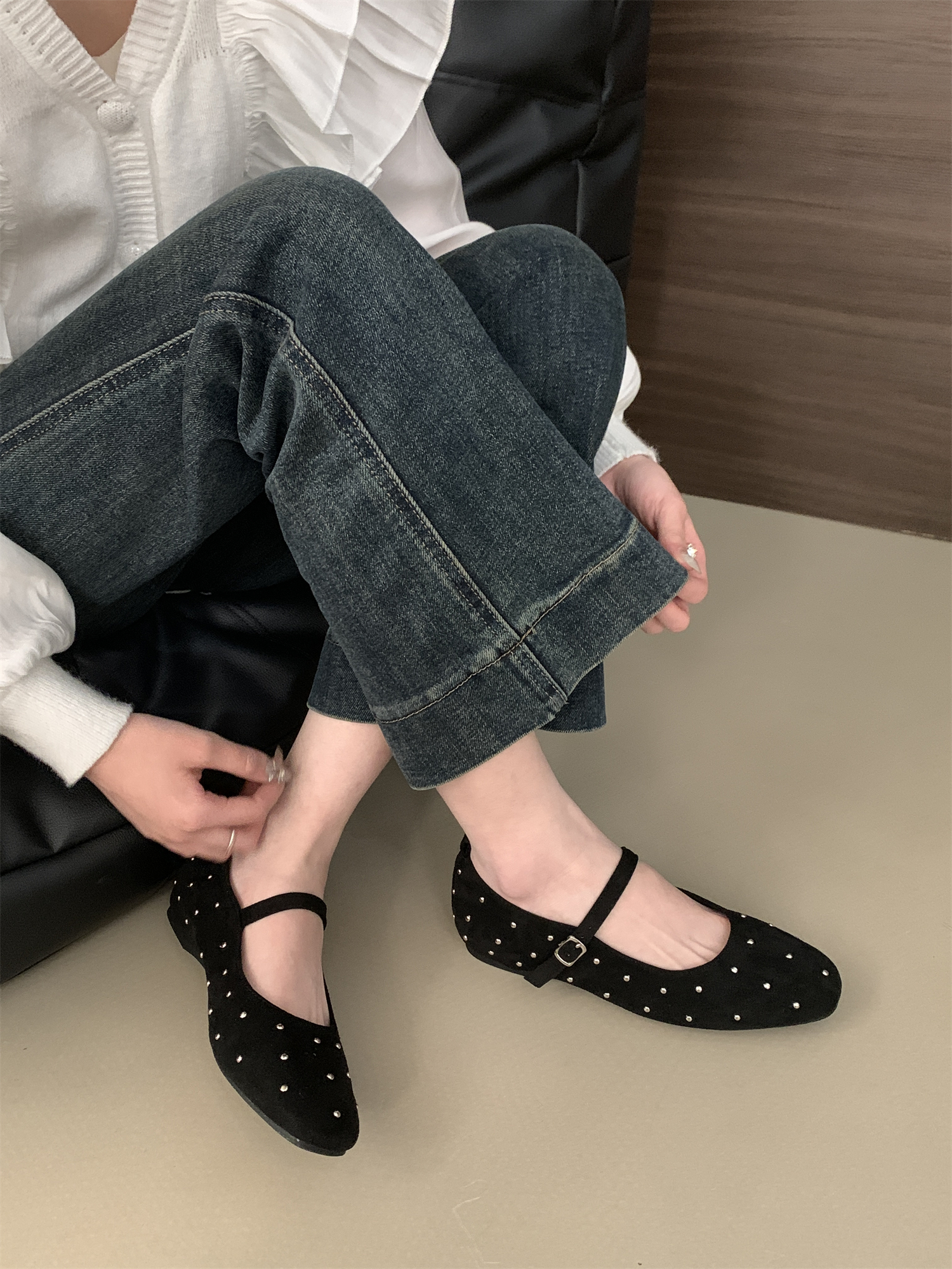 한국식 레트로 벨벳 리벳 올스타 메리 제인 여자 2025 년 초봄 새 한 단어 버클 스트랩 높이 증가 단층 신발스토어 가기