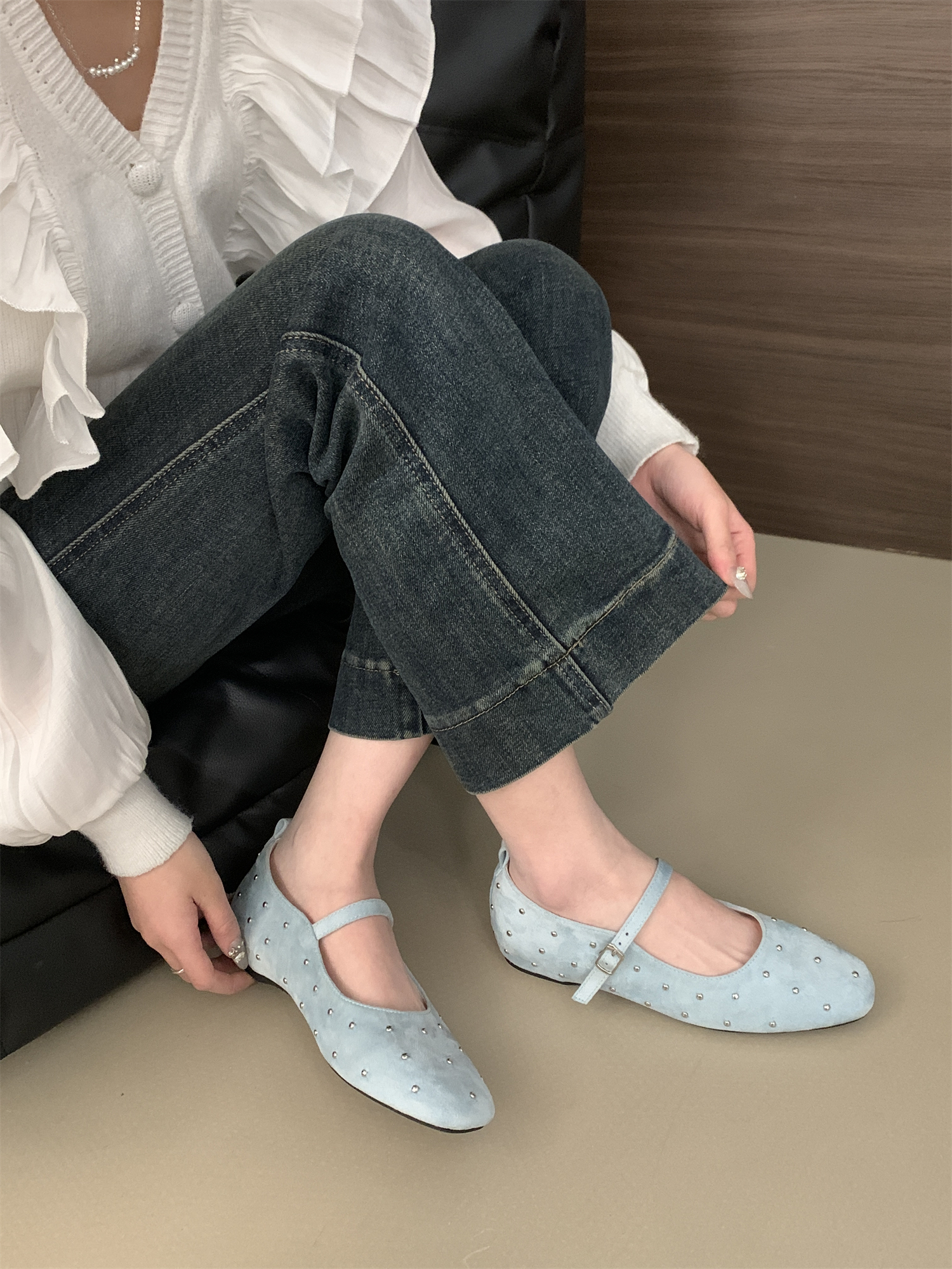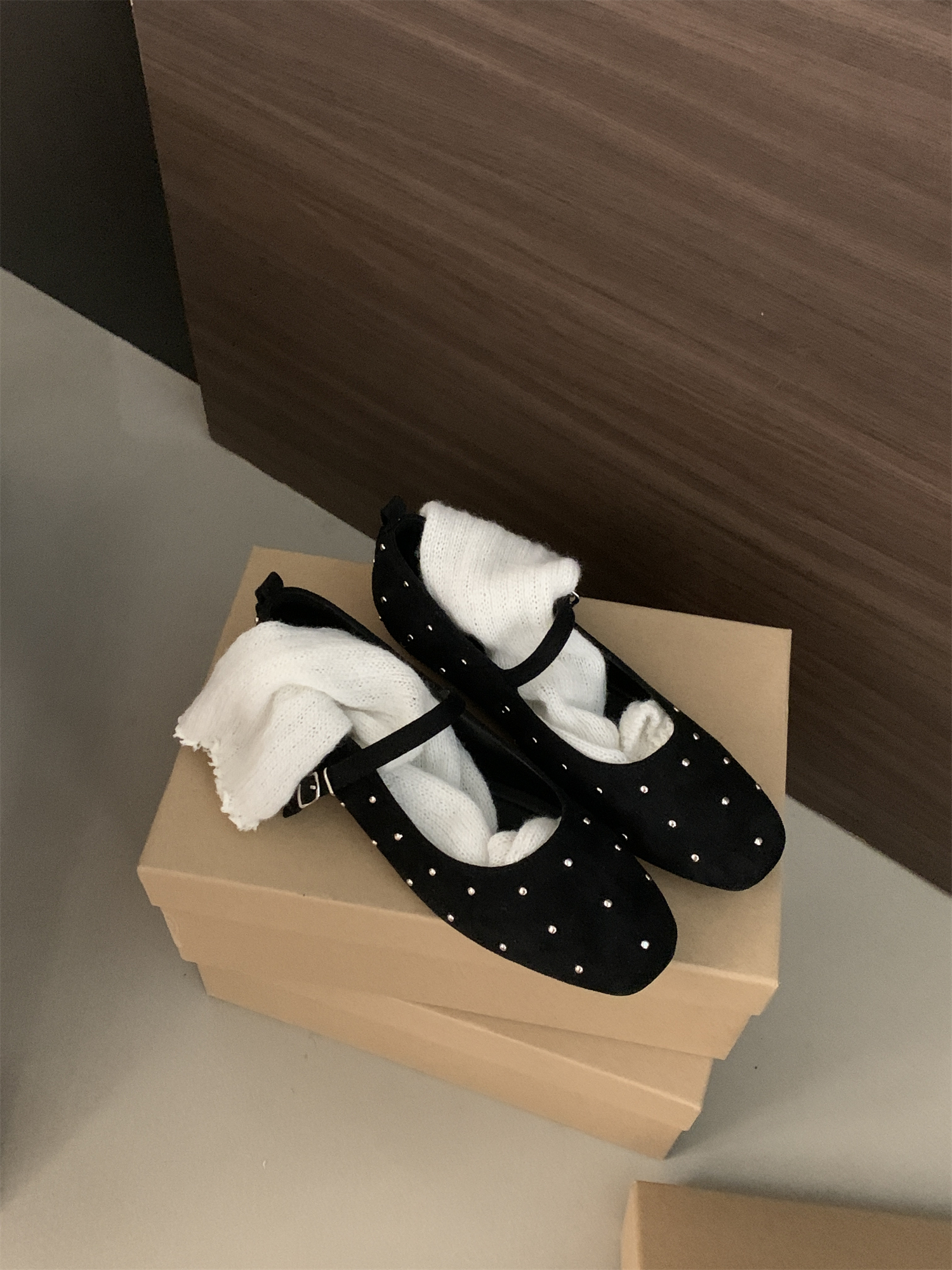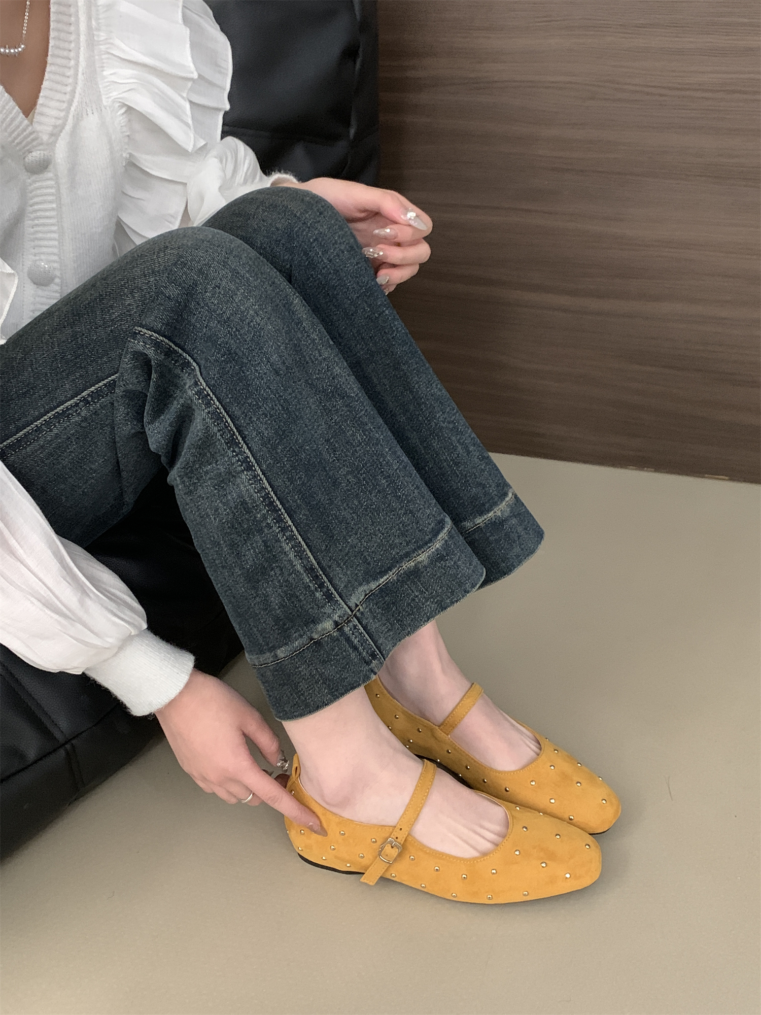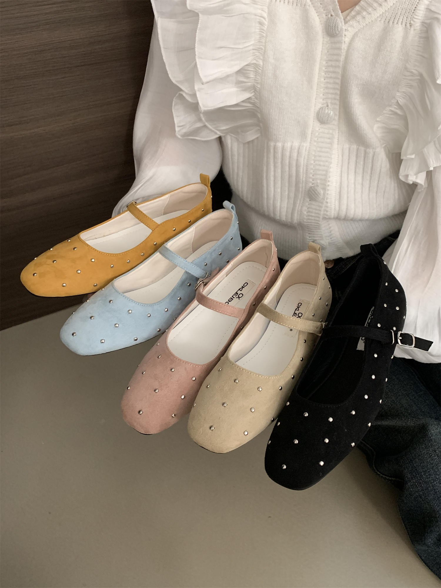 한국식 레트로 벨벳 리벳 올스타 메리 제인 여자 2025 년 초봄 새 한 단어 버클 스트랩 높이 증가 단층 신발스토어 가기