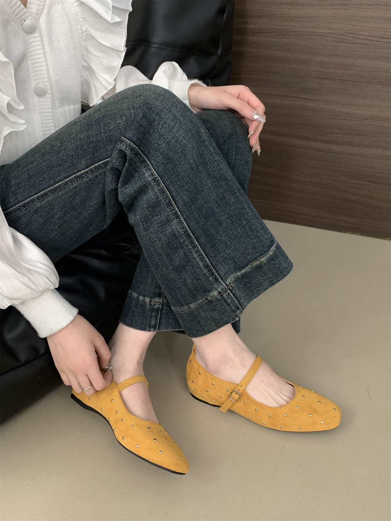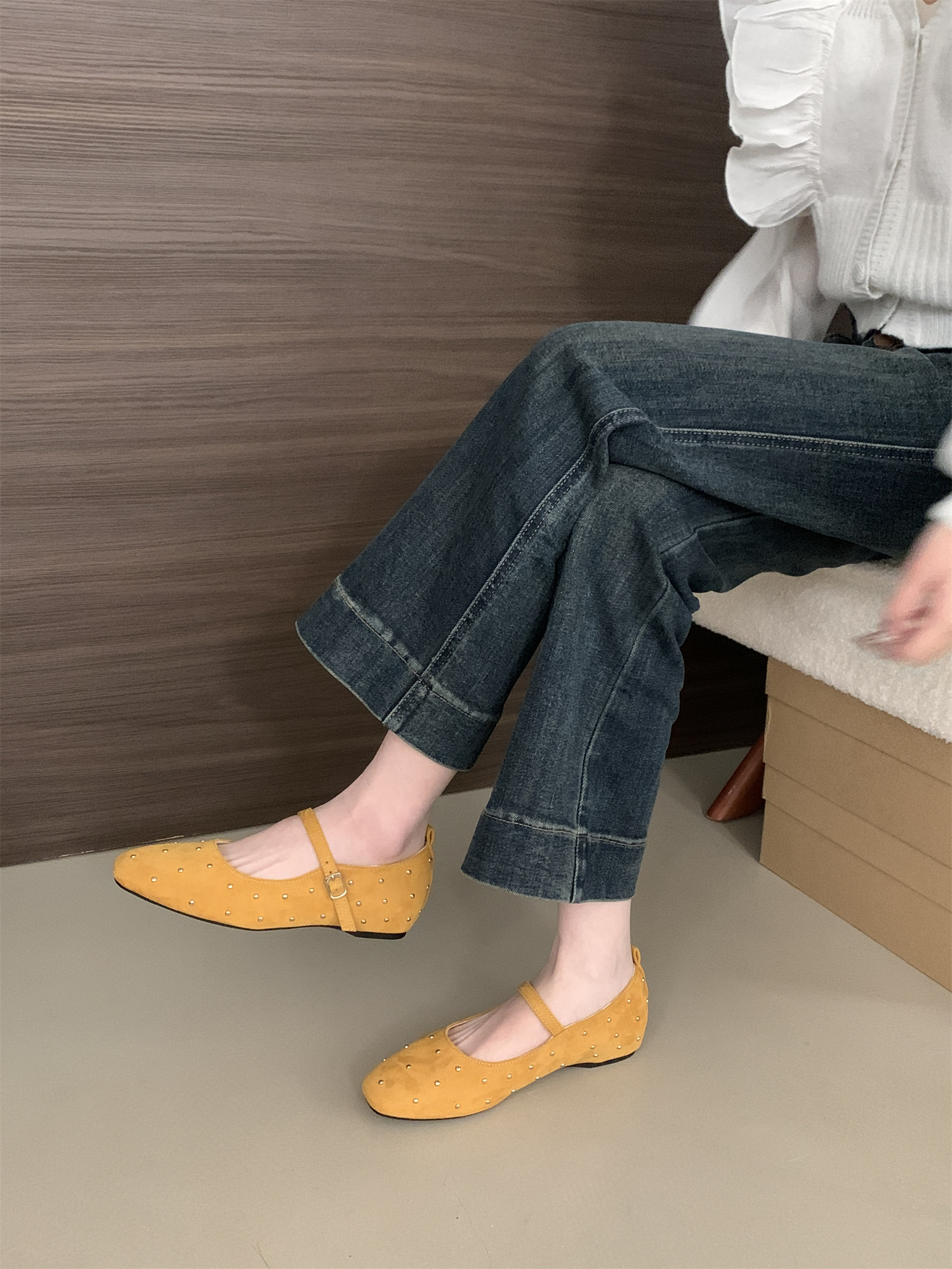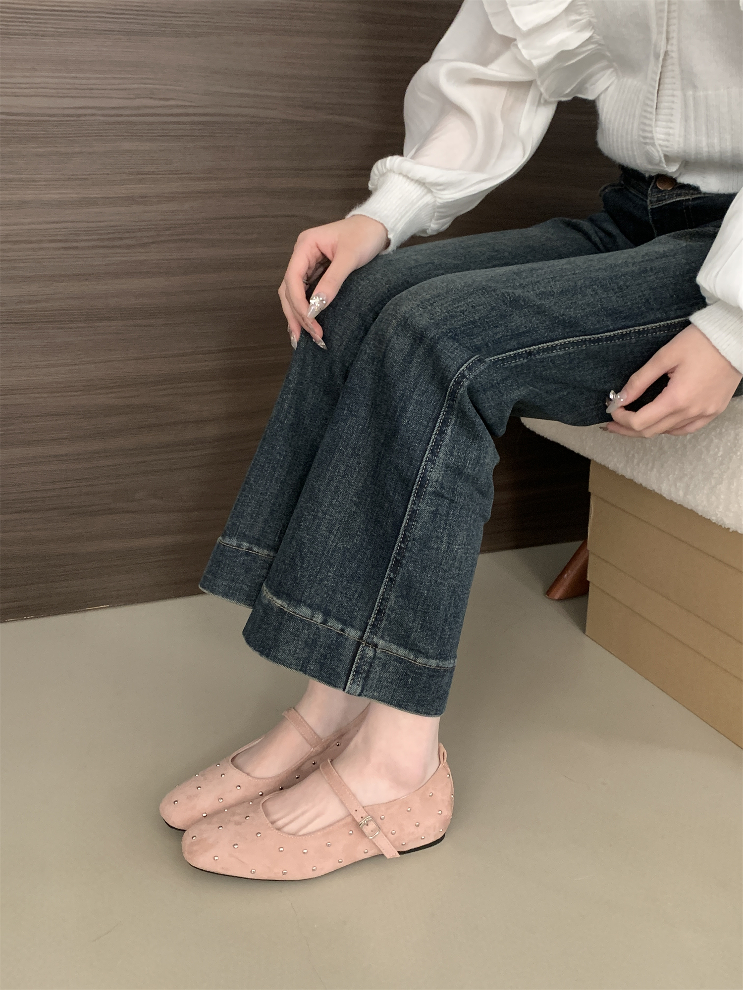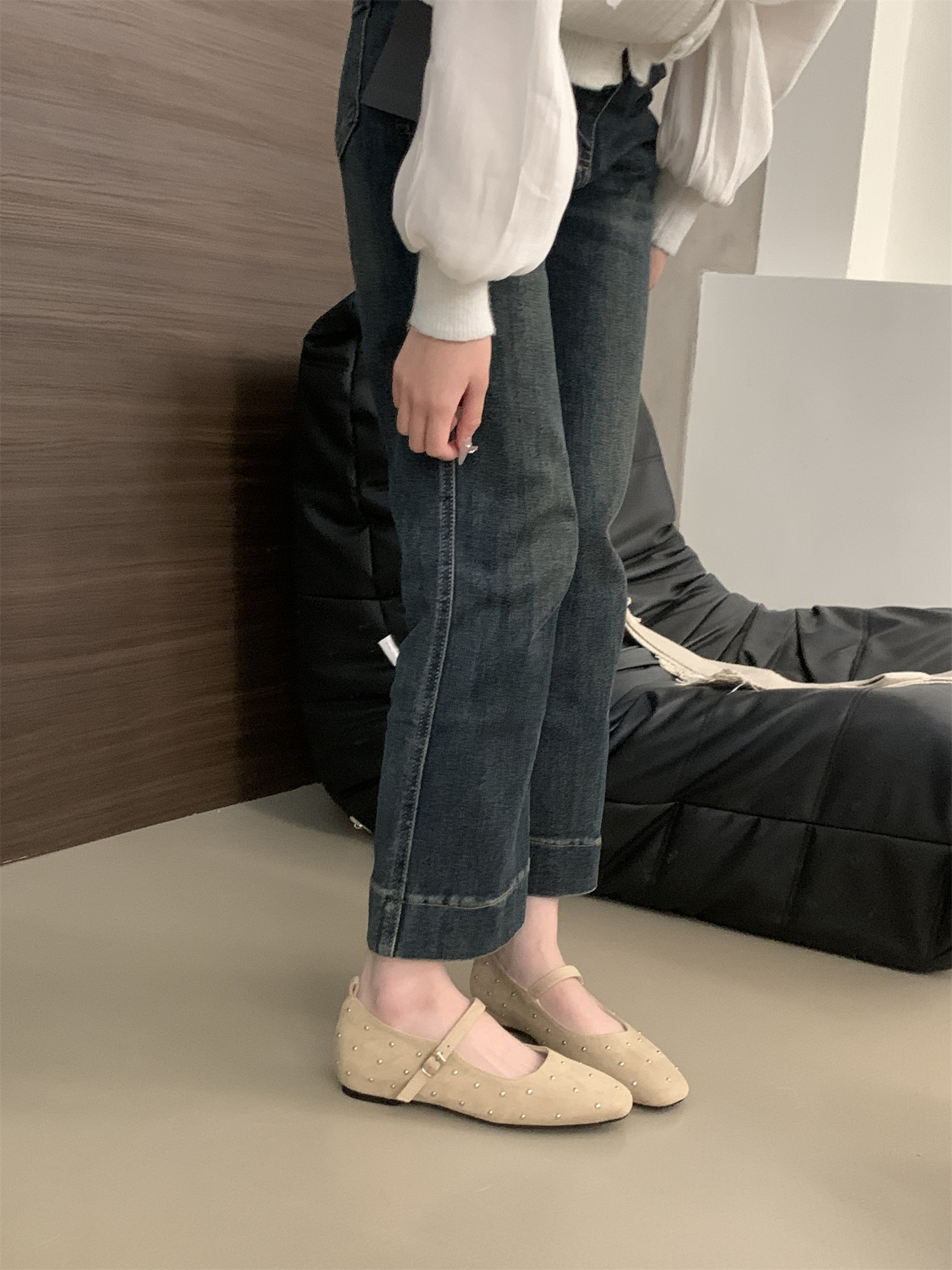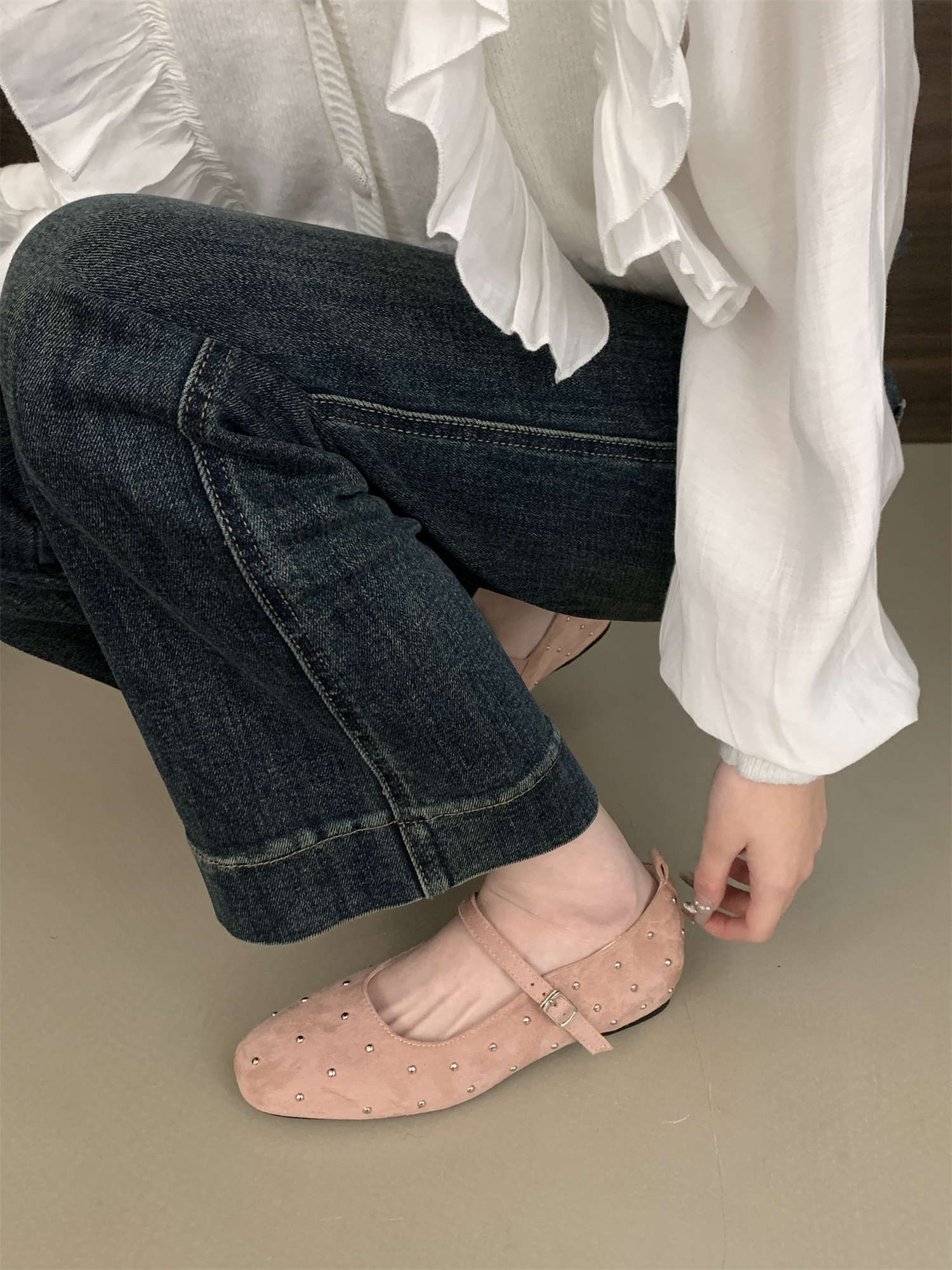 한국식 레트로 벨벳 리벳 올스타 메리 제인 여자 2025 년 초봄 새 한 단어 버클 스트랩 높이 증가 단층 신발스토어 가기