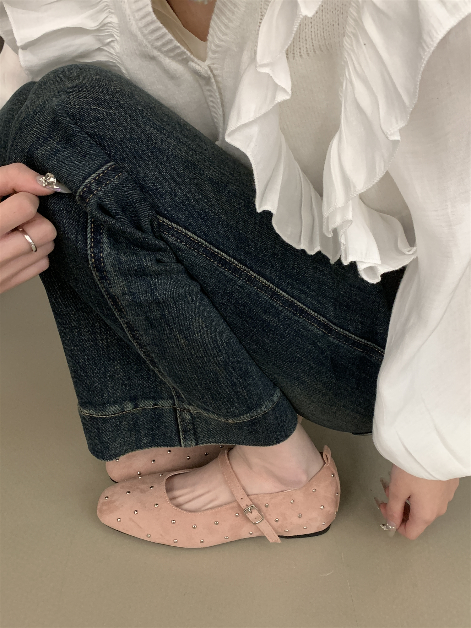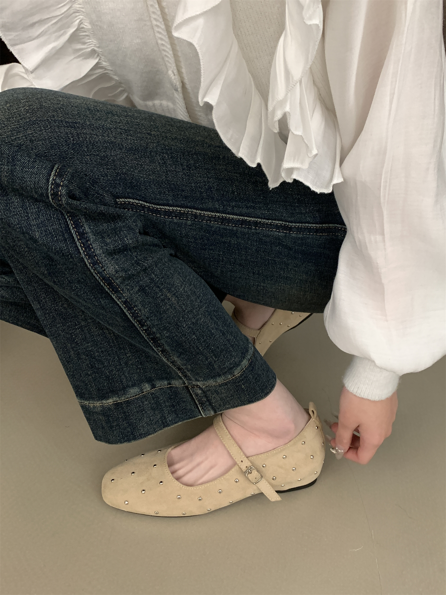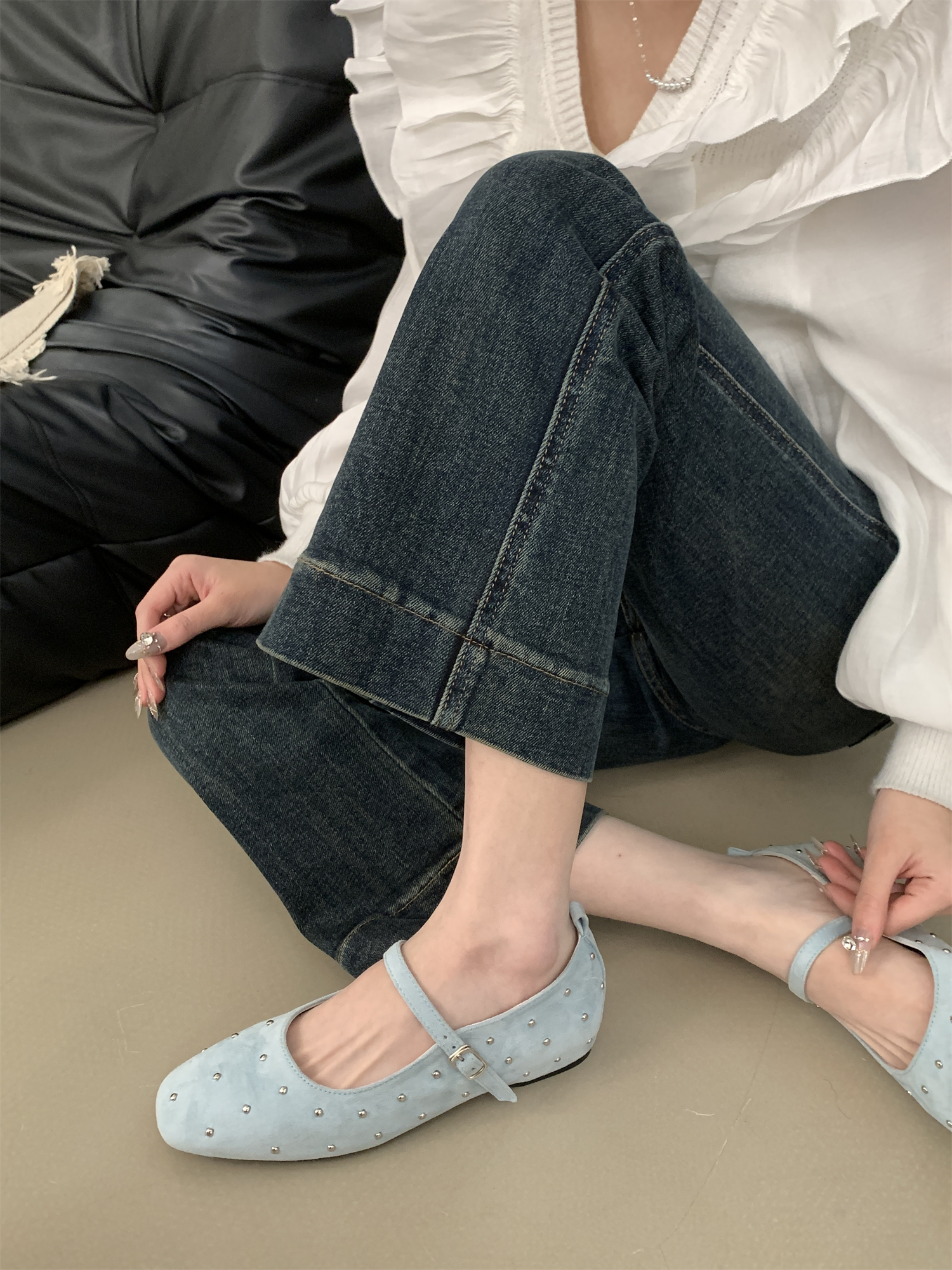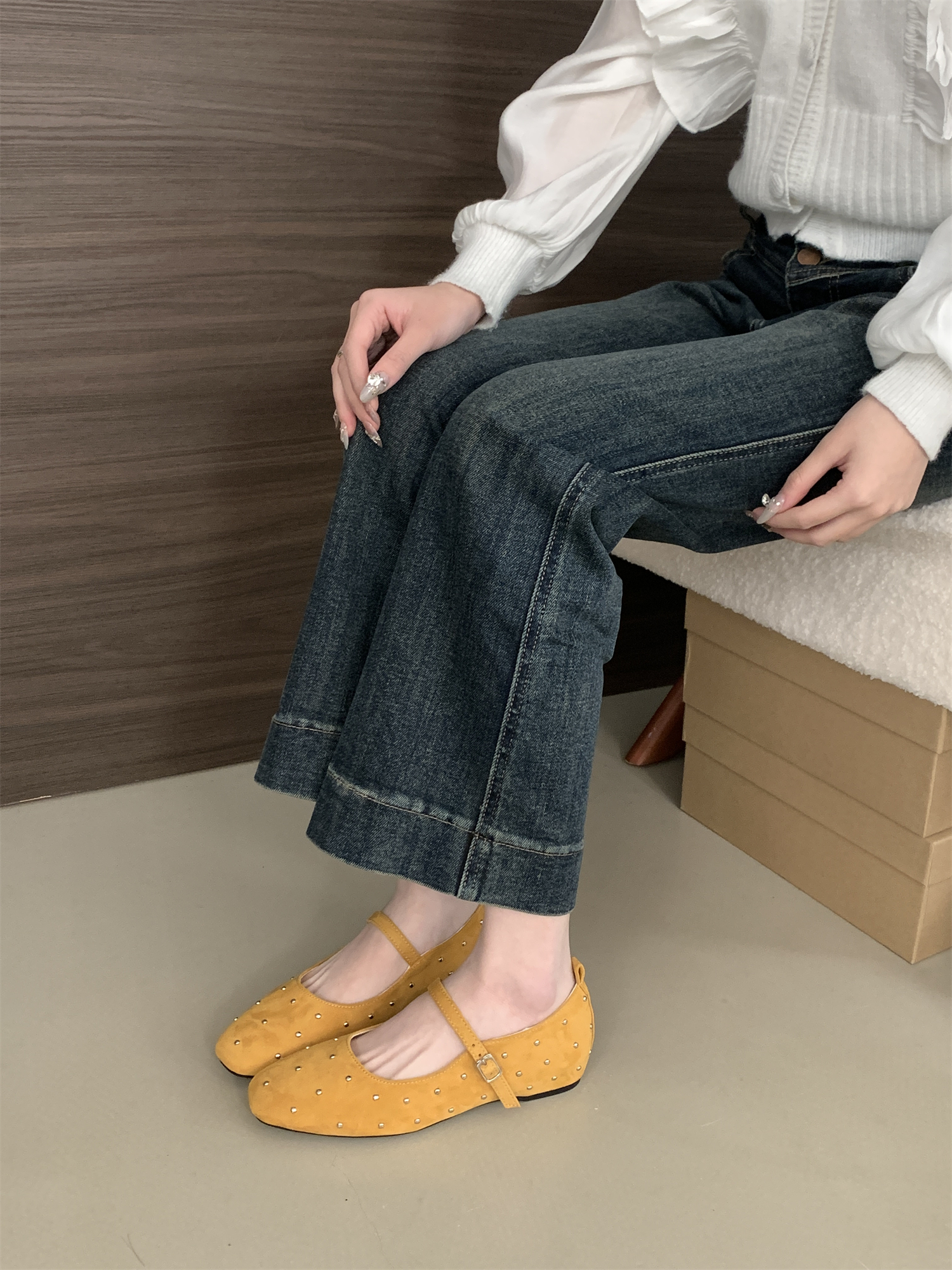 한국식 레트로 벨벳 리벳 올스타 메리 제인 여자 2025 년 초봄 새 한 단어 버클 스트랩 높이 증가 단층 신발스토어 가기