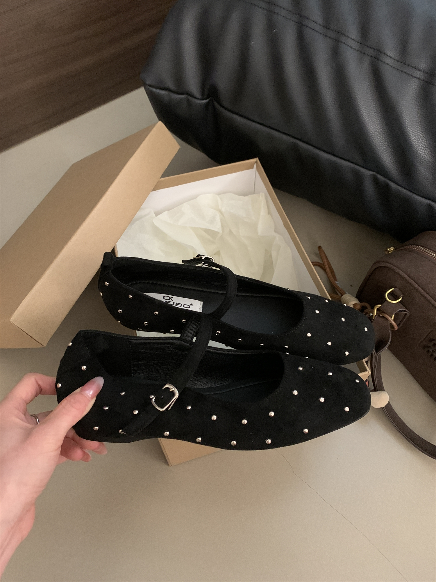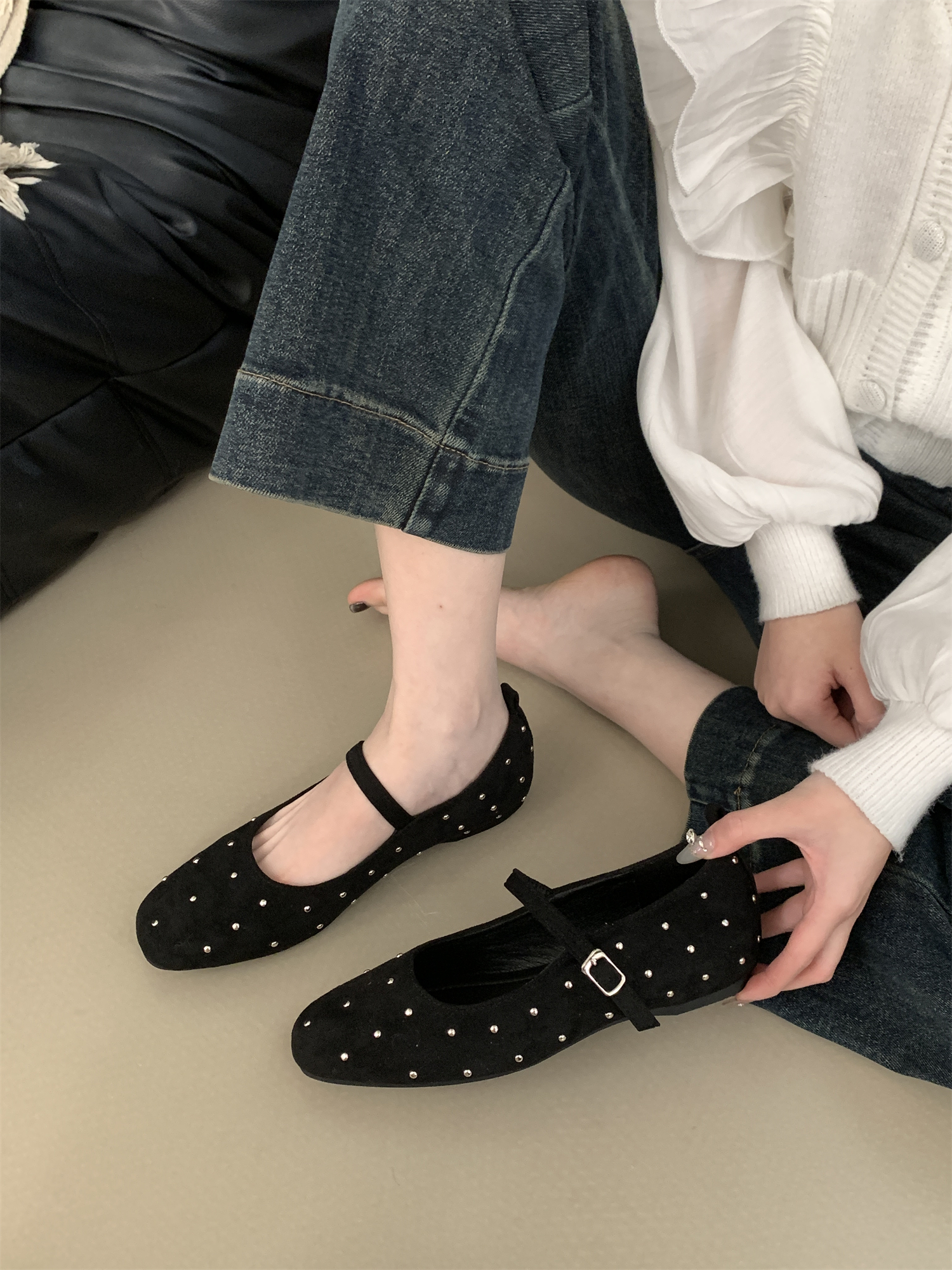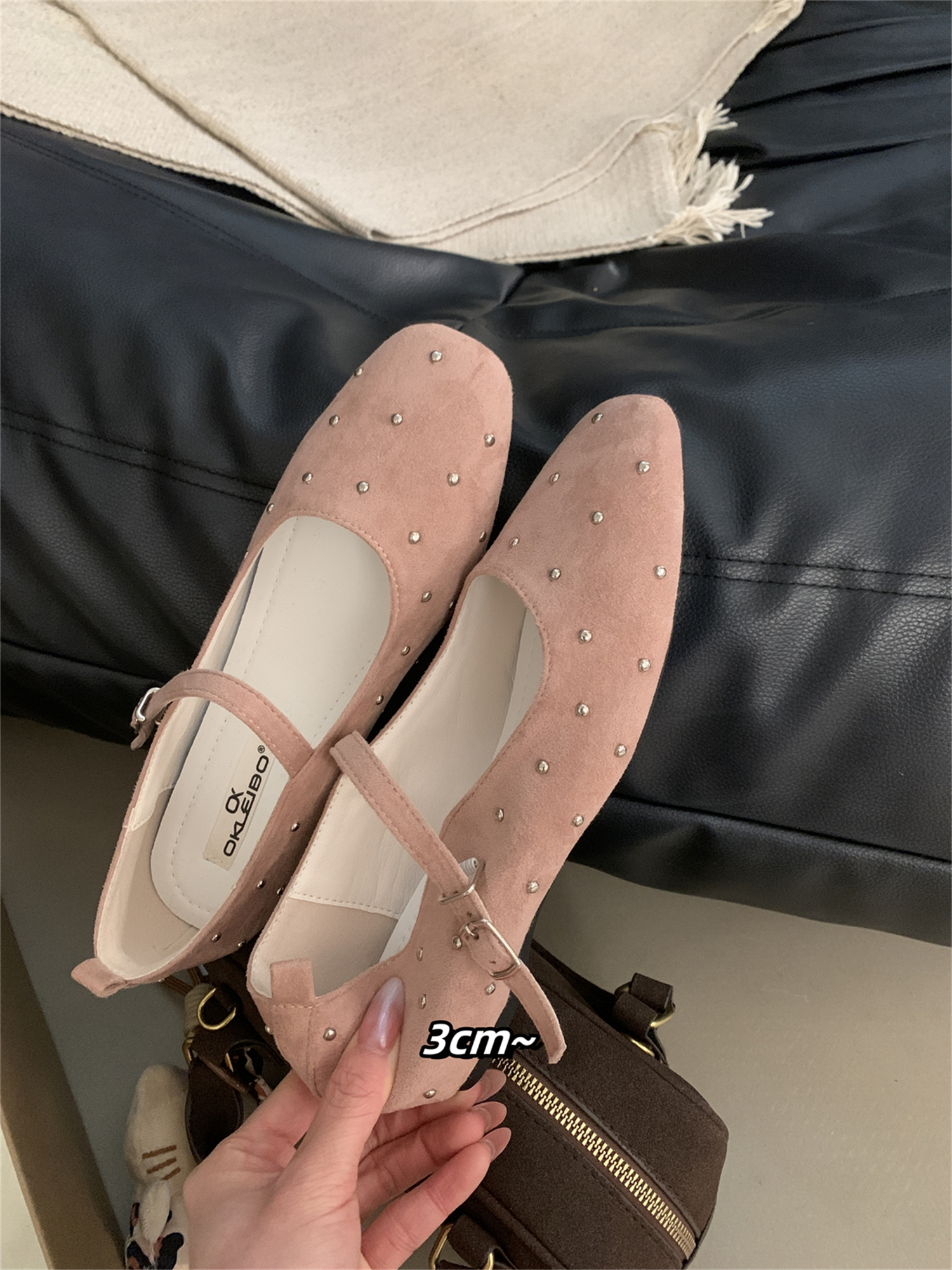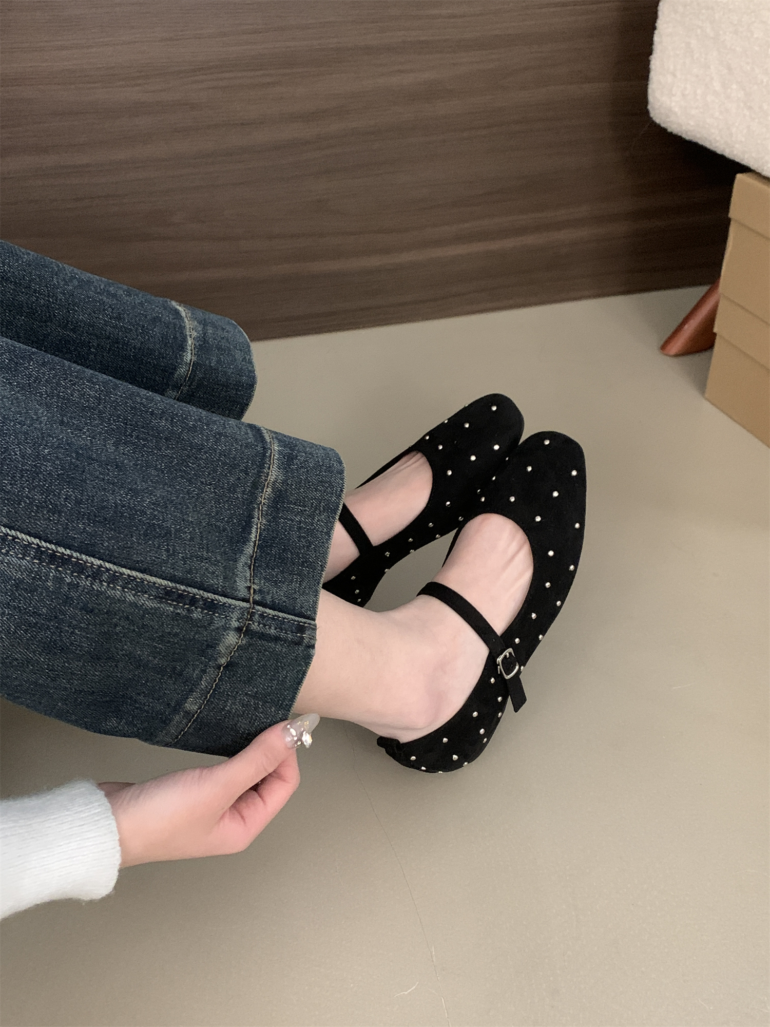 한국식 레트로 벨벳 리벳 올스타 메리 제인 여자 2025 년 초봄 새 한 단어 버클 스트랩 높이 증가 단층 신발