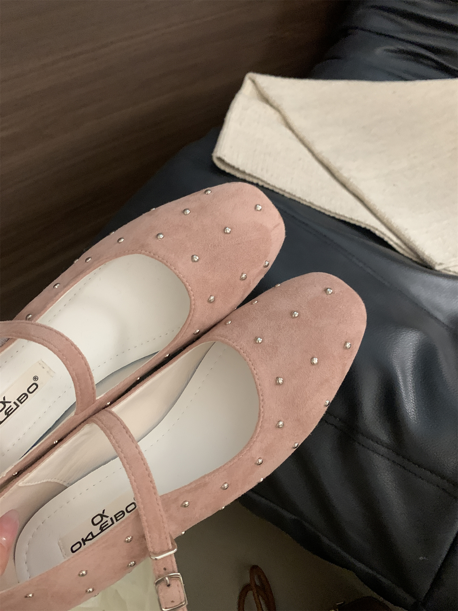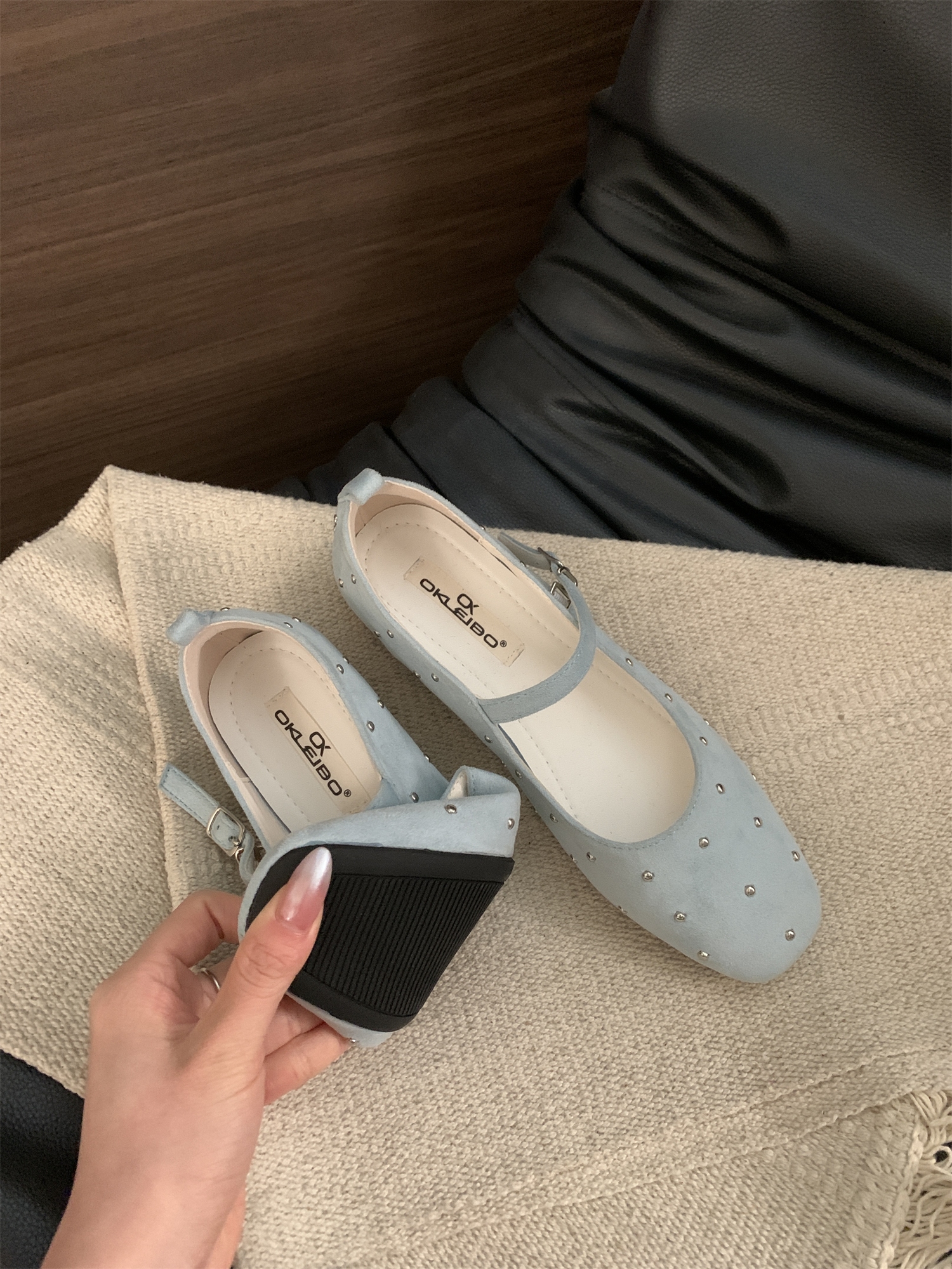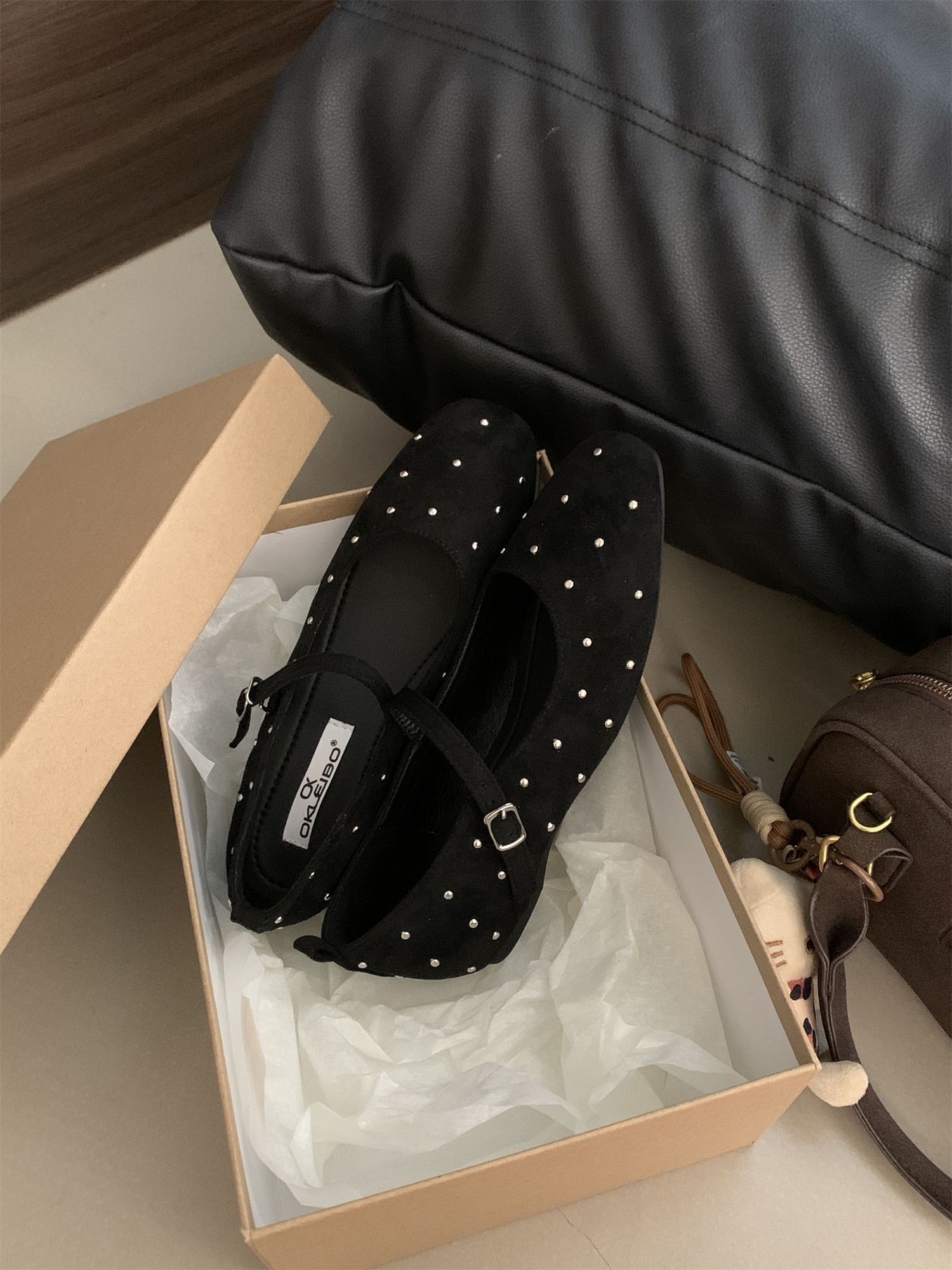 한국식 레트로 벨벳 리벳 올스타 메리 제인 여자 2025 년 초봄 새 한 단어 버클 스트랩 높이 증가 단층 신발