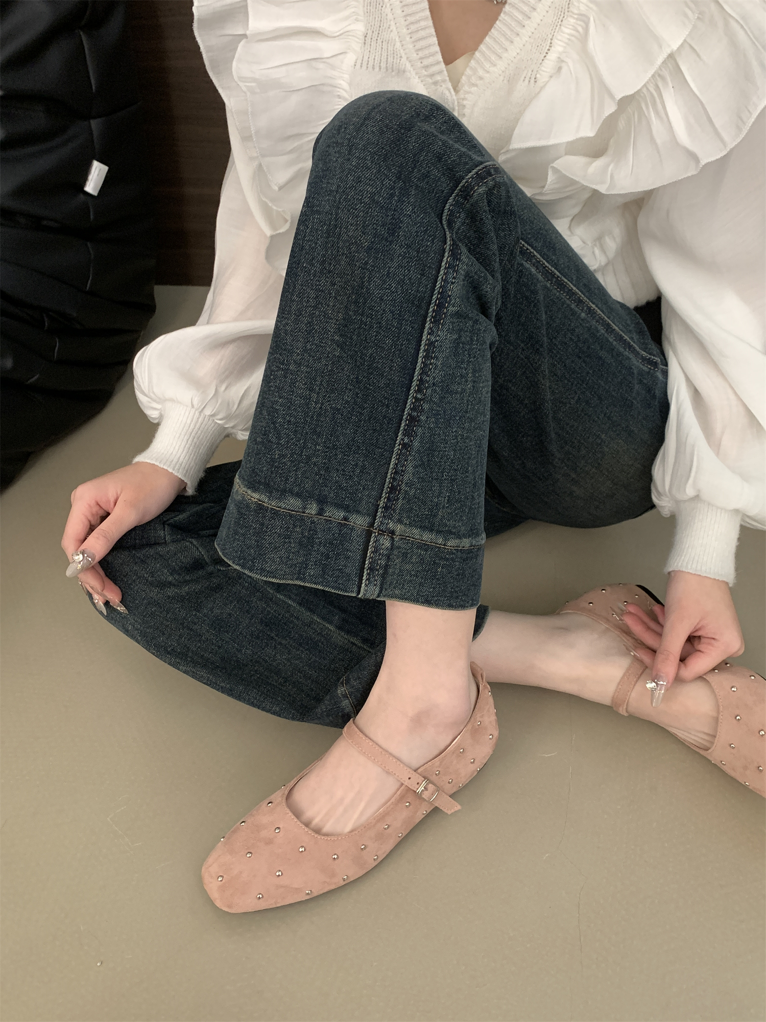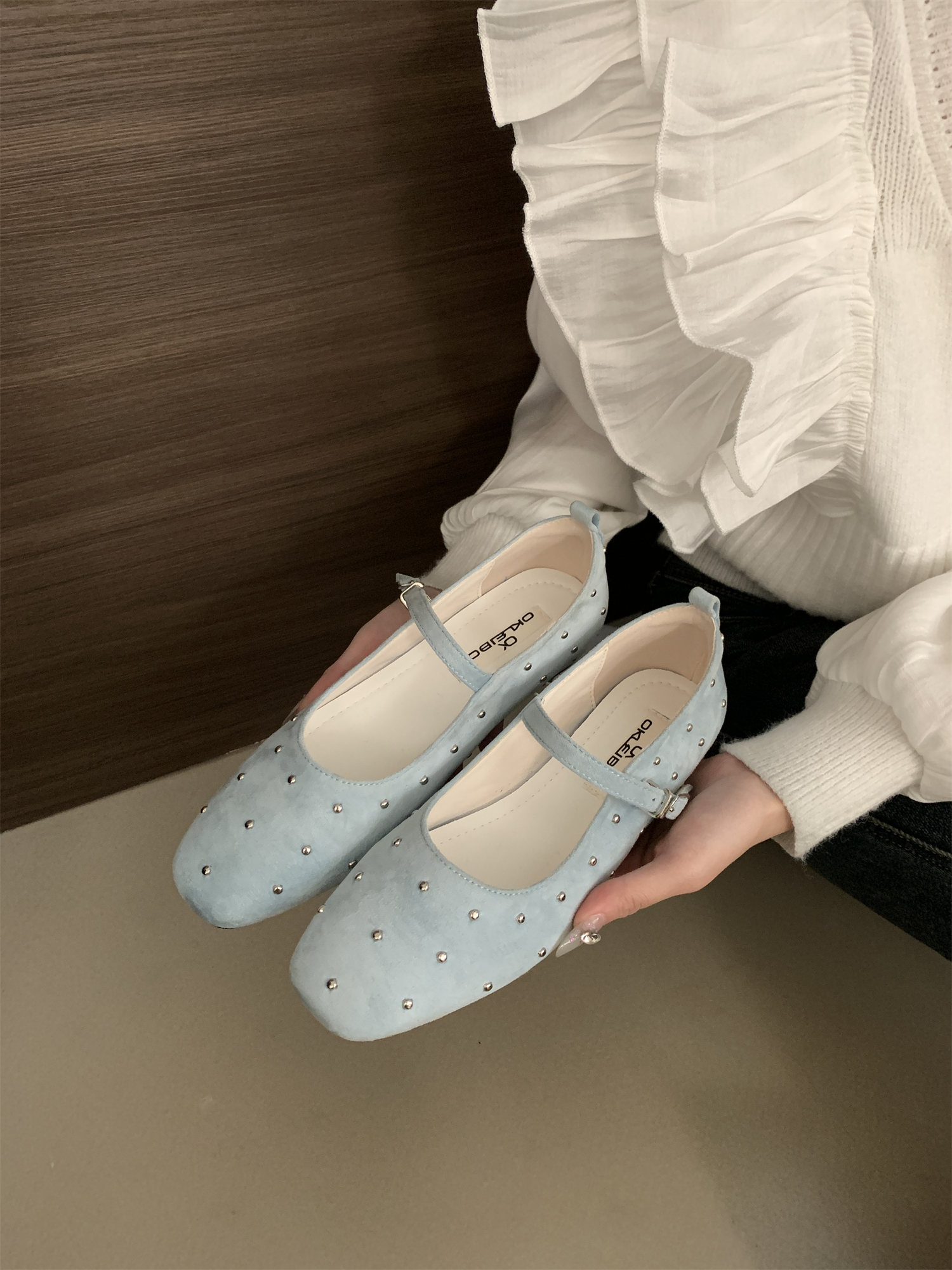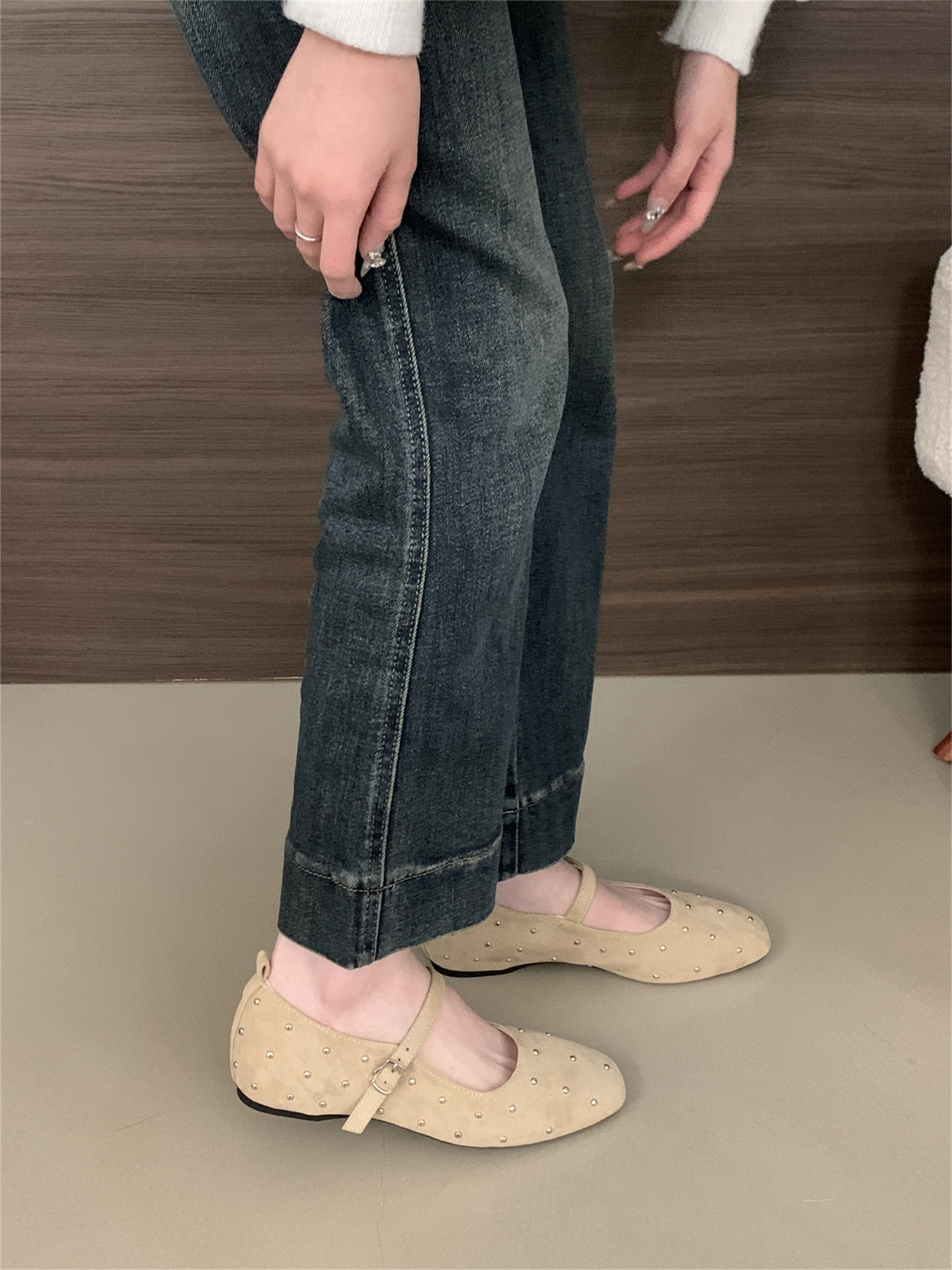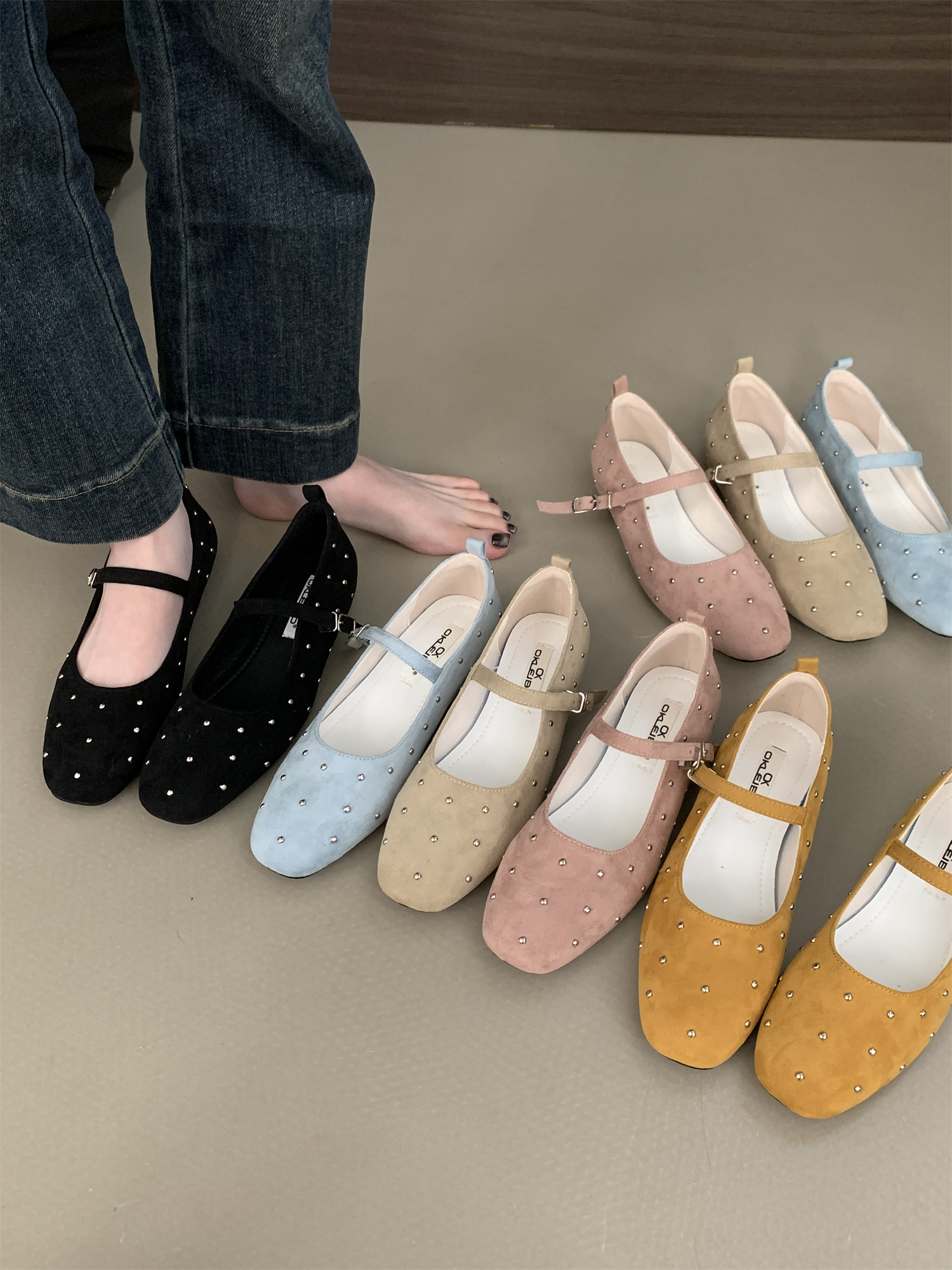 한국식 레트로 벨벳 리벳 올스타 메리 제인 여자 2025 년 초봄 새 한 단어 버클 스트랩 높이 증가 단층 신발