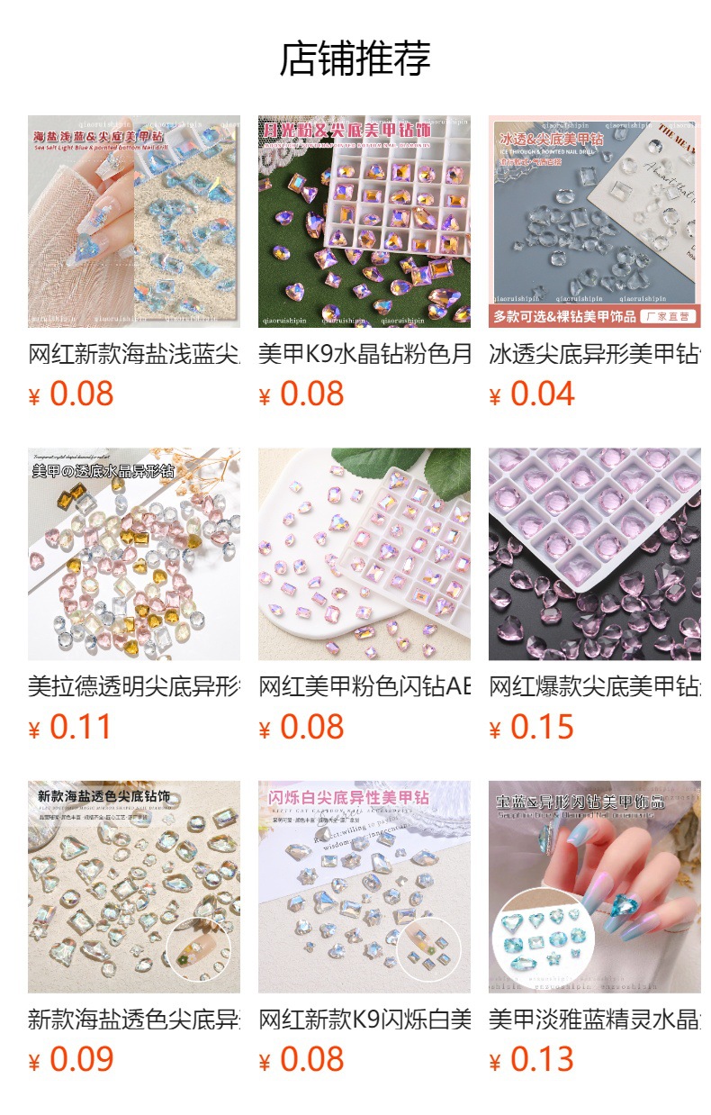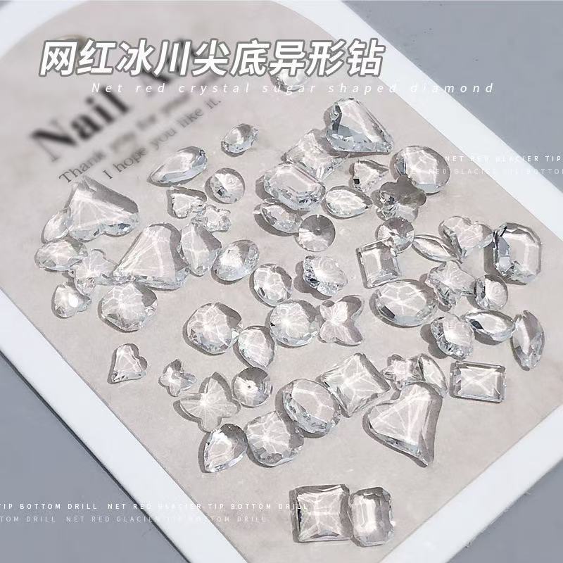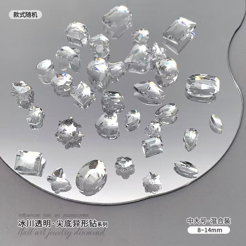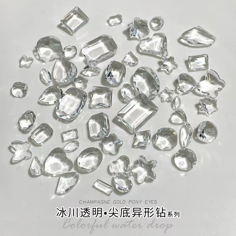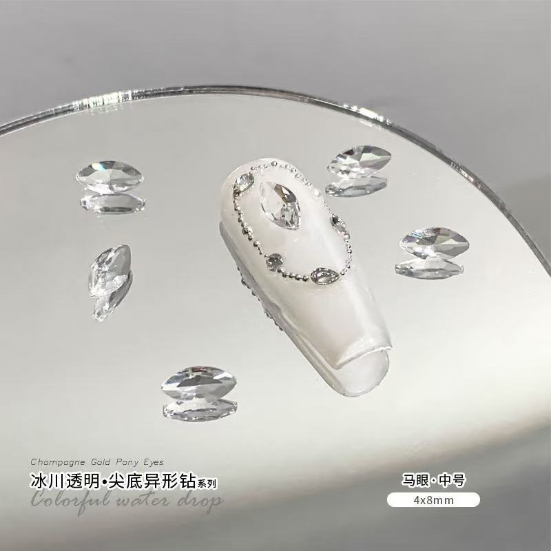 빙하 화이트 포인팅 다이아몬드 네일 아트 쥬얼리 투명 크리스탈 네일 알몸 다이아몬드 락 설탕 Diy 네일 액세서리 도매스토어 가기