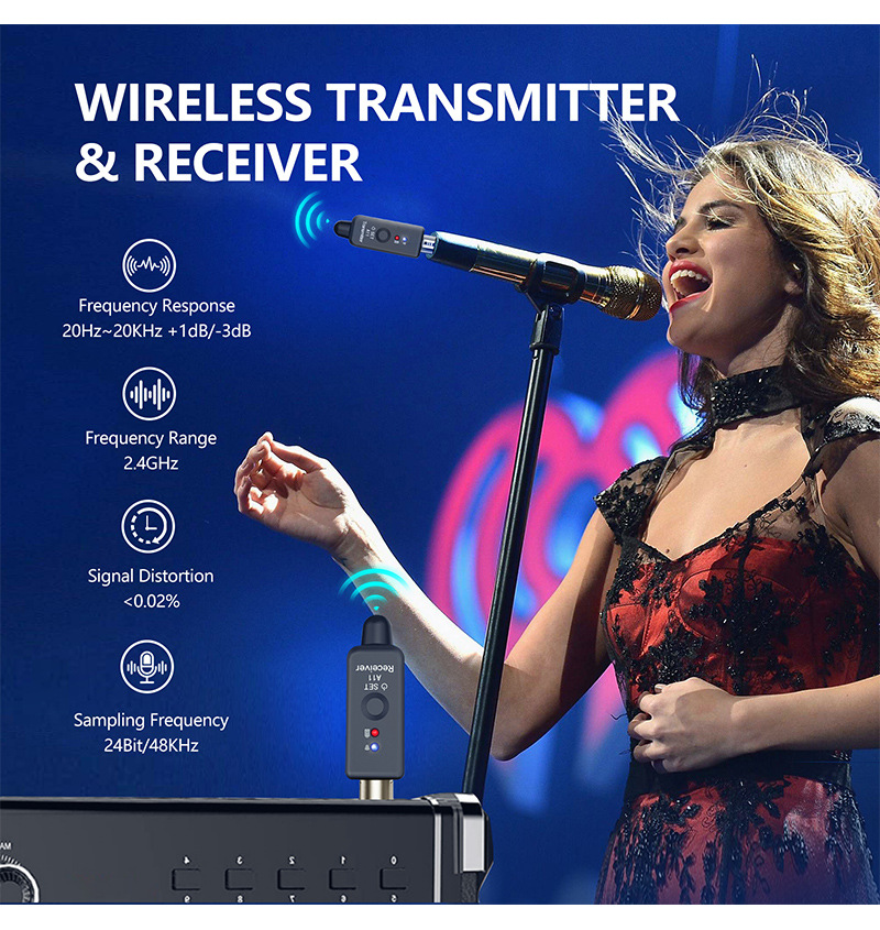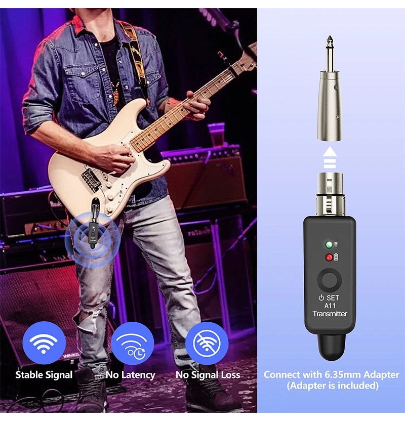 A11 1 대 2 무선 마이크 수류탄 송신기 오디오 전송 수신기 악기 오디오 트랜시버