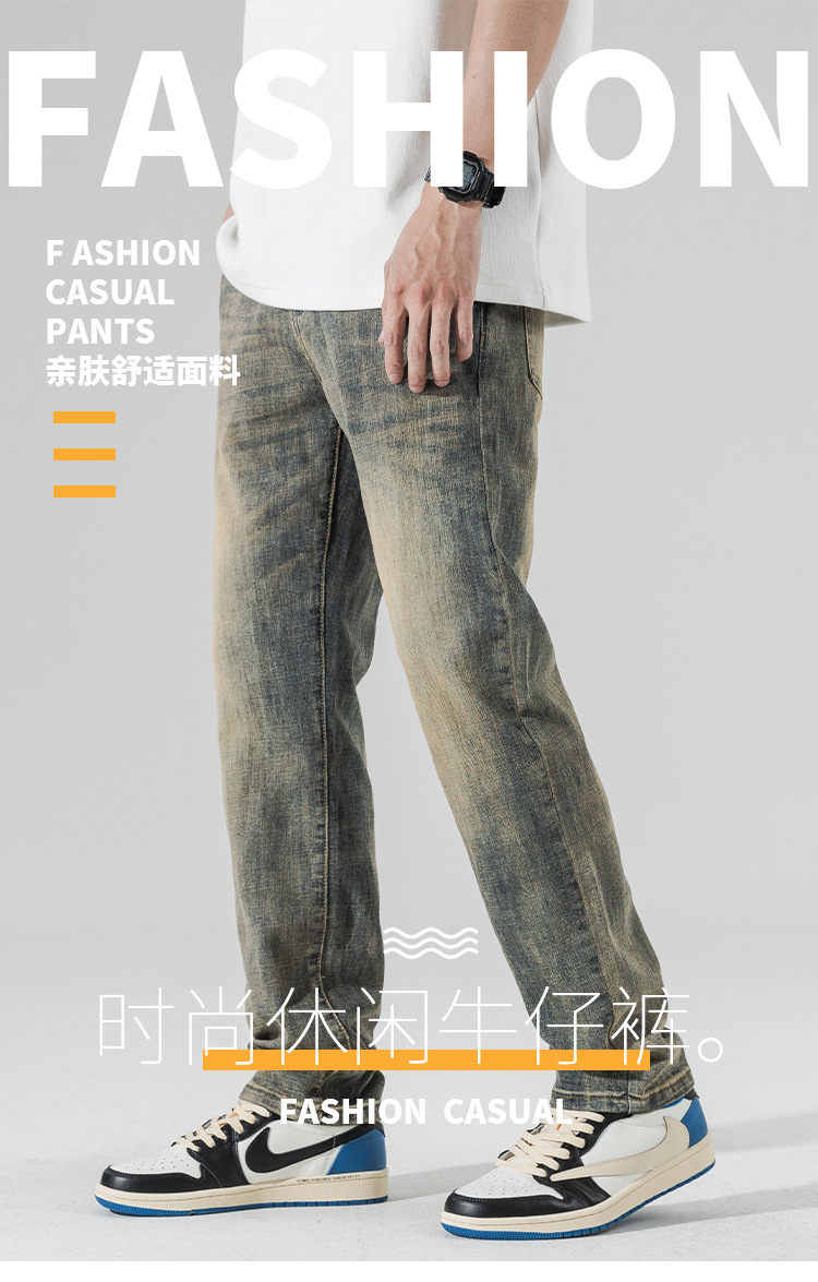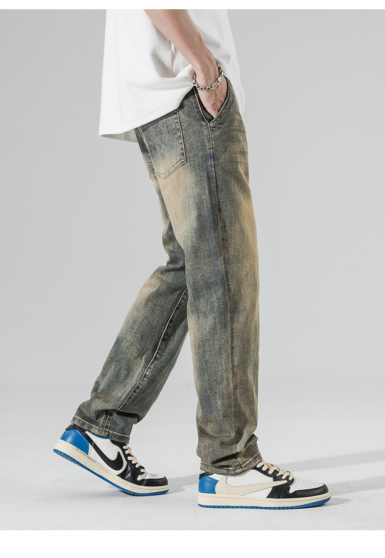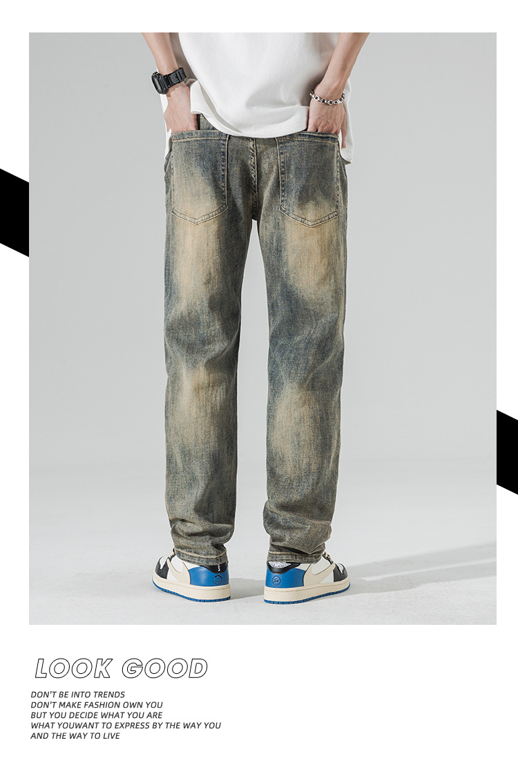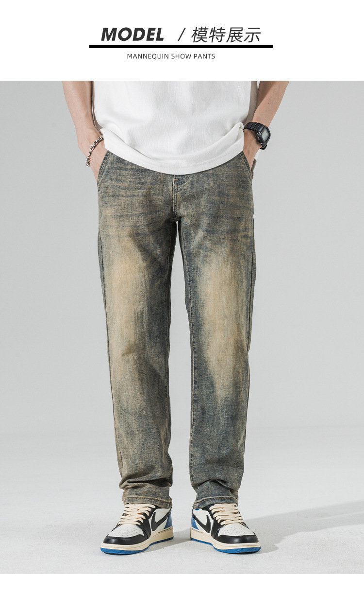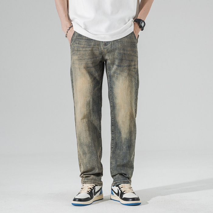 아메리칸 스타일 하이 스트리트 스트레이트 청바지 남성 청소년 트렌디 브랜드 봄과 가을 새로운 슬림 핏 캐주얼 긴 바지 트렌디 남성용 바지스토어 가기