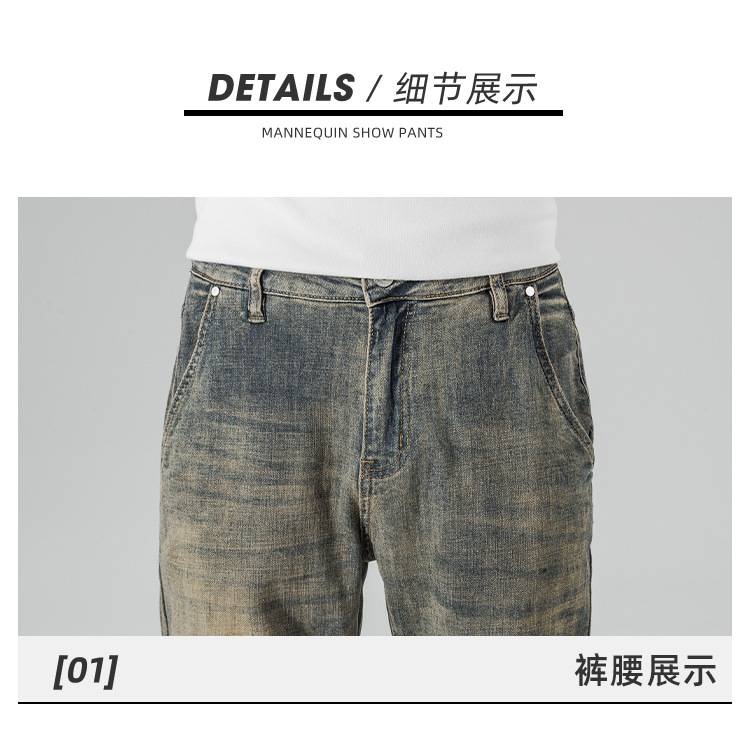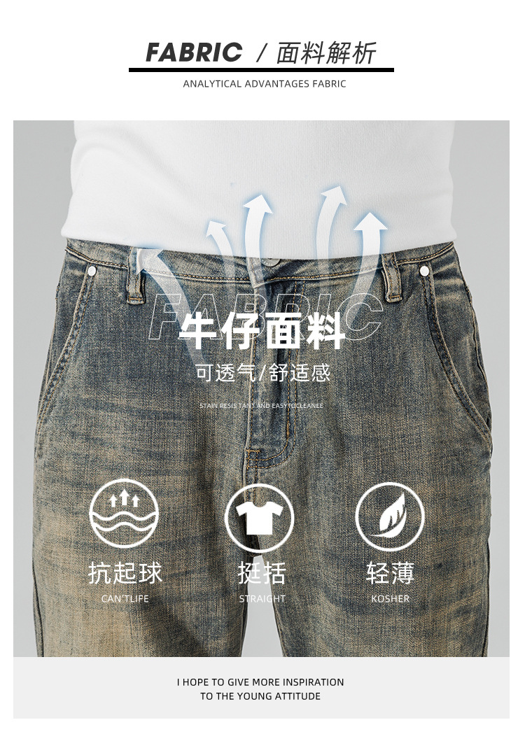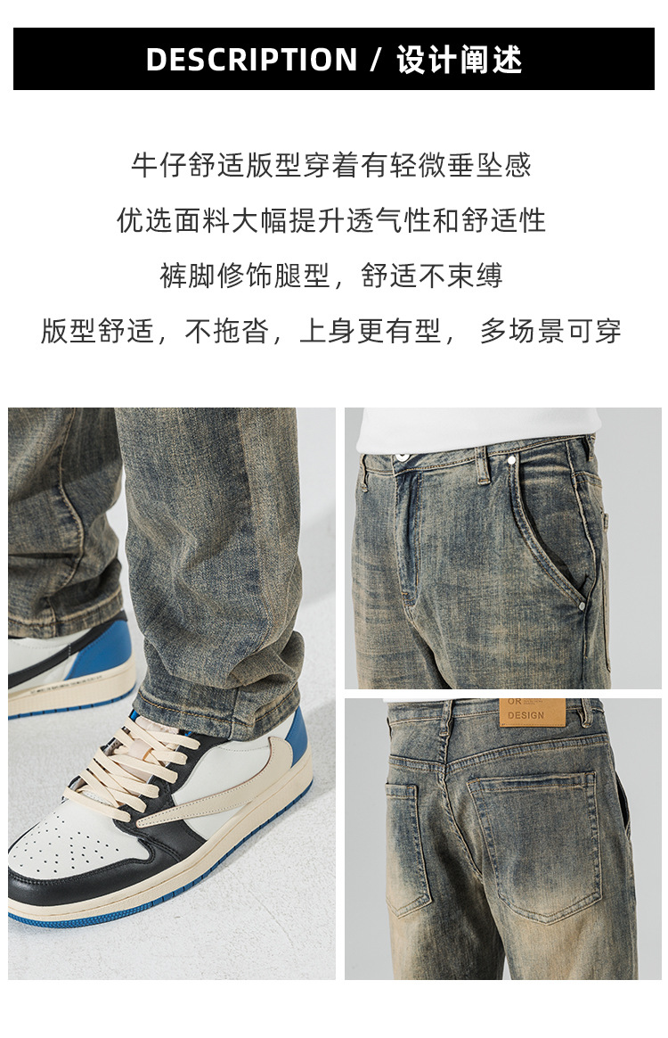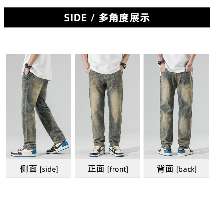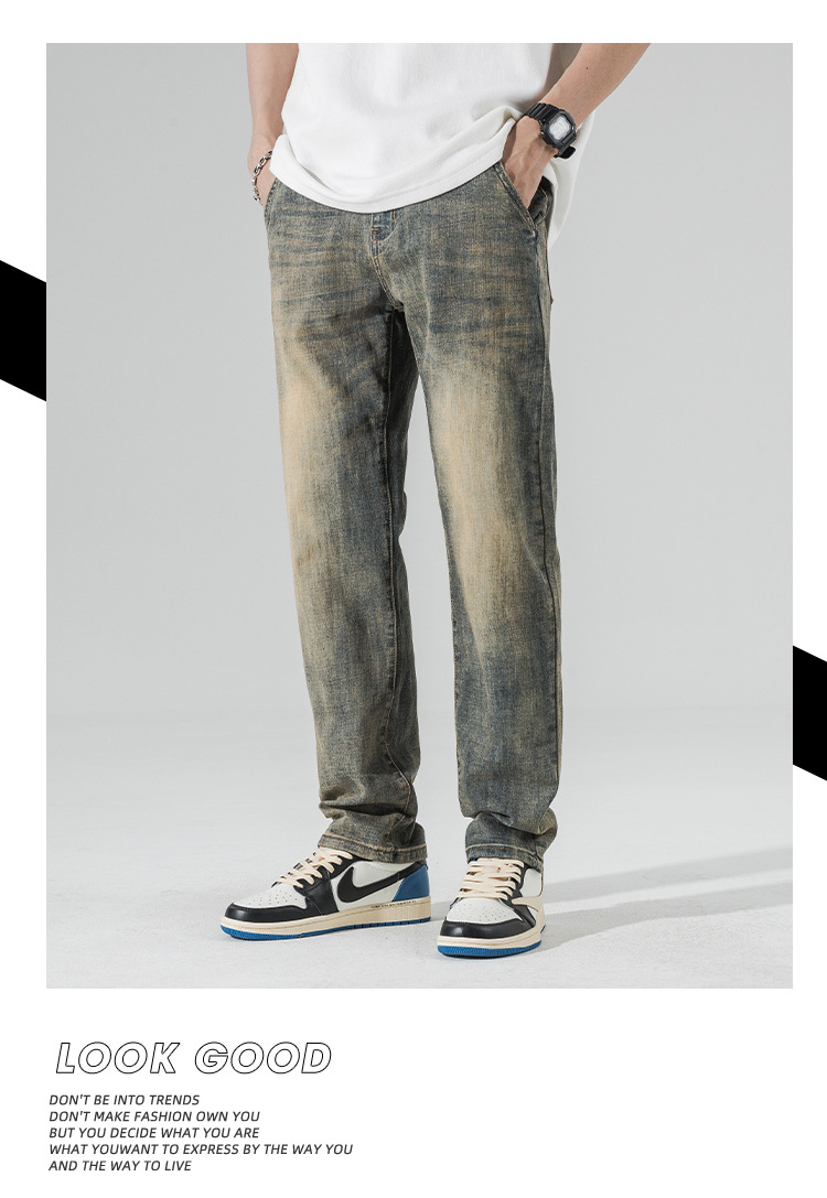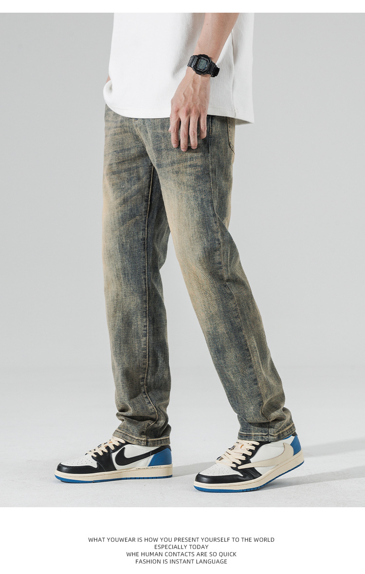 아메리칸 스타일 하이 스트리트 스트레이트 청바지 남성 청소년 트렌디 브랜드 봄과 가을 새로운 슬림 핏 캐주얼 긴 바지 트렌디 남성용 바지스토어 가기
