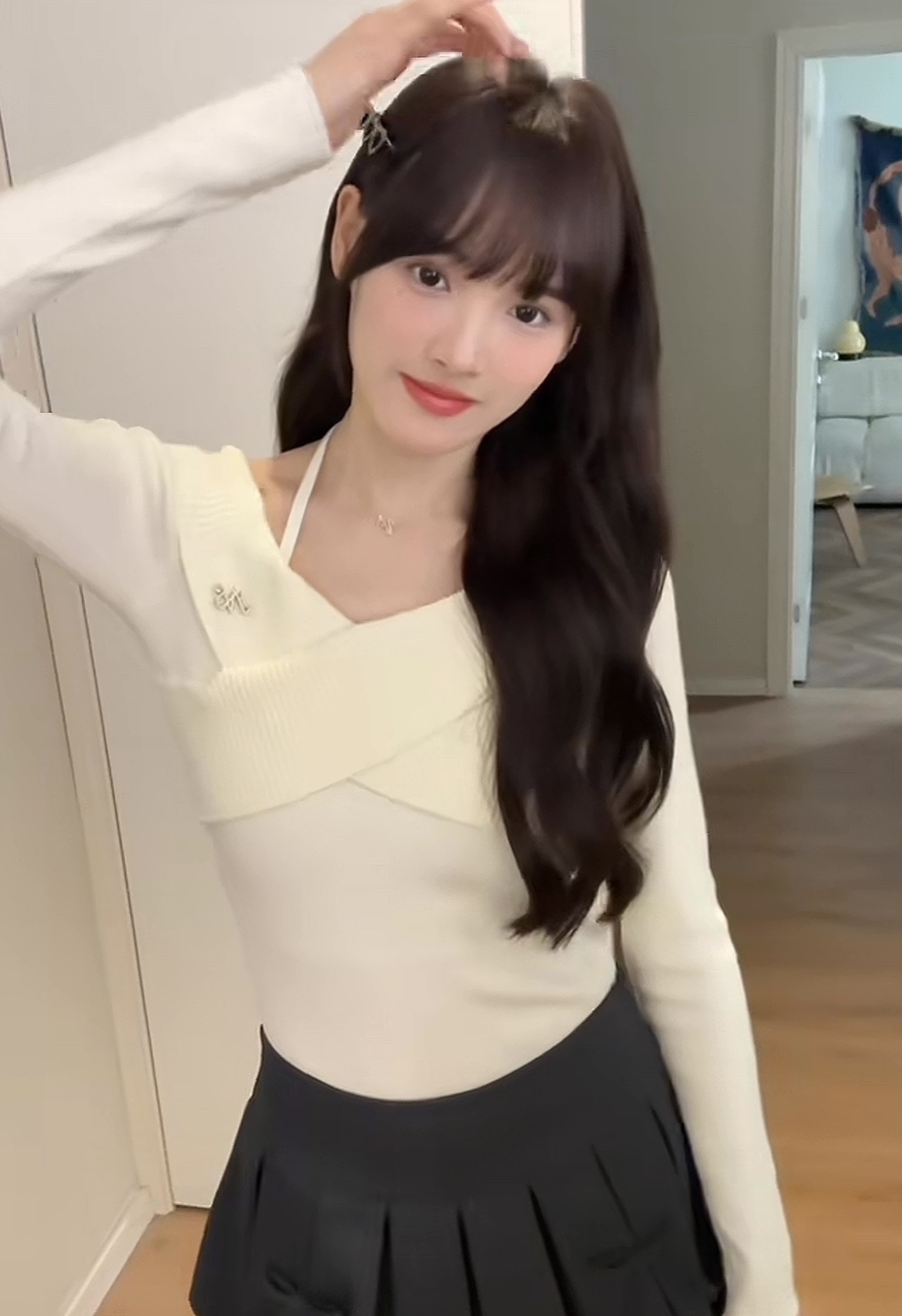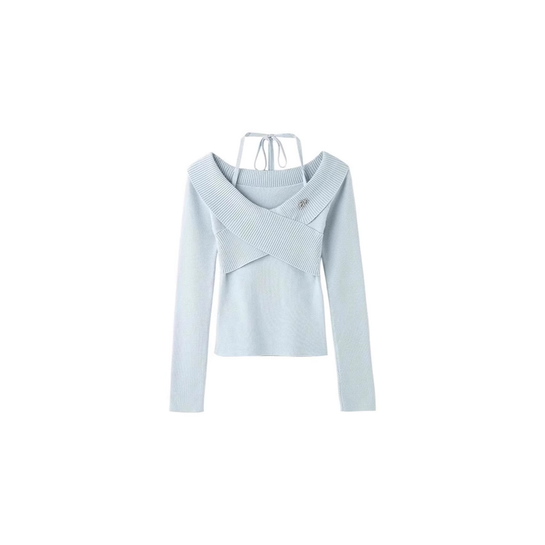 Mu Zi Love 오프 숄더 넥 레이스 업 니트 스웨터 여성 가을 및 겨울 슬림 핏 순수한 욕망 스타일 스웨터베이스 셔츠 탑 디자인 감각스토어 가기