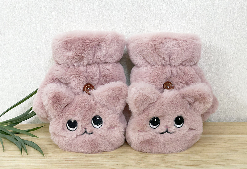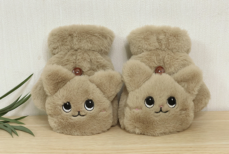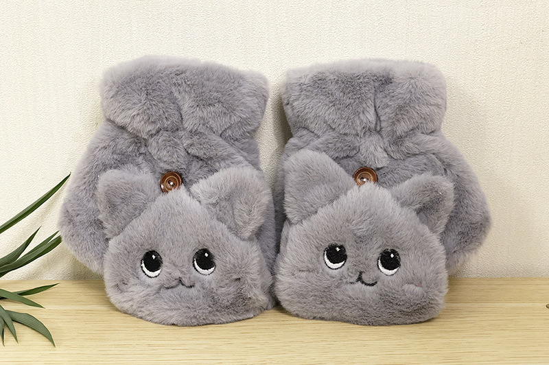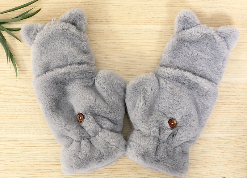 봉제 장갑 기모 냉간 만화 고양이 귀여운 반 손가락 플립 커버 따뜻한 두꺼운 학생 키보드 장갑 여성의 이중 사용