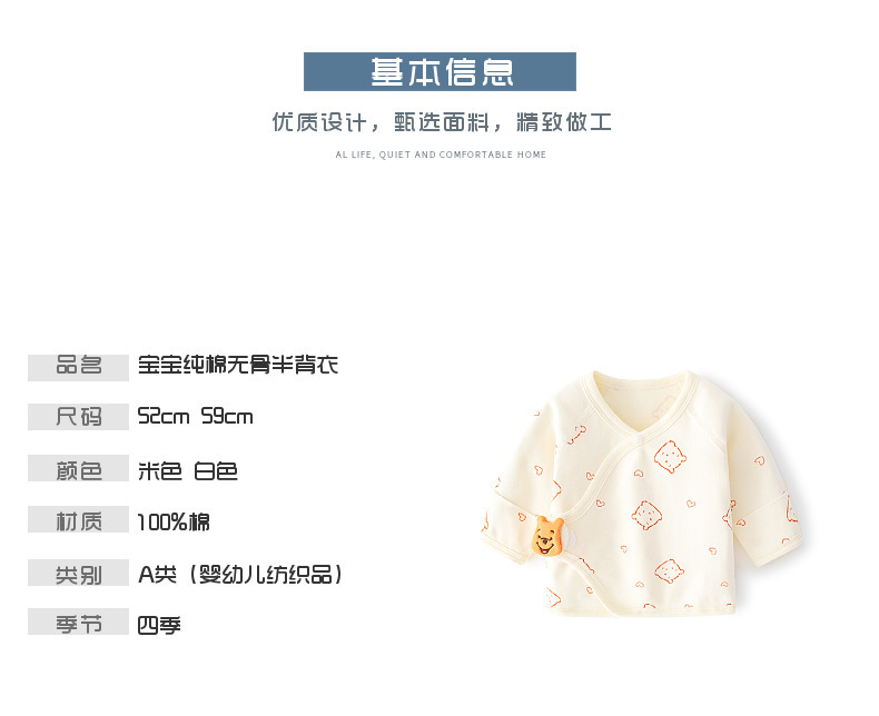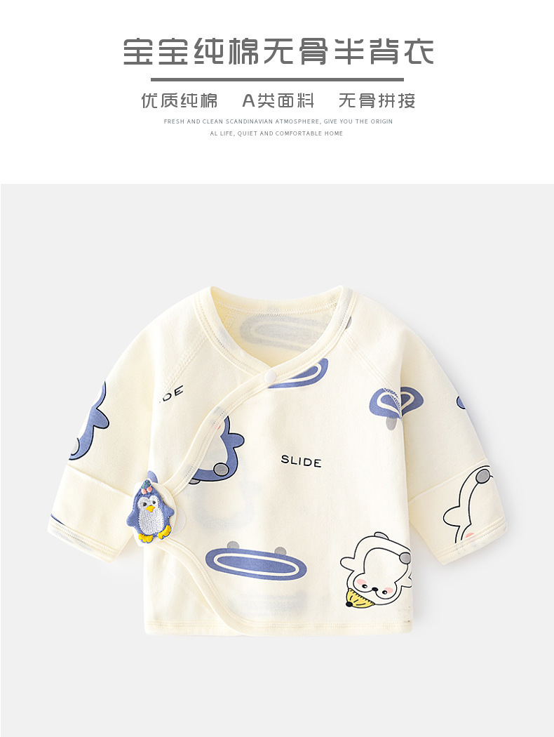 아기 내부 옷 뼈없는 면화 봄과 가을 벨크로 하프백 파자마 보름달 스님 옷 아기 탑스토어 가기