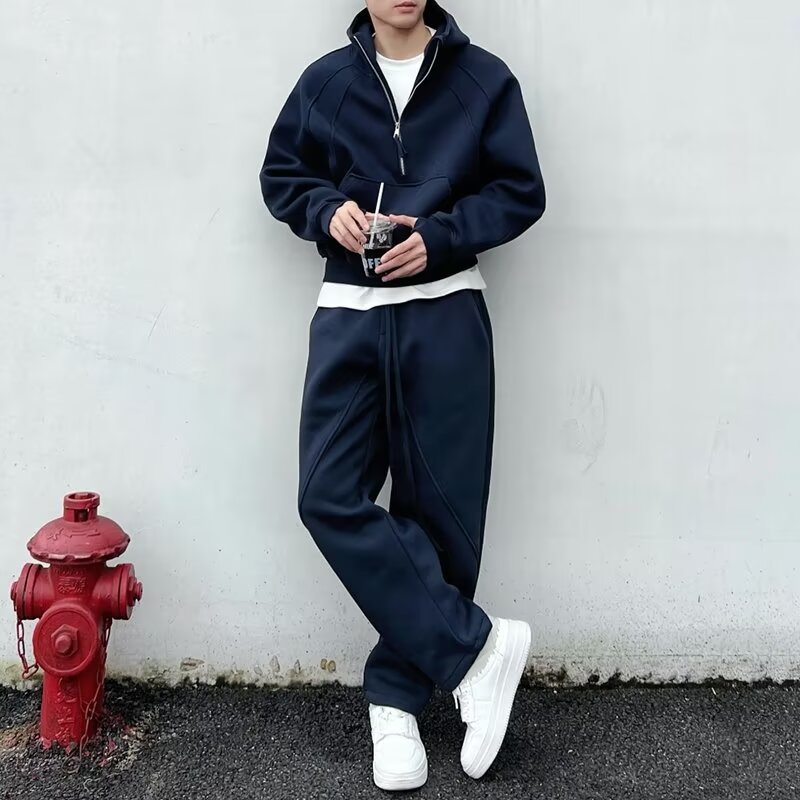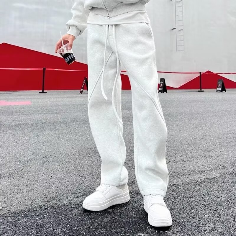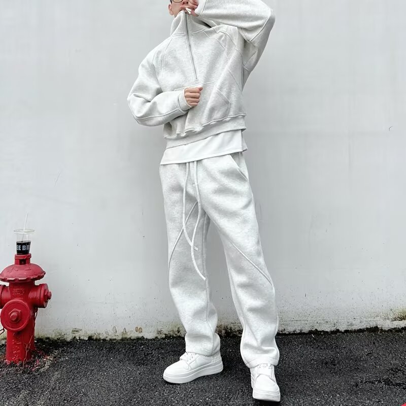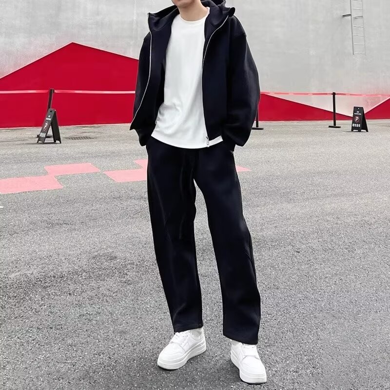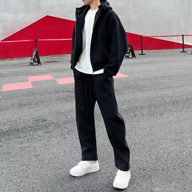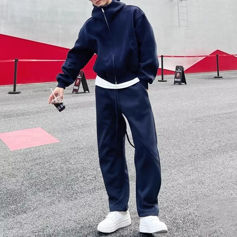 남성 가을과 겨울 기모 캐주얼 스포츠 세트 남성 아메리칸 스타일 패션 브랜드 루즈 후드 재킷 스웨트 팬츠 2 피스 세트