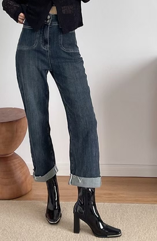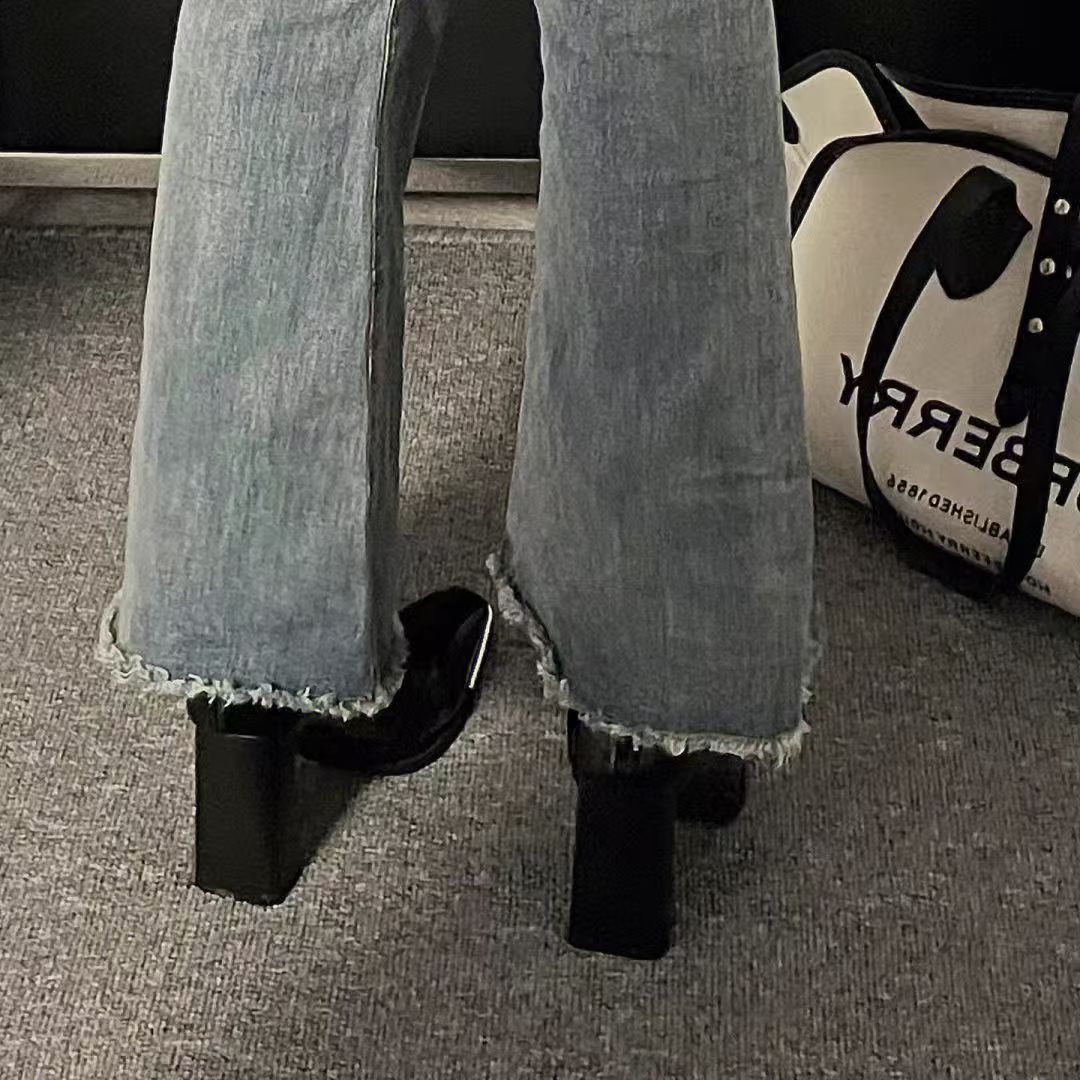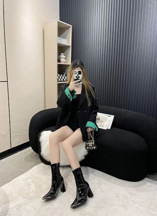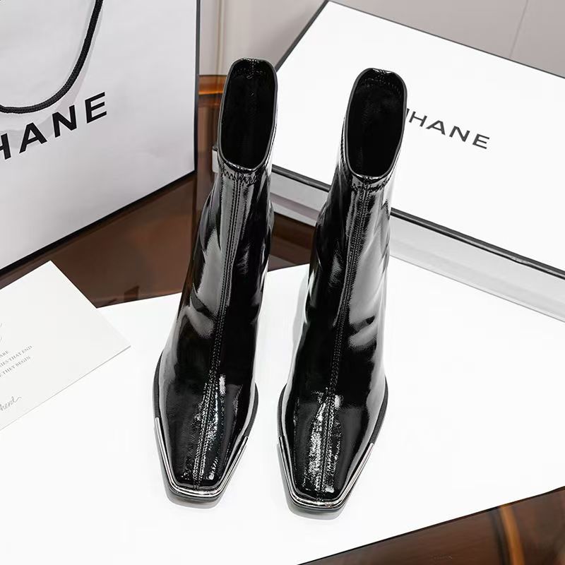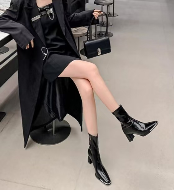 스퀘어 헤드 스키니 부츠 사이드 지퍼 청키 힐 발목 부츠 영국 봄 가을 싱글 부츠 하이힐 마틴 부츠 기모 여성용 부츠스토어 가기