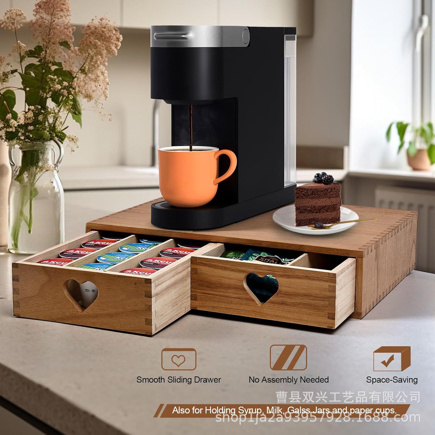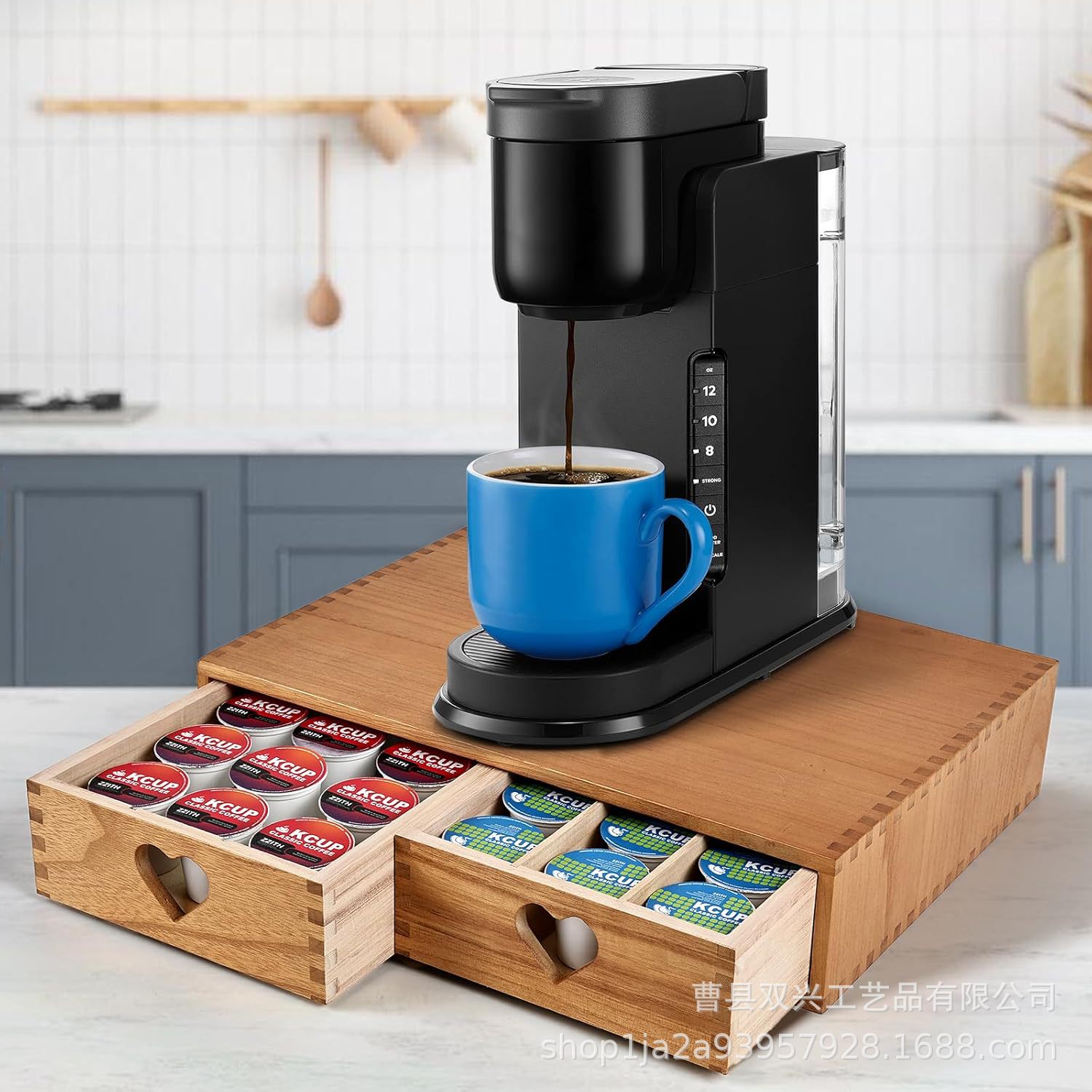 국경 간 나무 커피 캡슐 저장 상자 가정용 카운터 탑 커피 저장 랙 갑판 서랍 커피 기계 브래킷