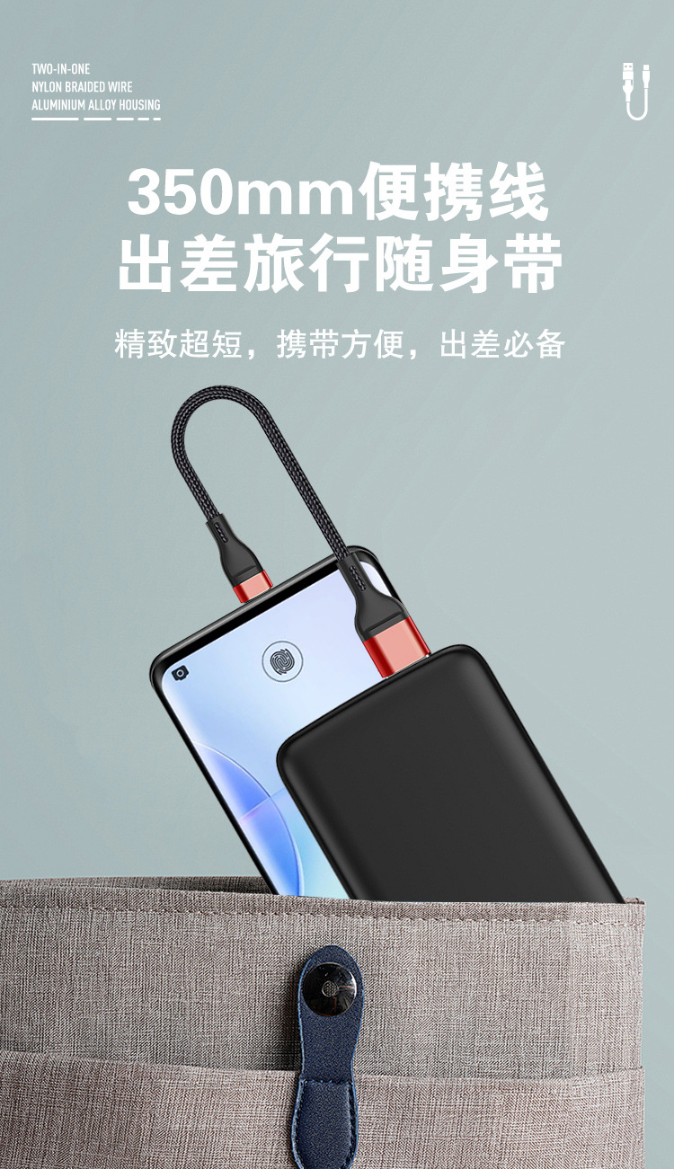 Typec Huawei 휴대폰 충전 케이블에 적합한 1:2 초고속 충전 데이터 케이블 짧은 휴대용 케이블스토어 가기