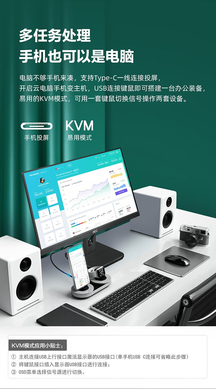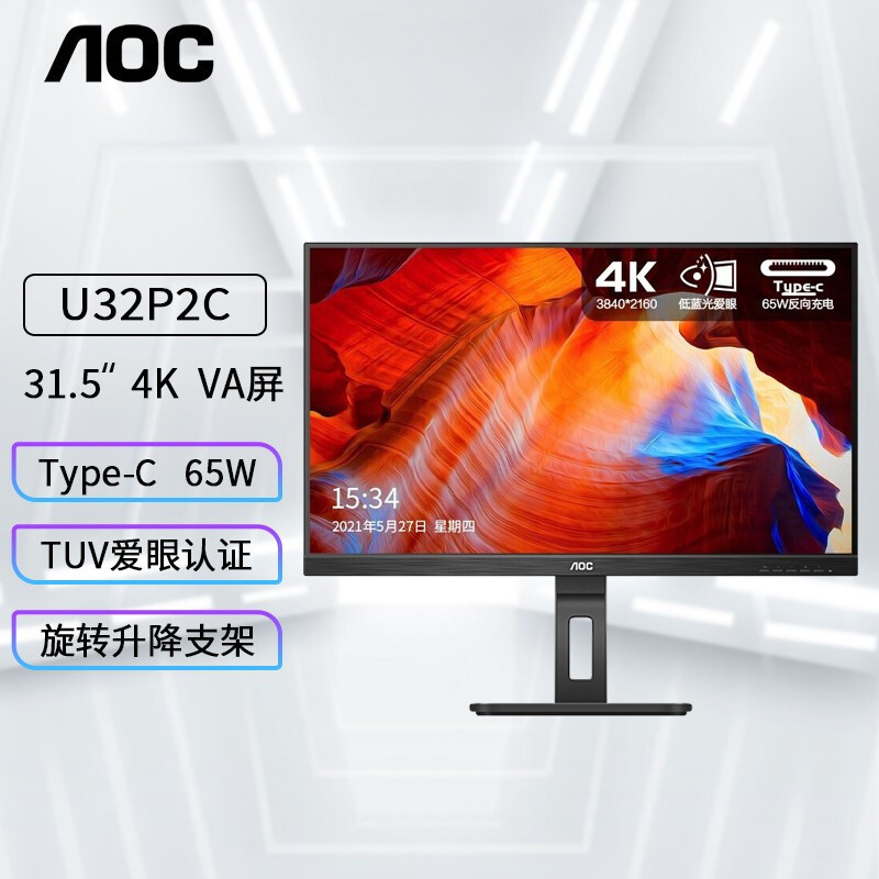 AOC U27P2C 컴퓨터 모니터 4K HD IPS 타입 C 벽 교수형 지능형 LCD 디자인 드로잉 LCD스토어 가기